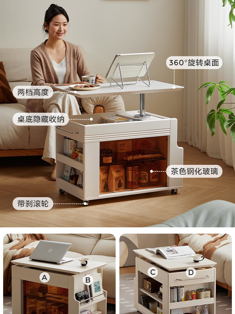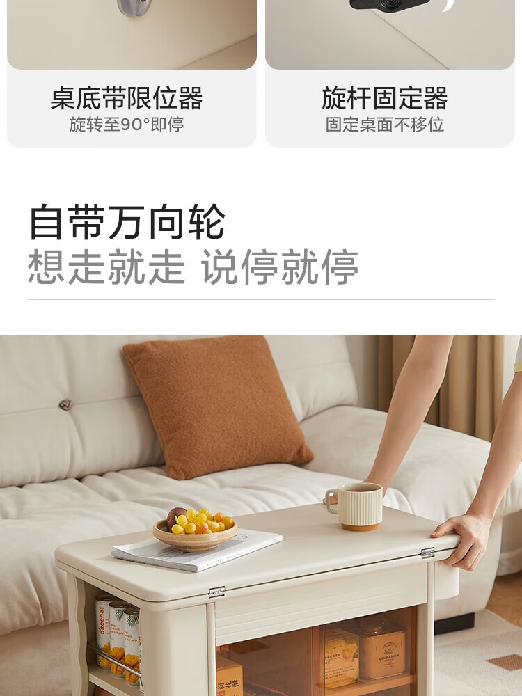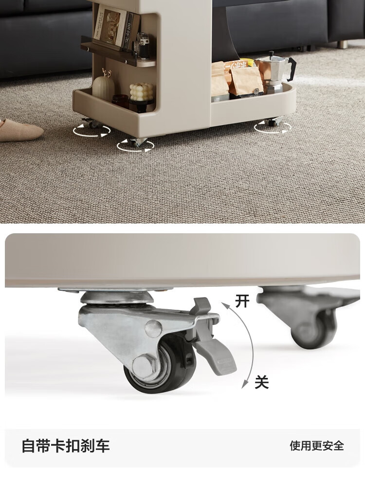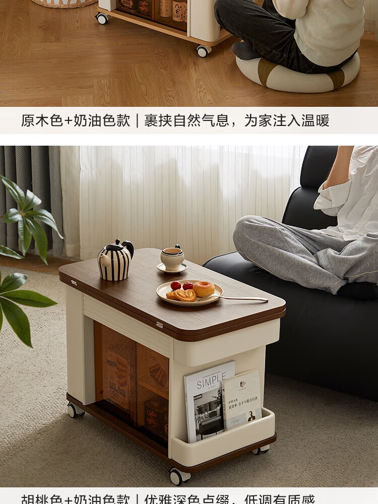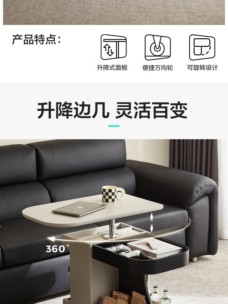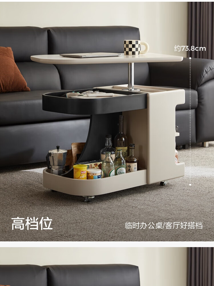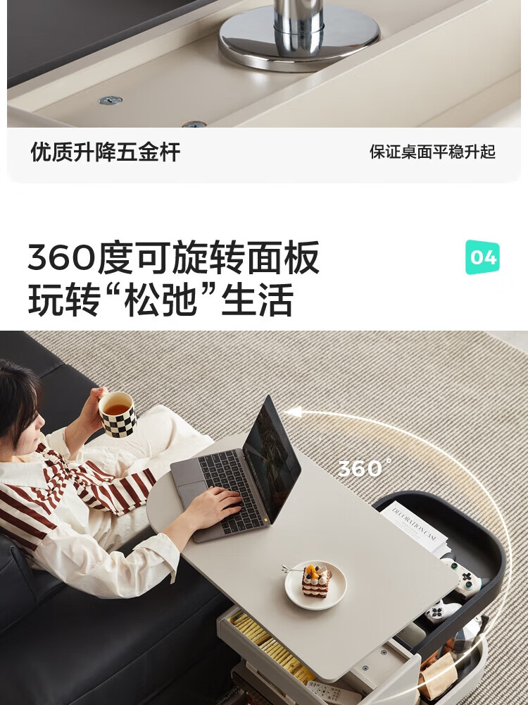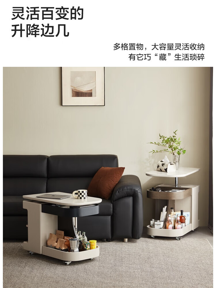 LINSY KIDS可升降移动边几折叠茶几客厅小户型2025新款奶油风边几小满系列 【暖木+黑|升降+旋转】 移动边几