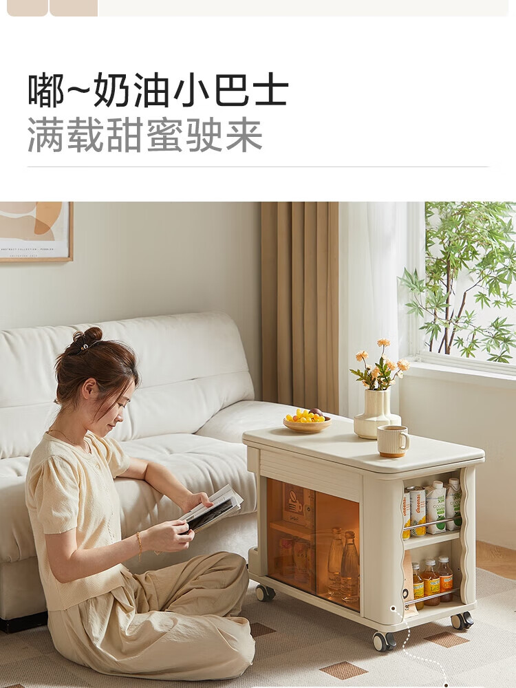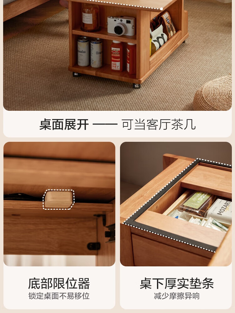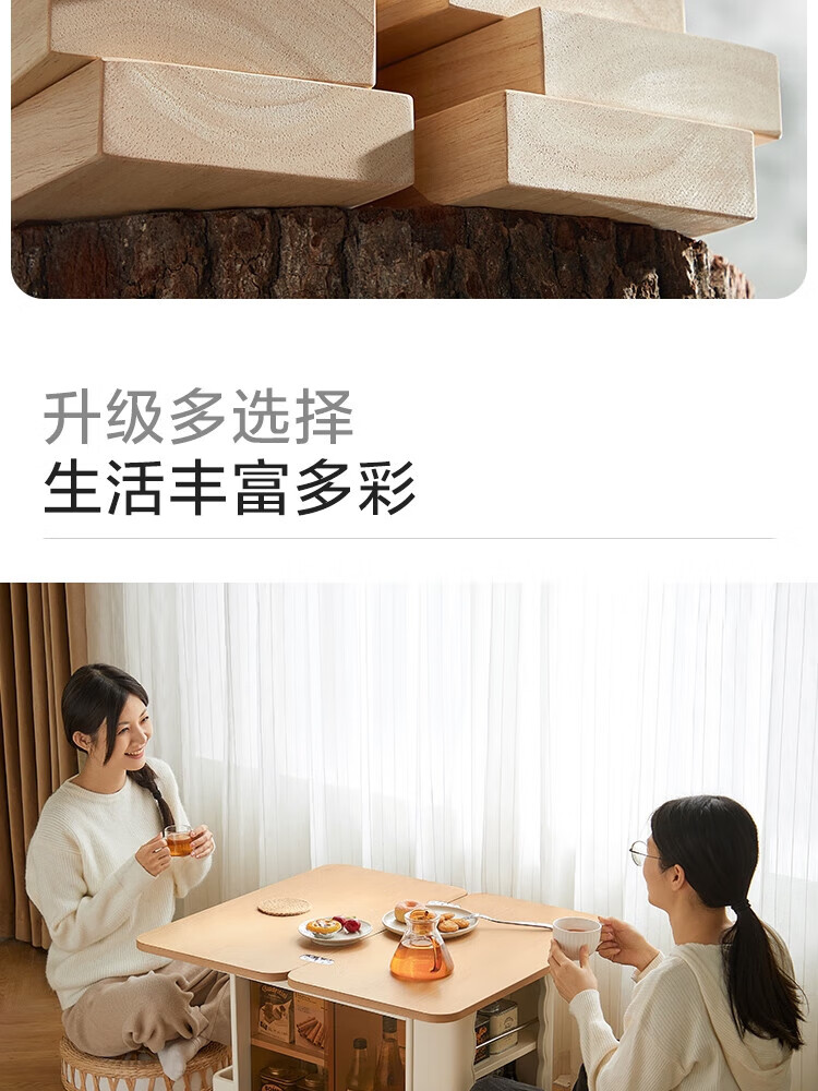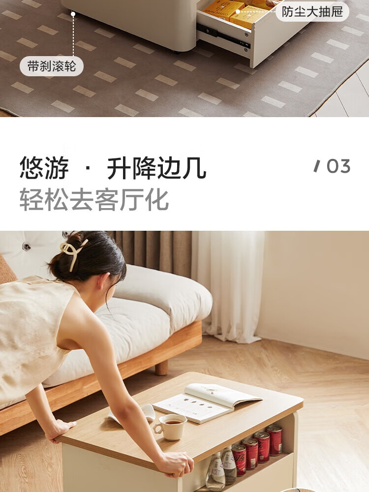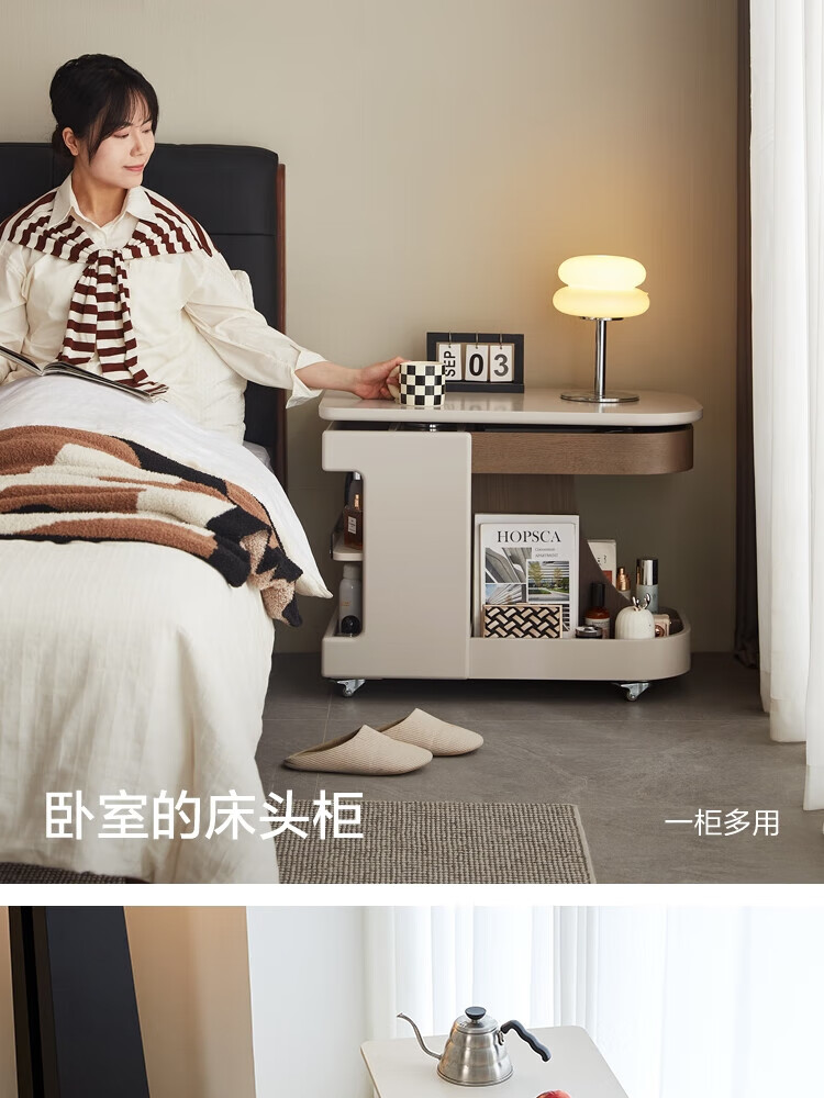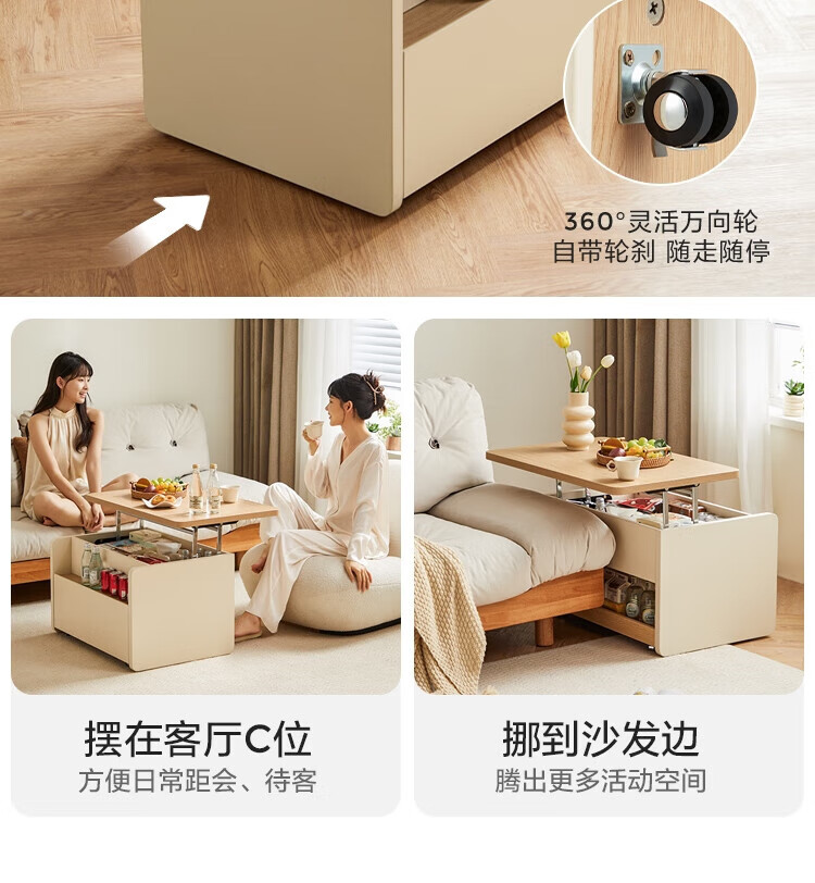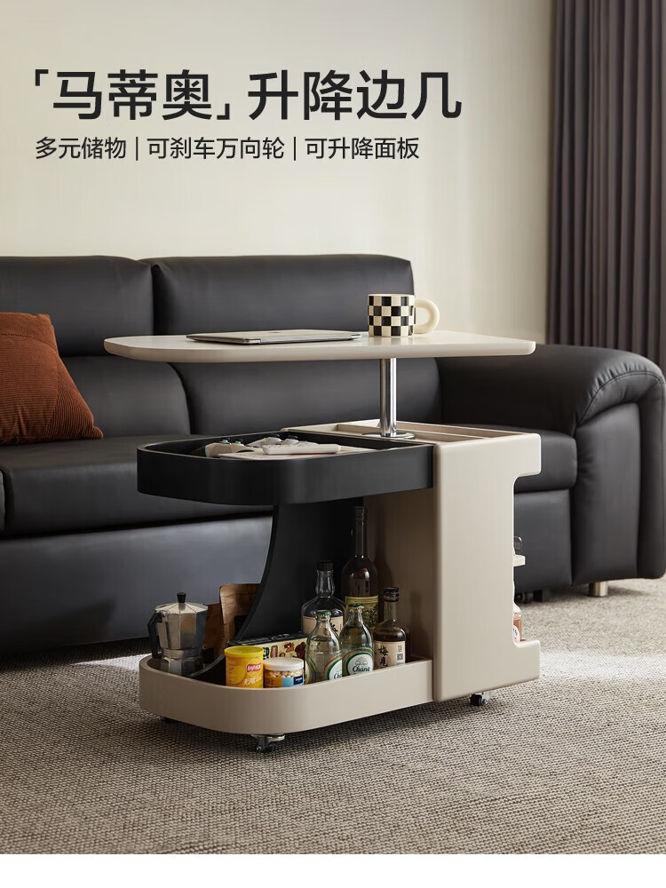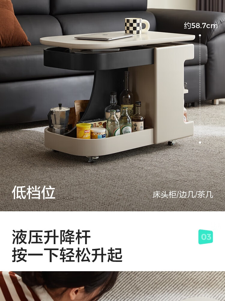 LINSY KIDS可升降移动边几折叠茶几客厅小户型2025新款奶油风边几小满系列 【暖木+黑|升降+旋转】 移动边几