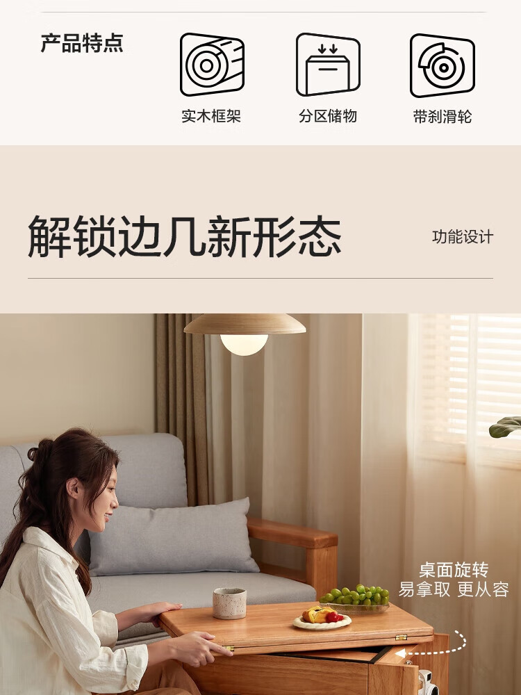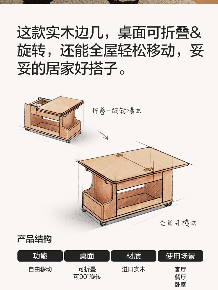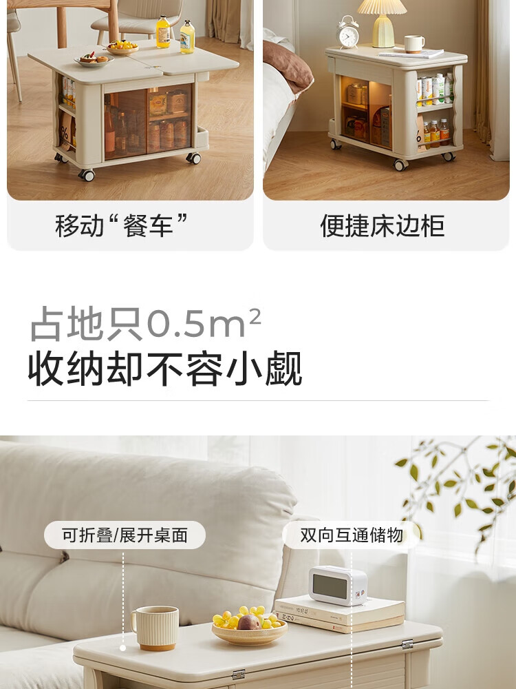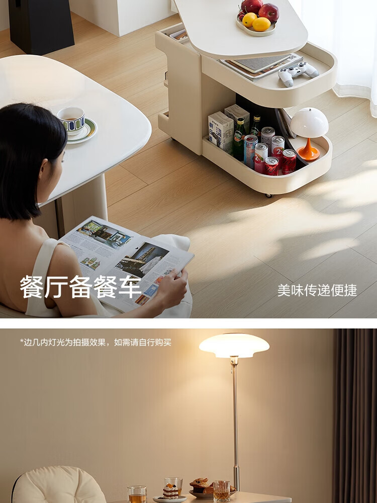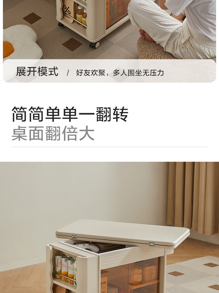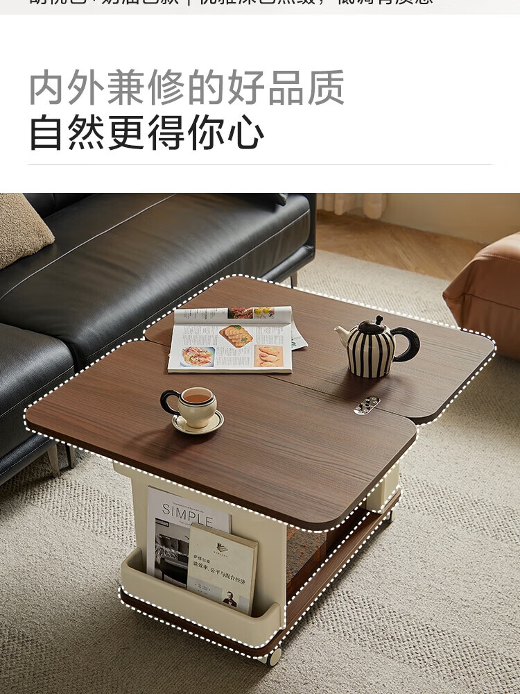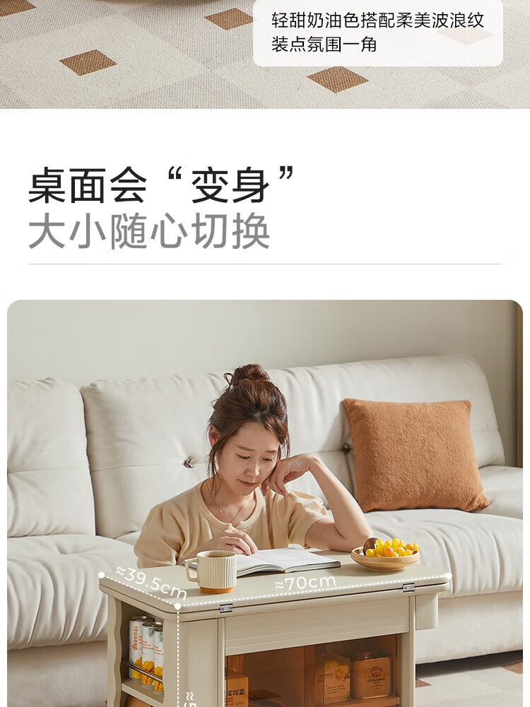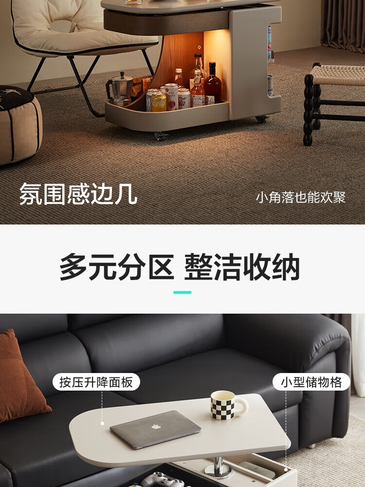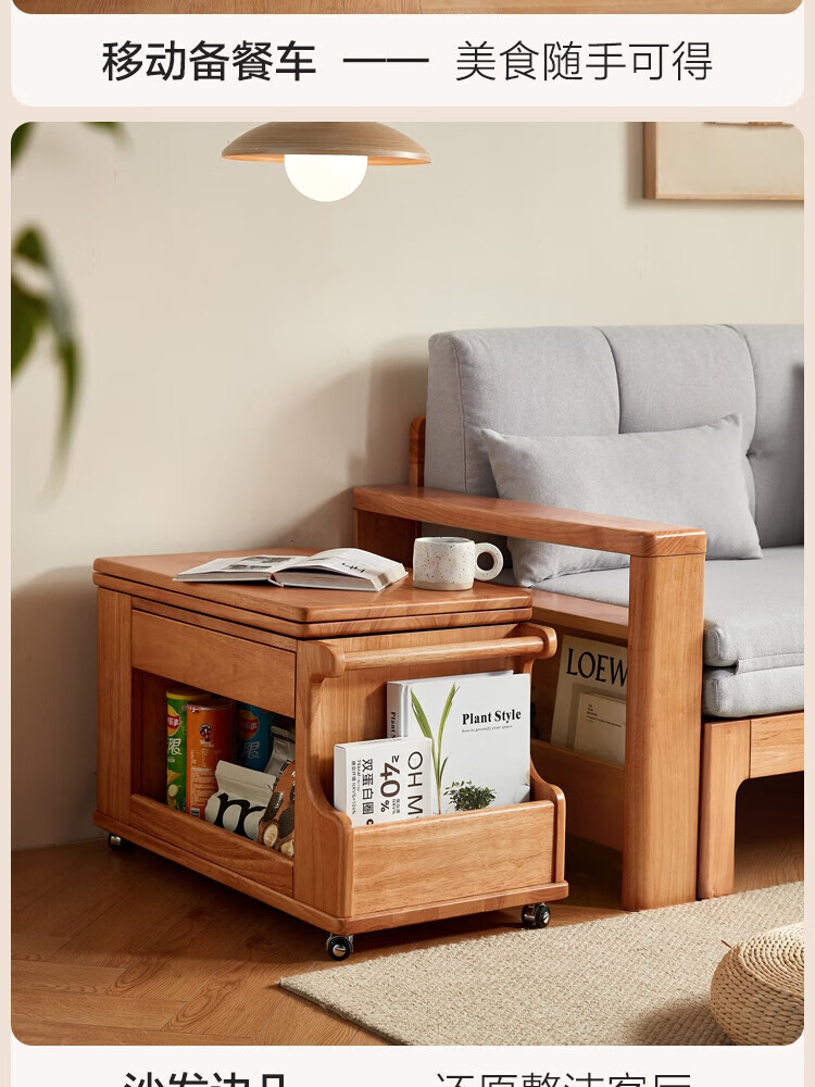 LINSY KIDS可升降移动边几折叠茶几客厅小户型2025新款奶油风边几小满系列 【暖木+黑|升降+旋转】 移动边几
