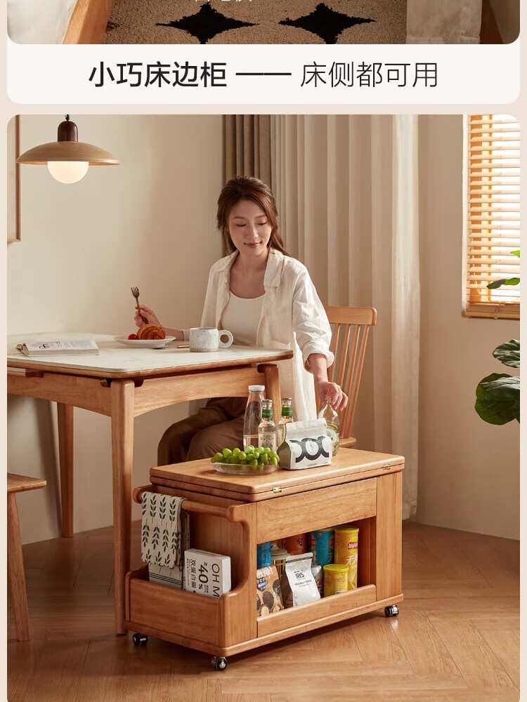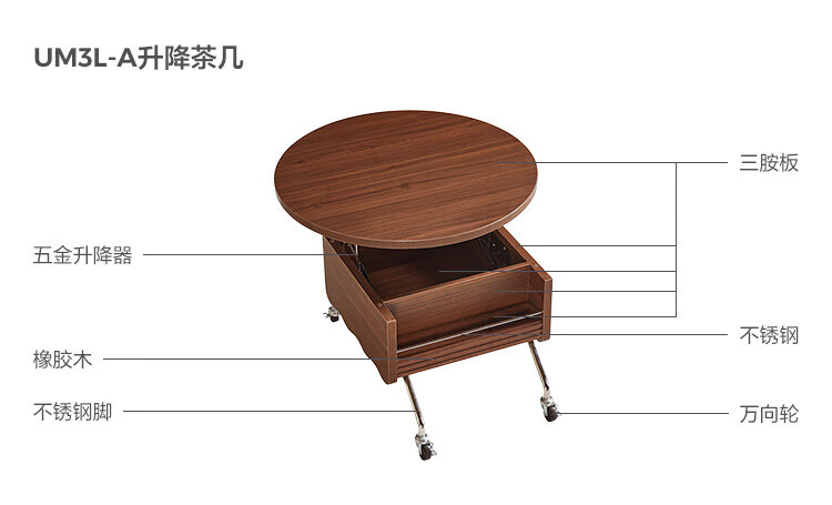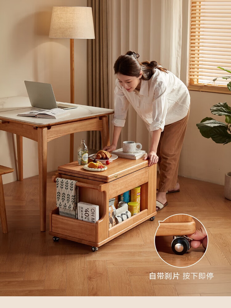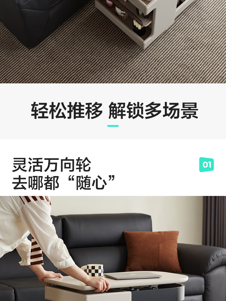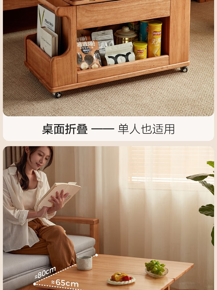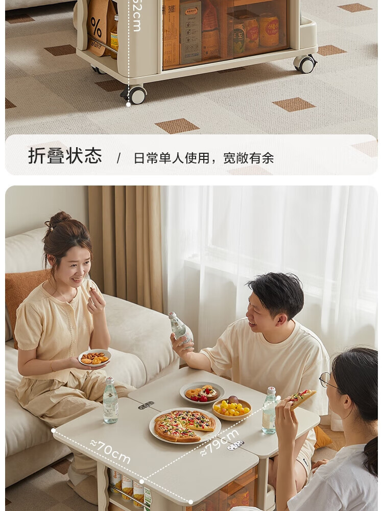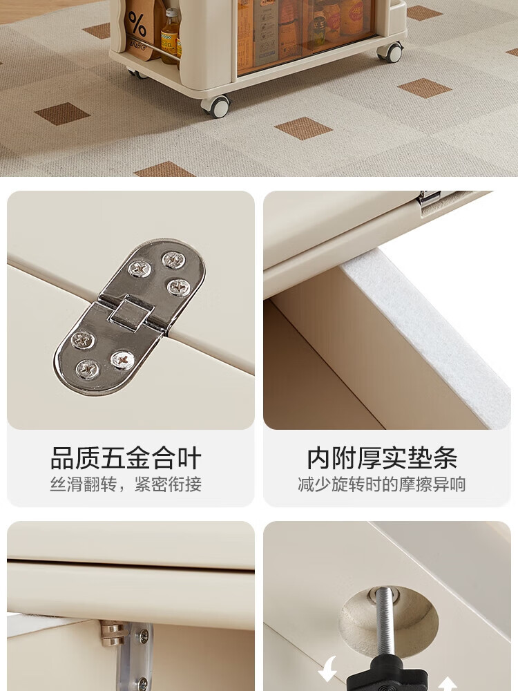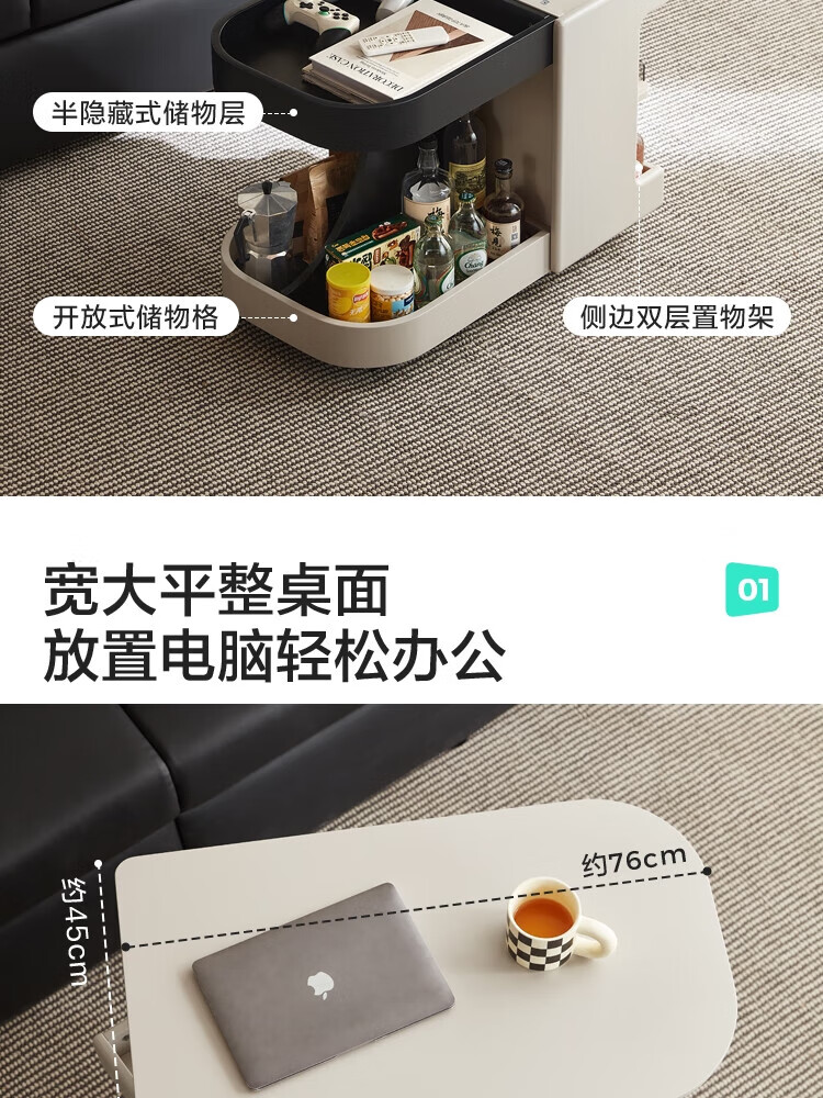 LINSY KIDS可升降移动边几折叠茶几客厅小户型2025新款奶油风边几小满系列 【暖木+黑|升降+旋转】 移动边几