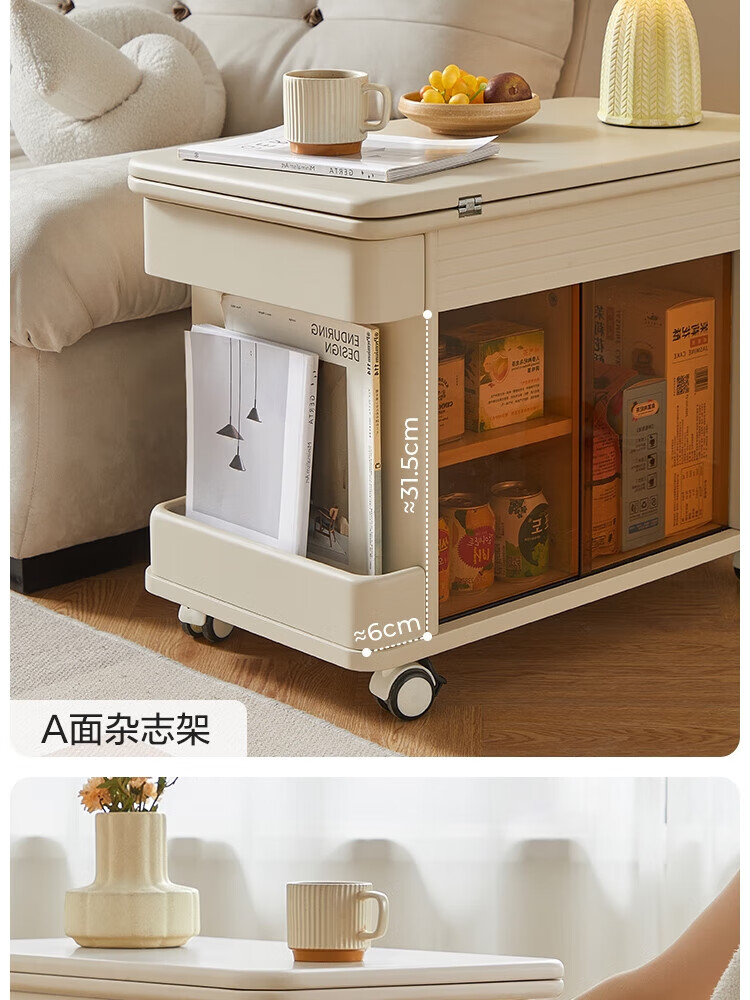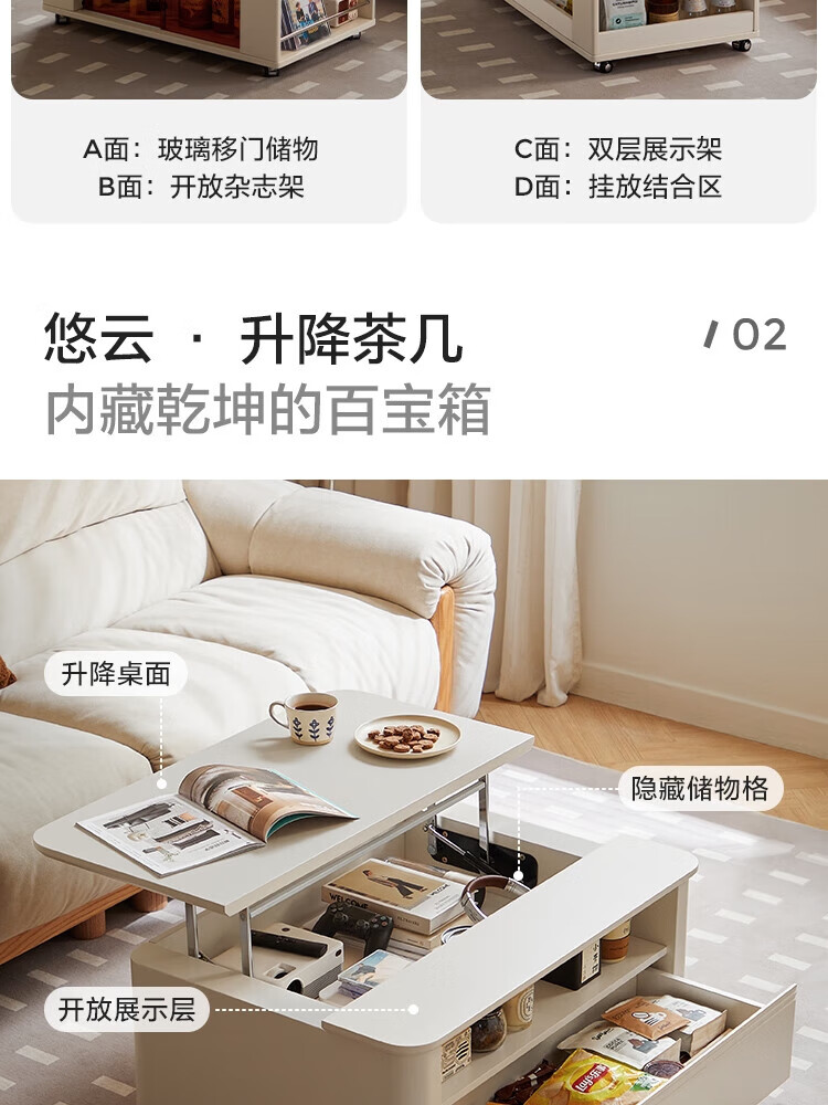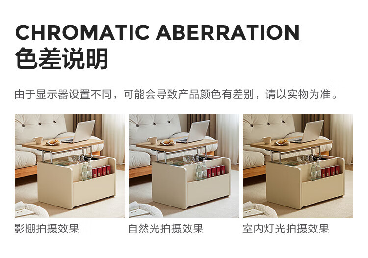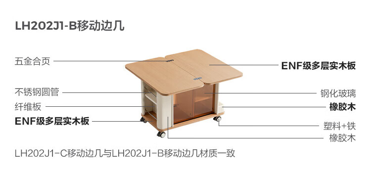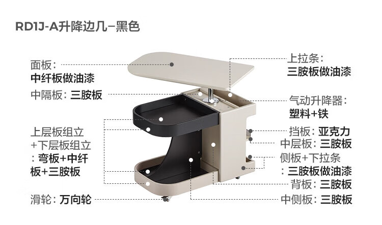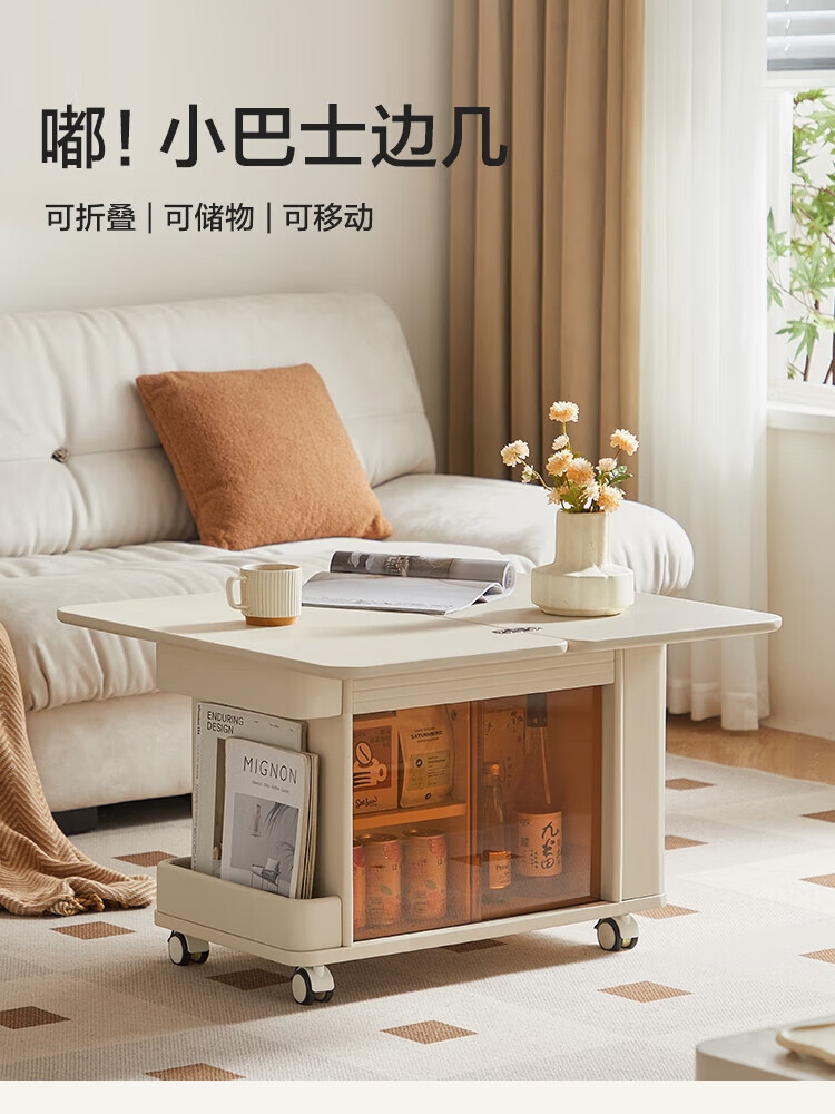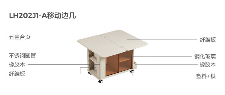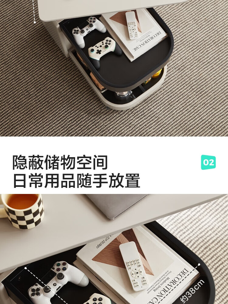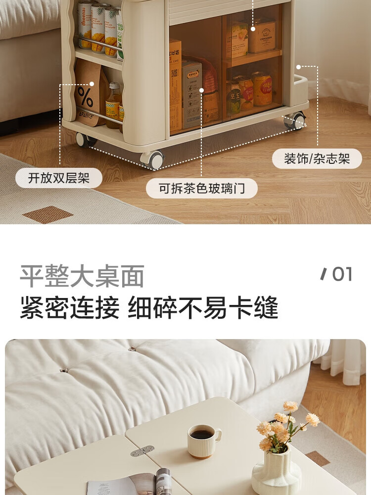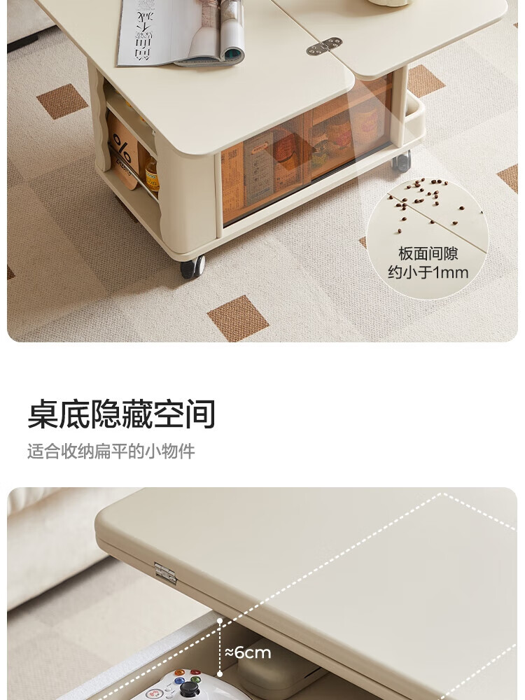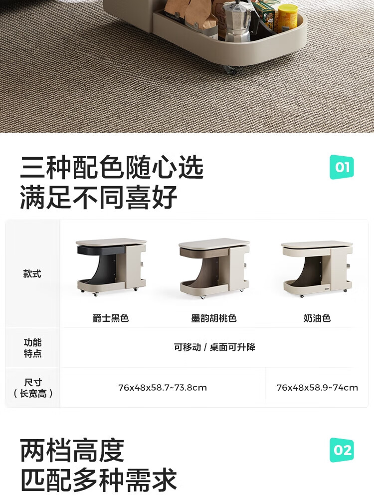 LINSY KIDS可升降移动边几折叠茶几客厅小户型2025新款奶油风边几小满系列 【暖木+黑|升降+旋转】 移动边几