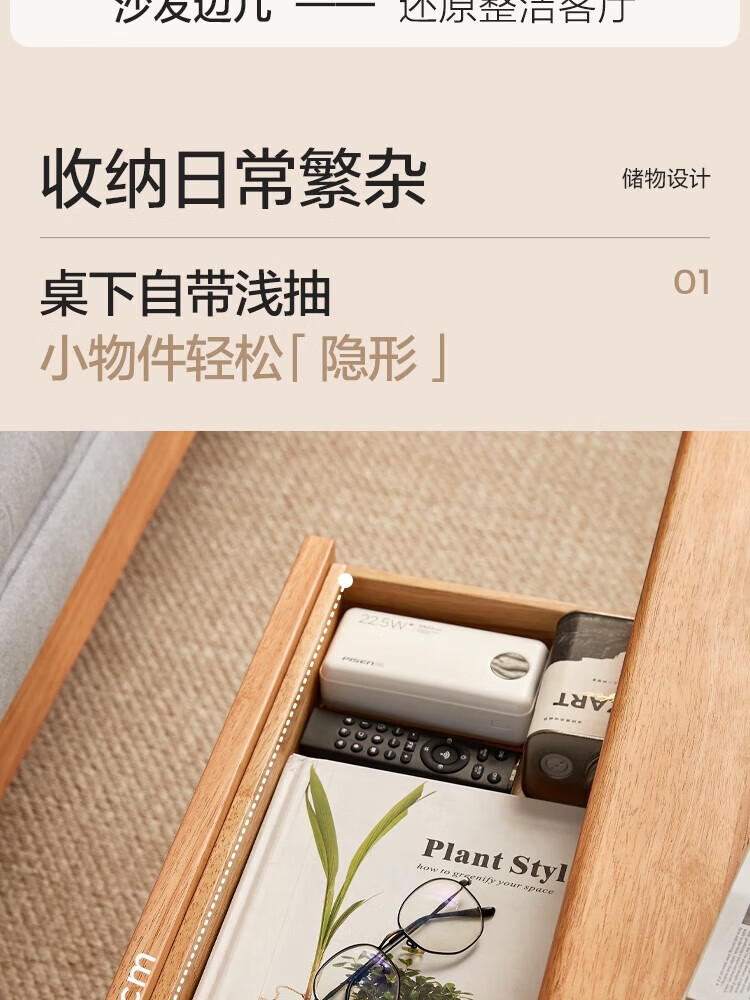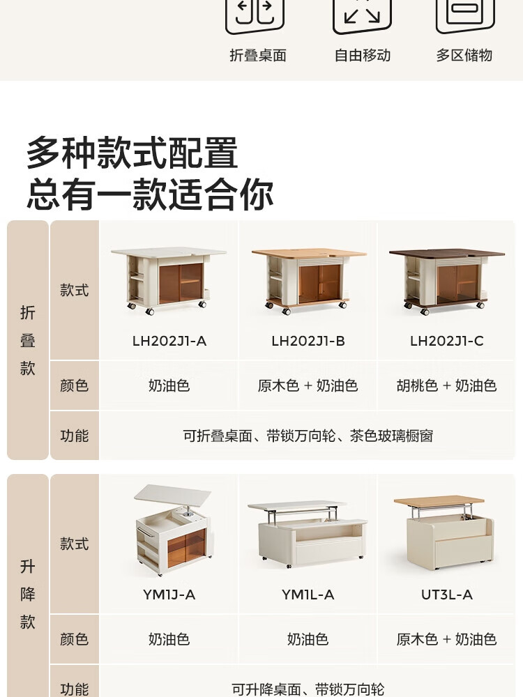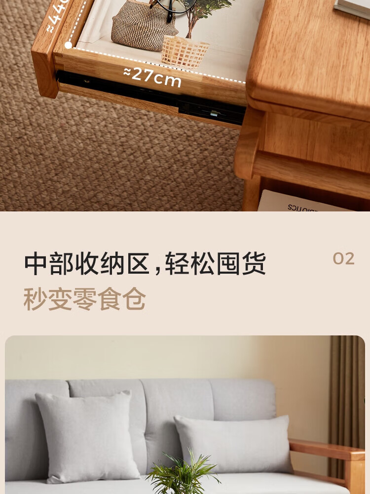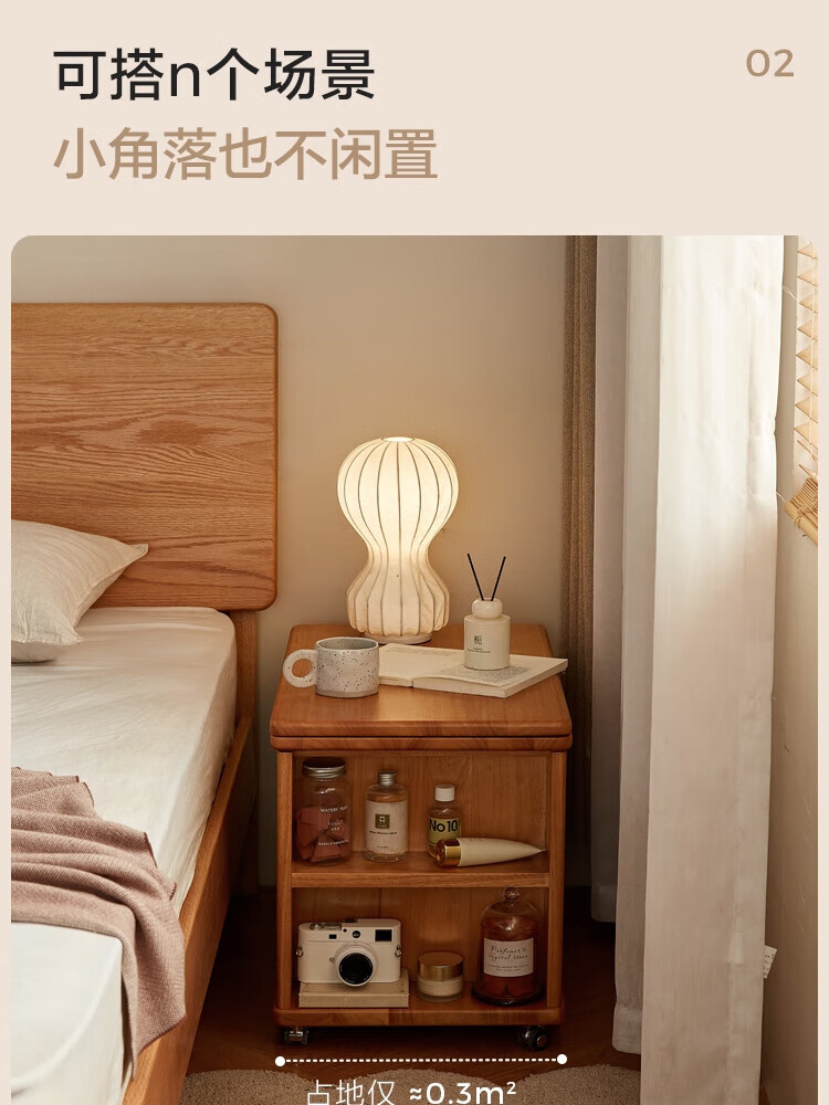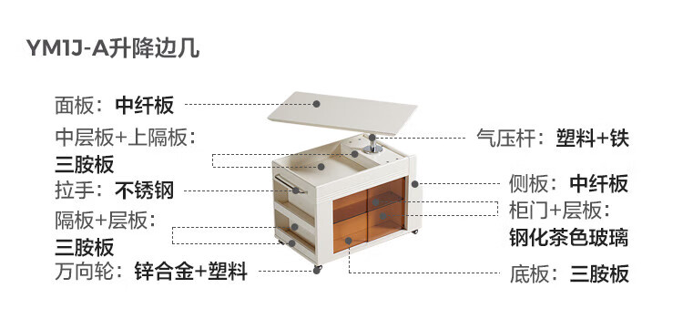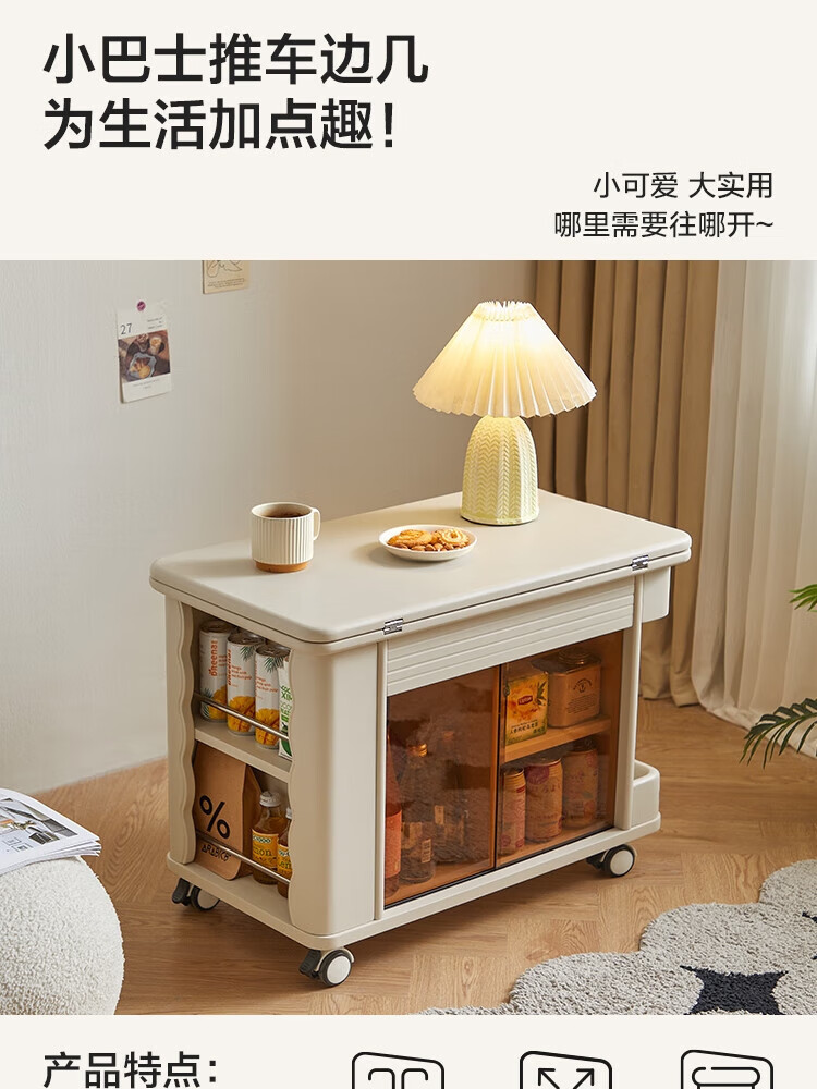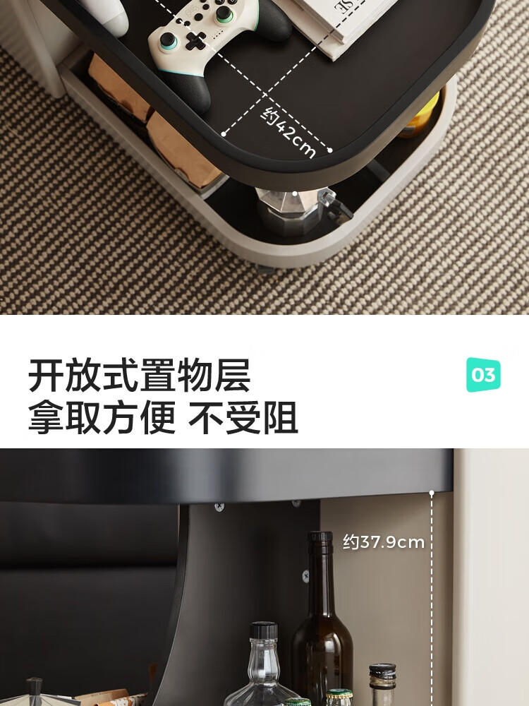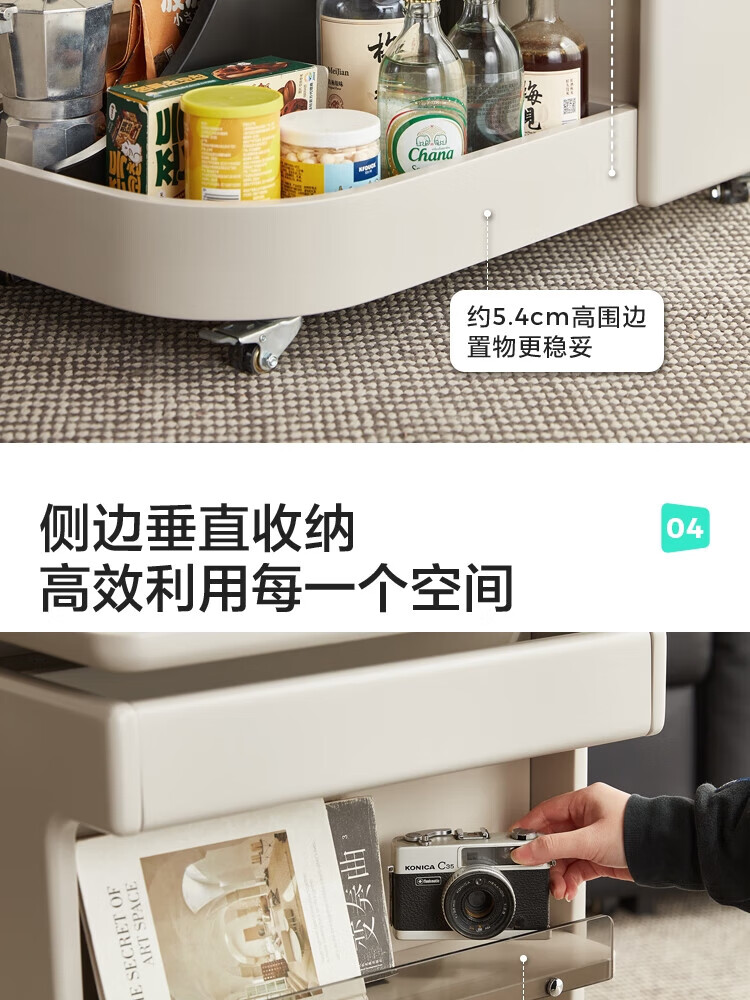 LINSY KIDS可升降移动边几折叠茶几客厅小户型2025新款奶油风边几小满系列 【暖木+黑|升降+旋转】 移动边几