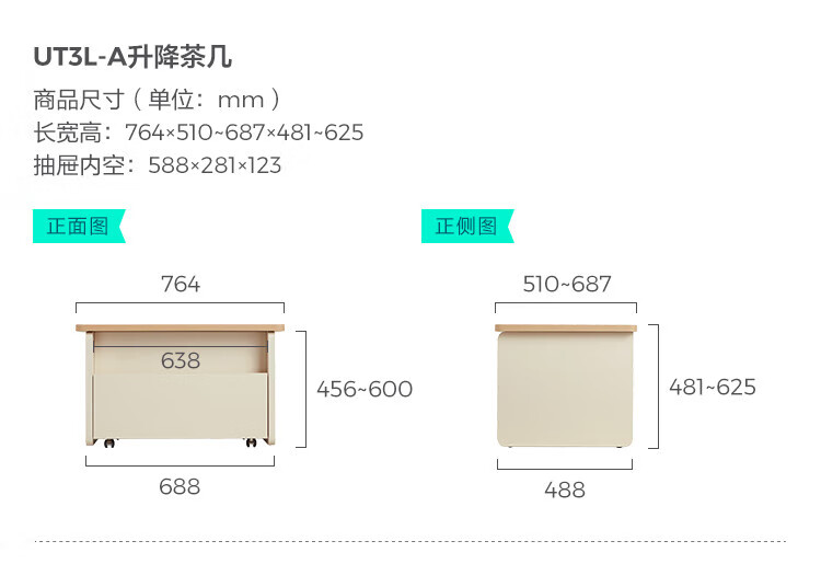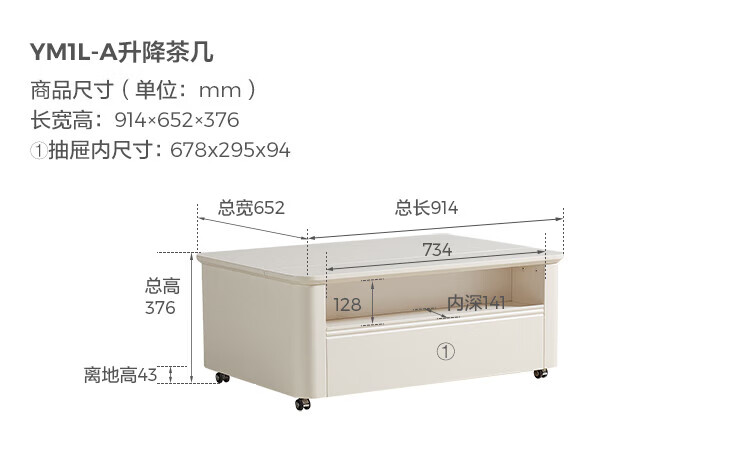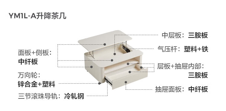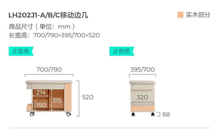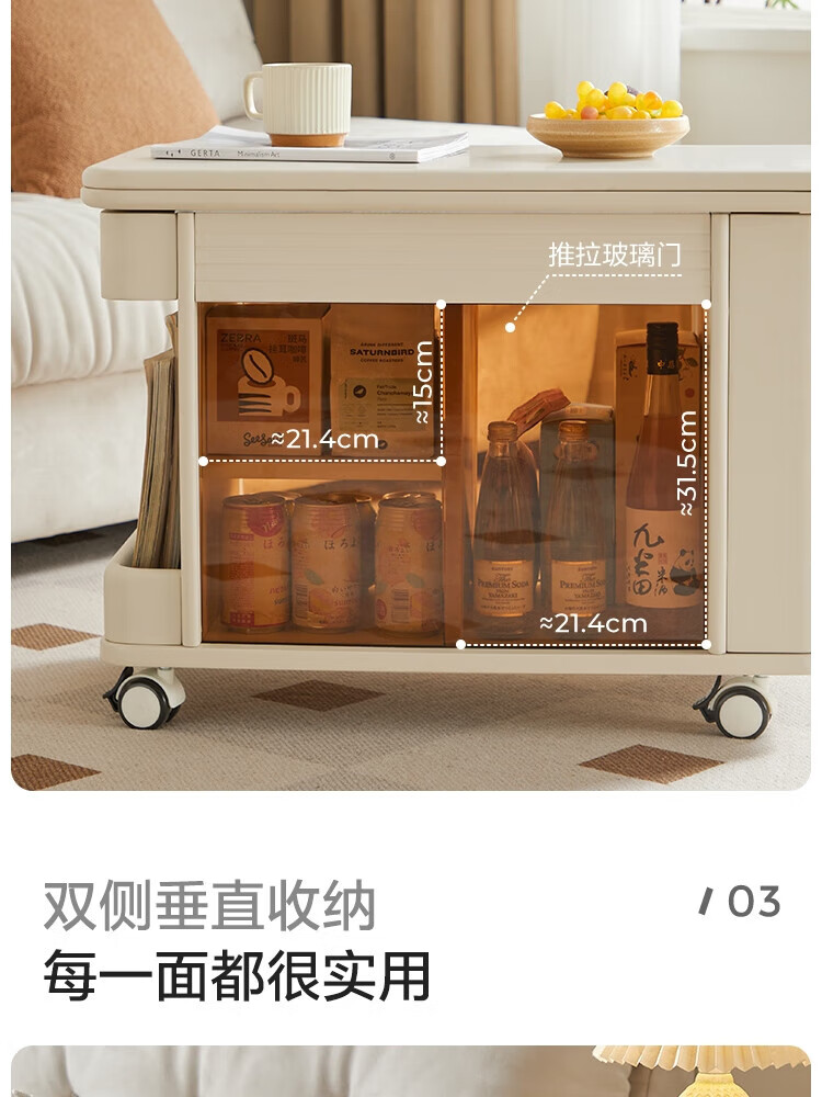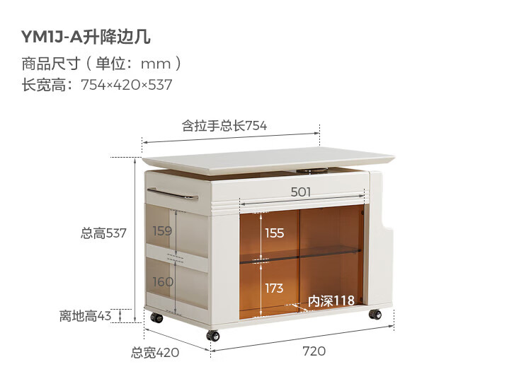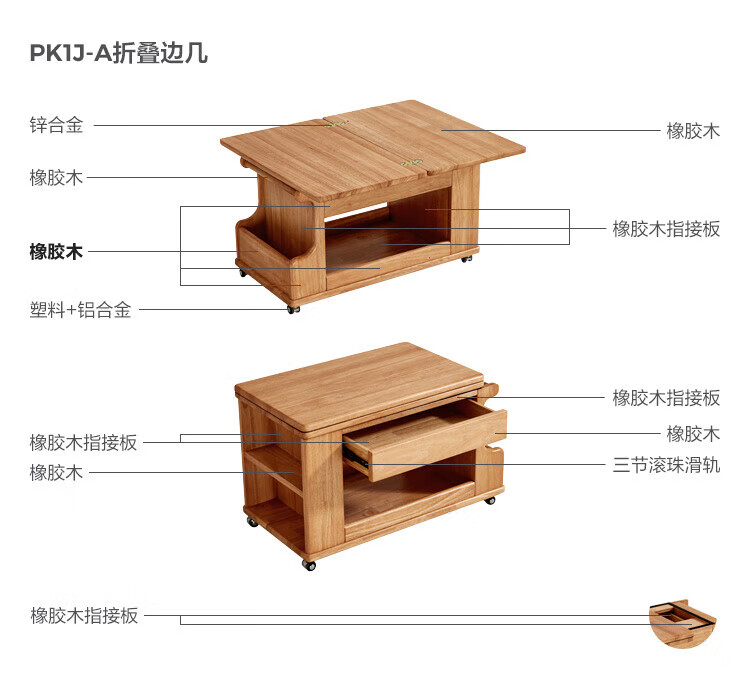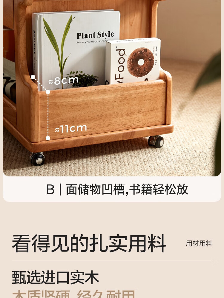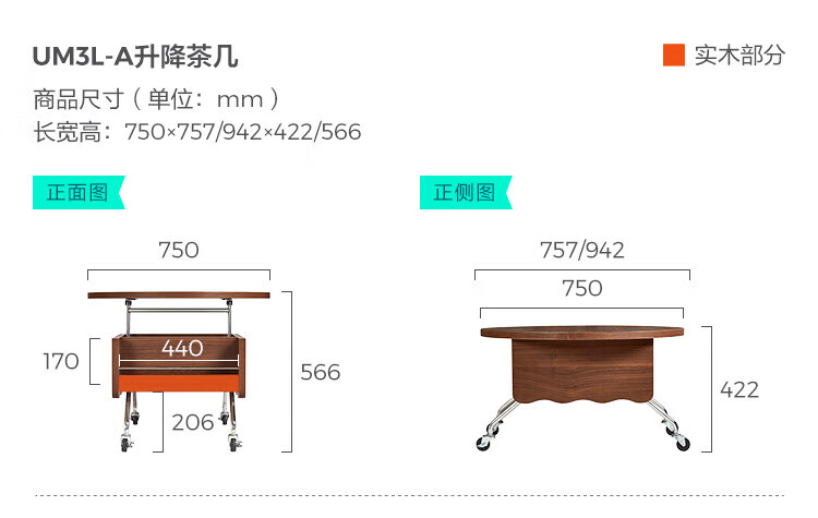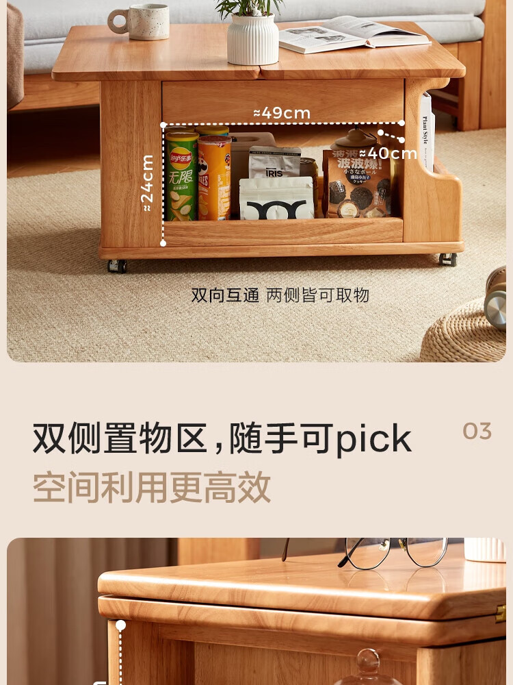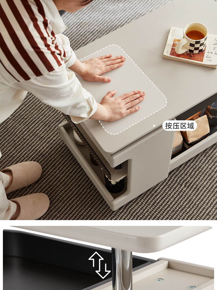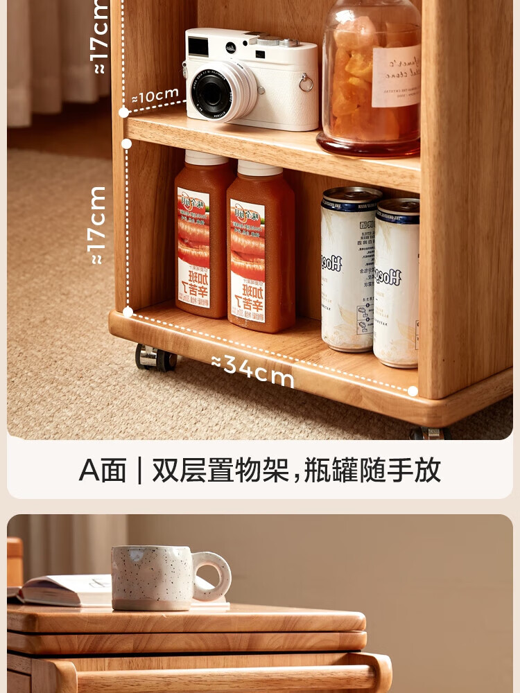 LINSY KIDS可升降移动边几折叠茶几客厅小户型2025新款奶油风边几小满系列 【暖木+黑|升降+旋转】 移动边几