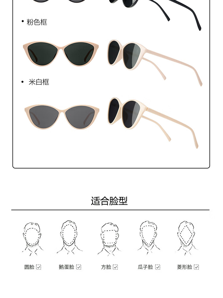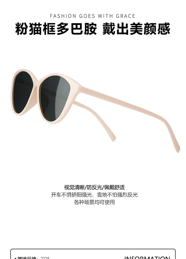 TOS猫眼墨镜太阳镜女款2024新款GM防紫外线高级感夏日显脸小复古海边