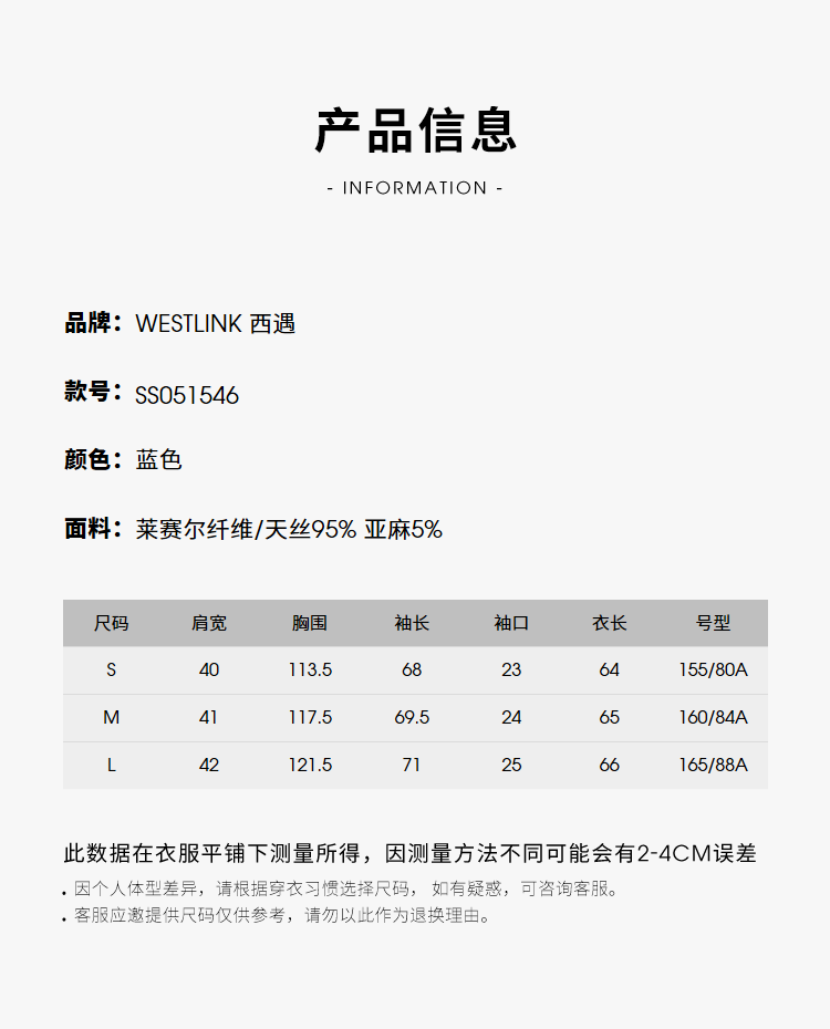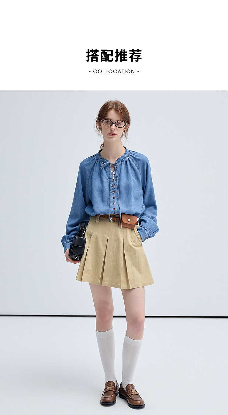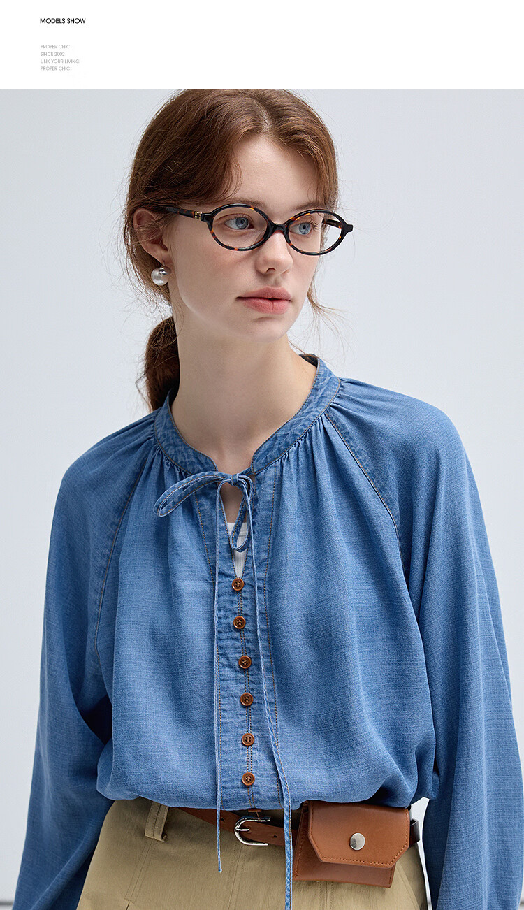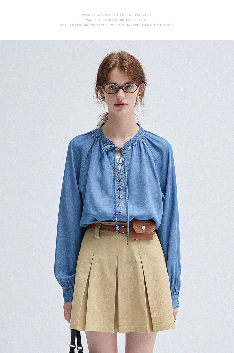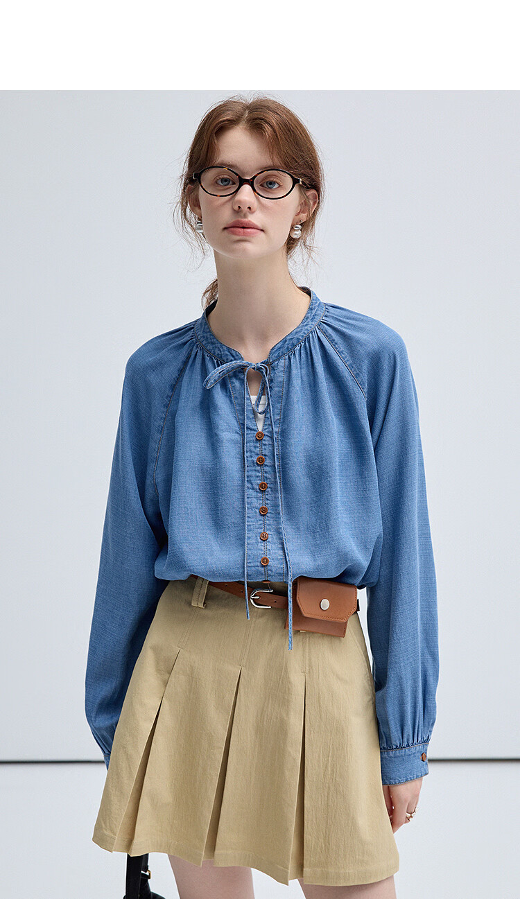 西遇(Westlink)蓝色牛仔衬衫女2025年秋季新款法式复古圆领亚麻宽松长袖衬衣 蓝色 (预售15天) S (155)