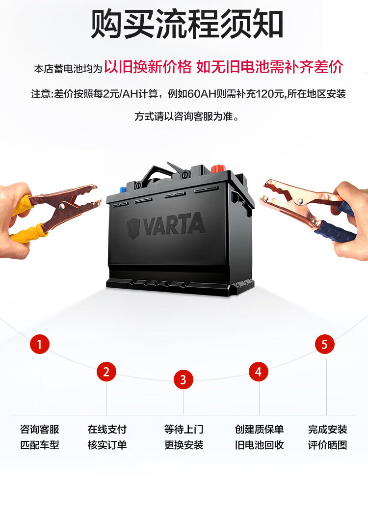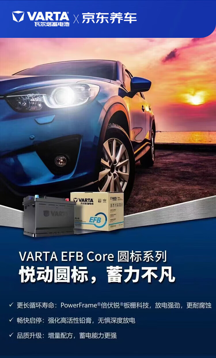 瓦尔塔(VARTA)京东养车汽车电瓶蓄电池启停EFB H6 70Ah以旧换新上门安装