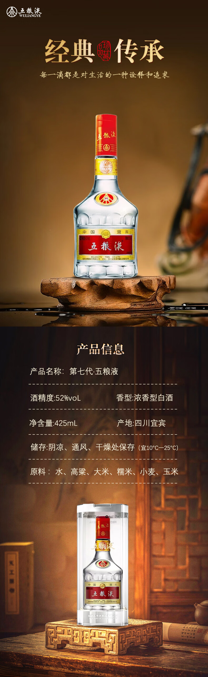 五粮液【山姆同款】第七代普五 2019年 浓香型白酒 52度 425ml*6瓶 整箱装 陈年老酒 【名酒鉴真】