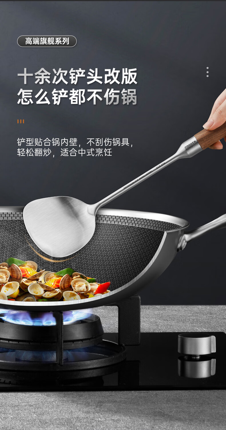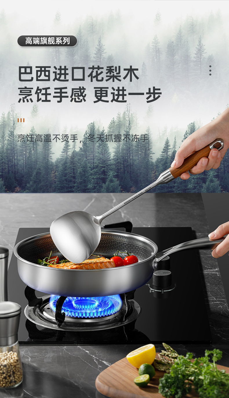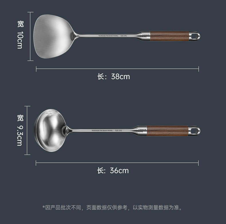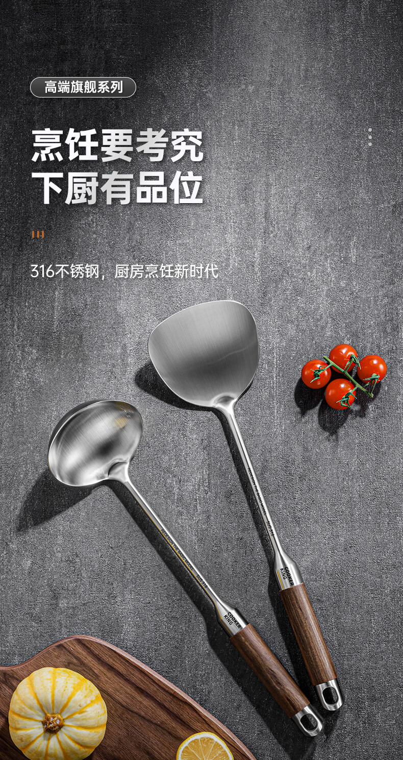炊大皇 316不锈钢铲勺2件套 炒菜铲子汤勺花梨木手柄无涂层锅用铲勺套装
