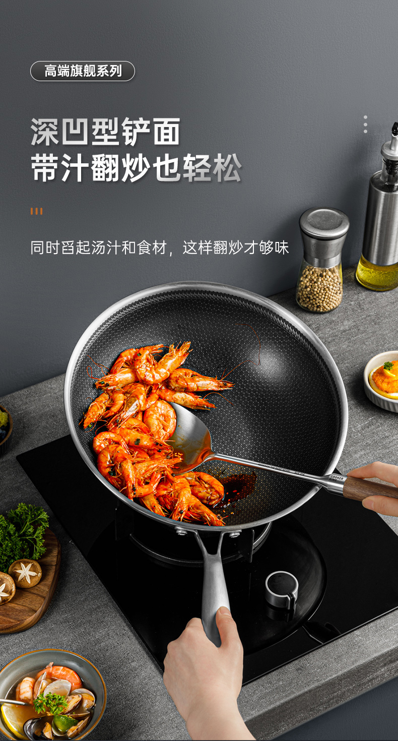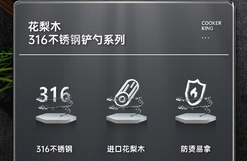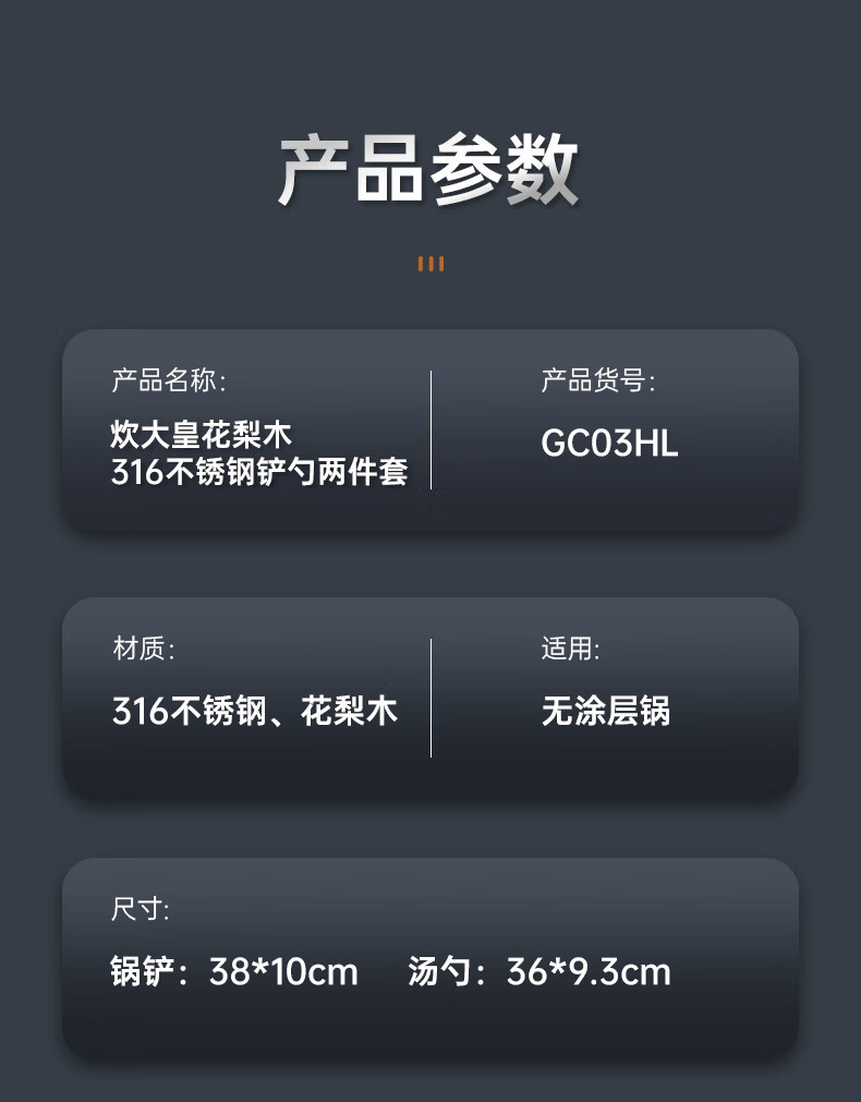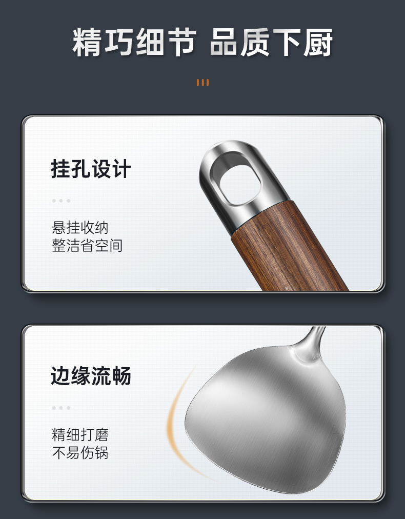 炊大皇 316不锈钢铲勺2件套 炒菜铲子汤勺花梨木手柄无涂层锅用铲勺套装