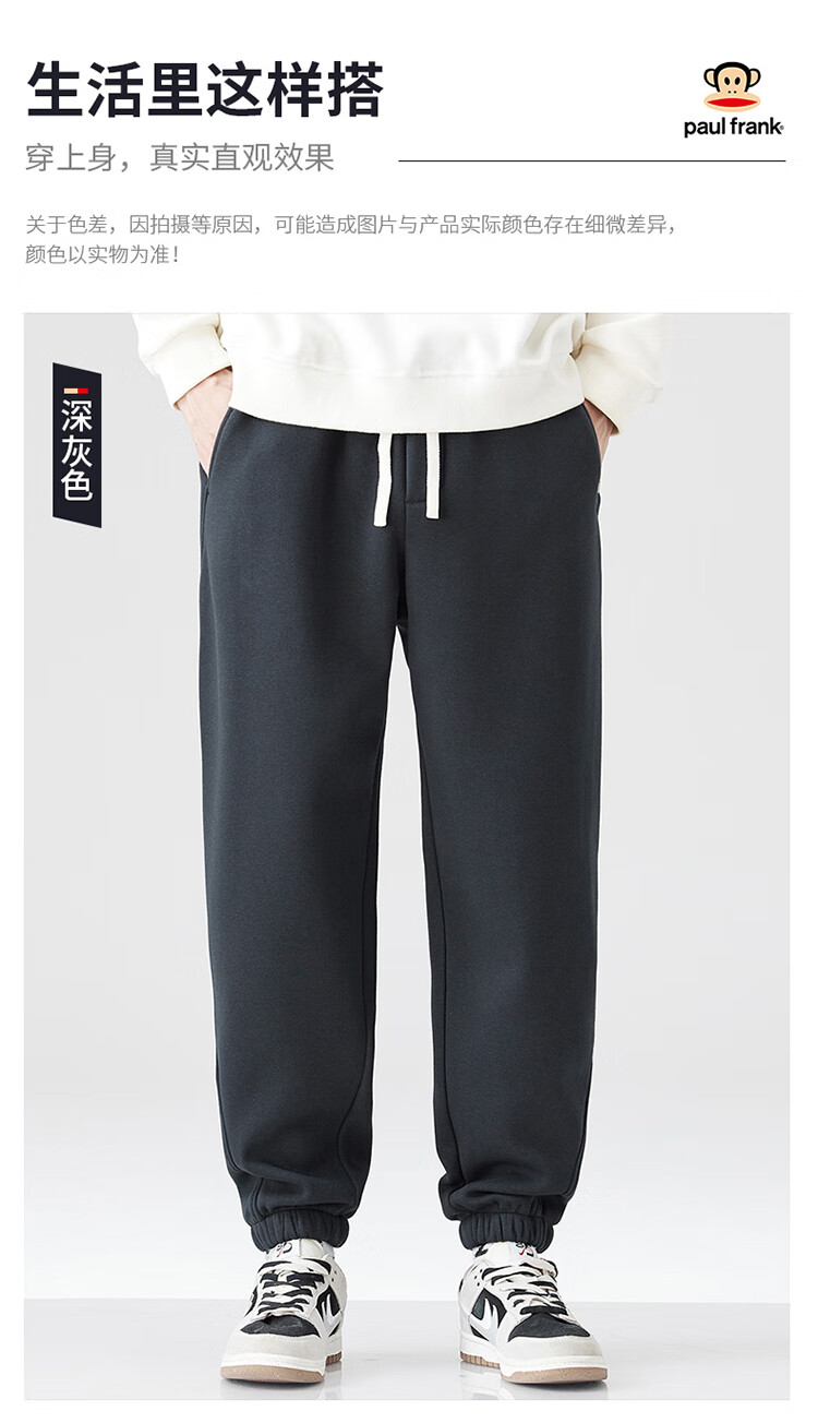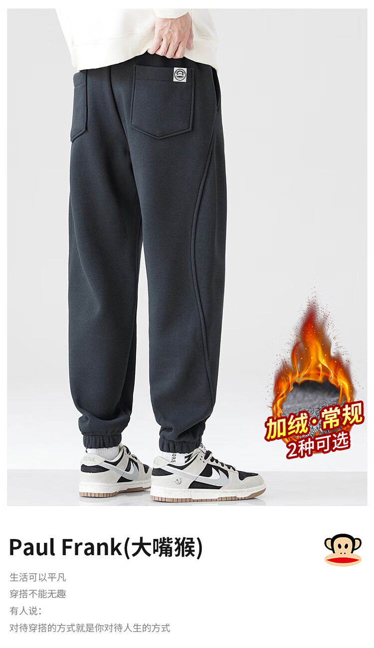 大嘴猴(paul frank)裤子男士秋冬季束脚休闲裤男运动卫裤男宽松男裤 深灰色 32