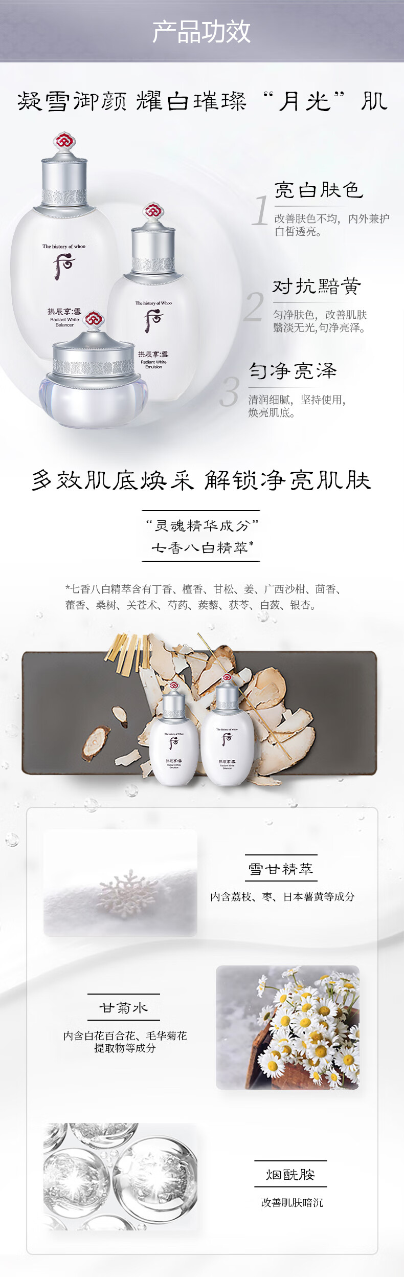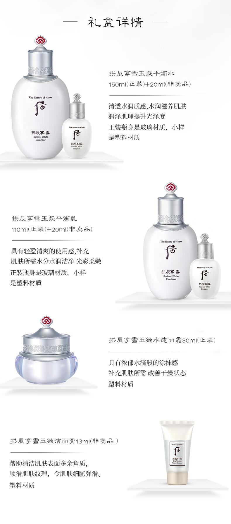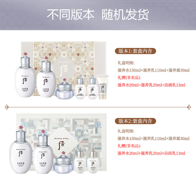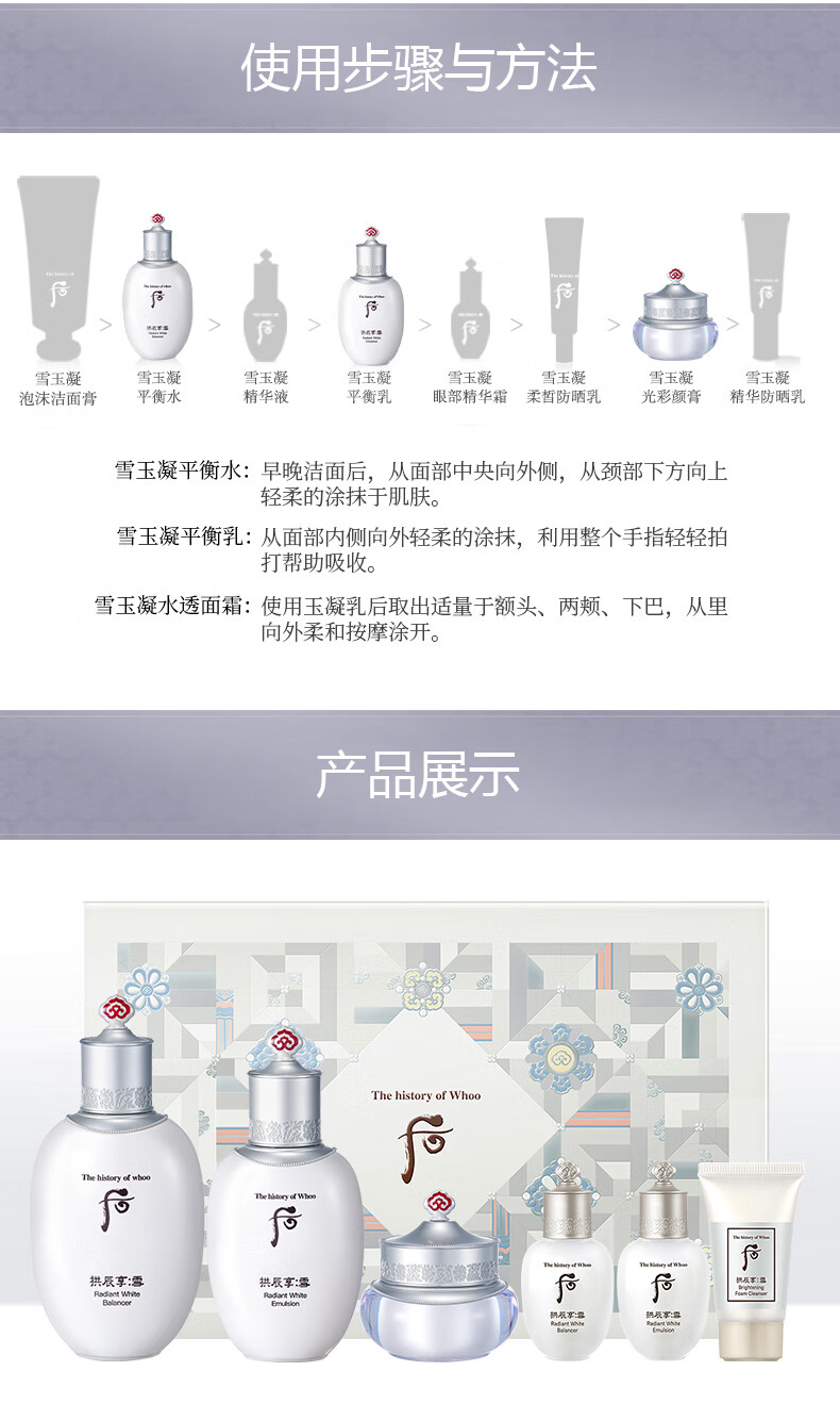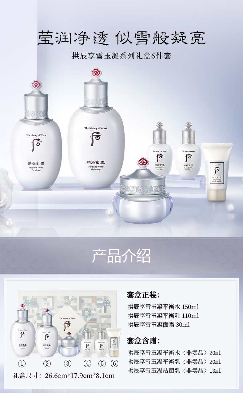 后Whoo雪玉凝水乳面霜6件礼盒343ml美白补水女生生日礼物
