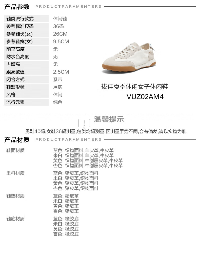 拔佳休闲鞋女秋新款轻便通勤德训运动鞋VUZ02AM4 米白 37