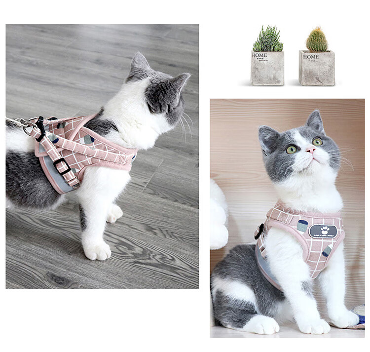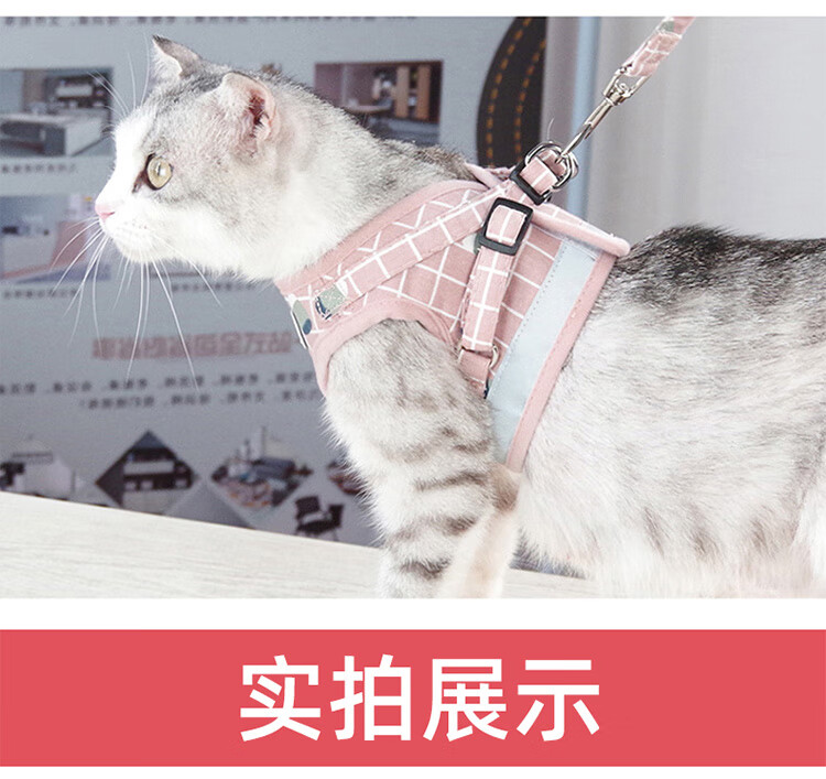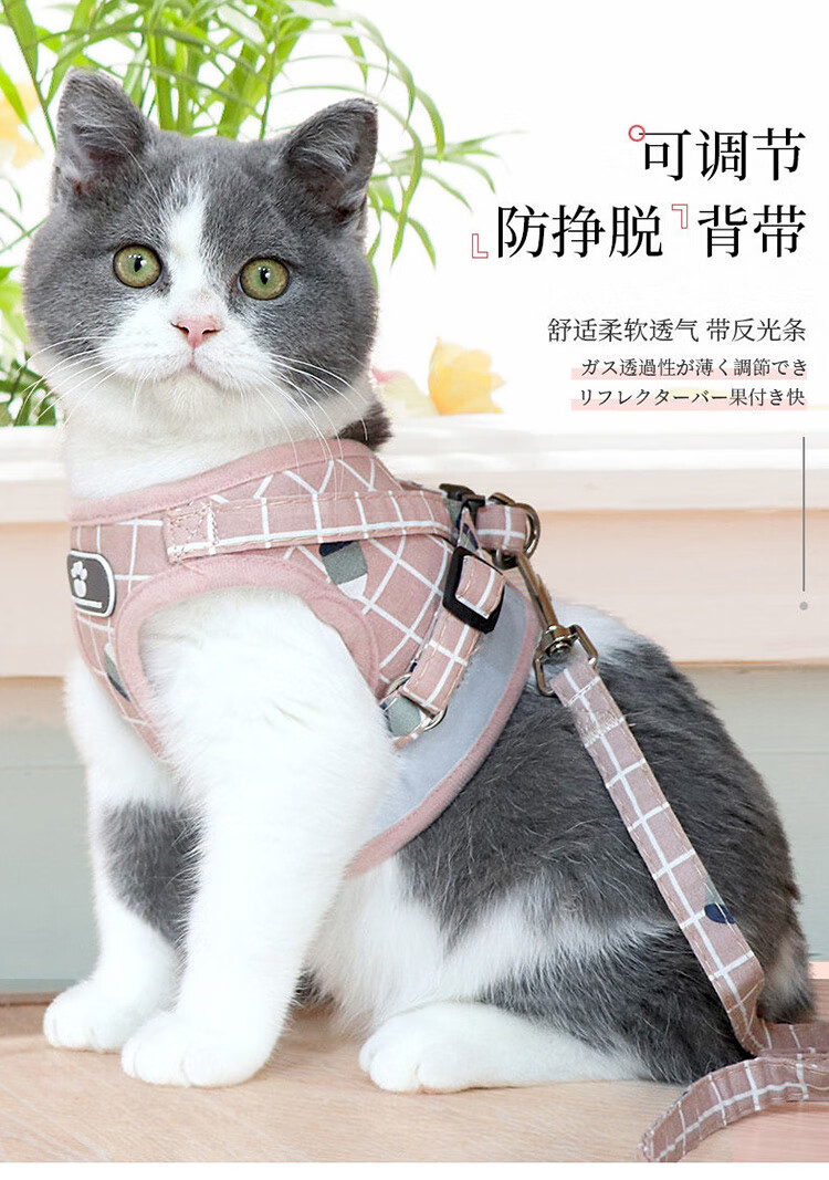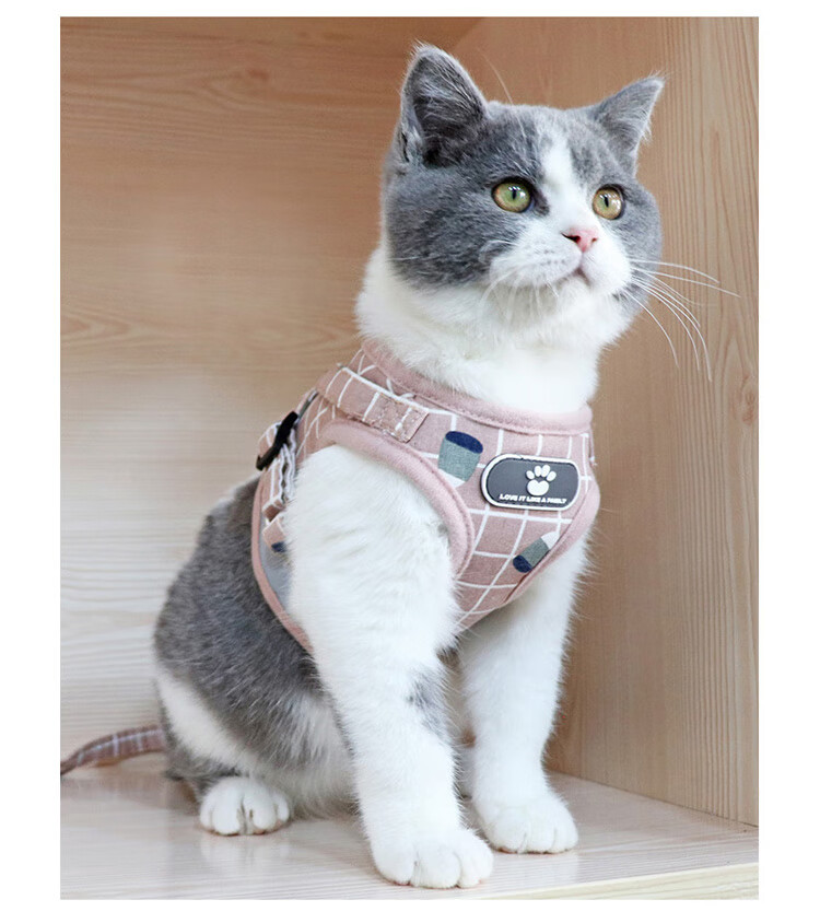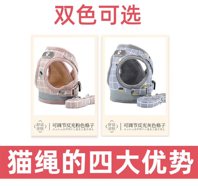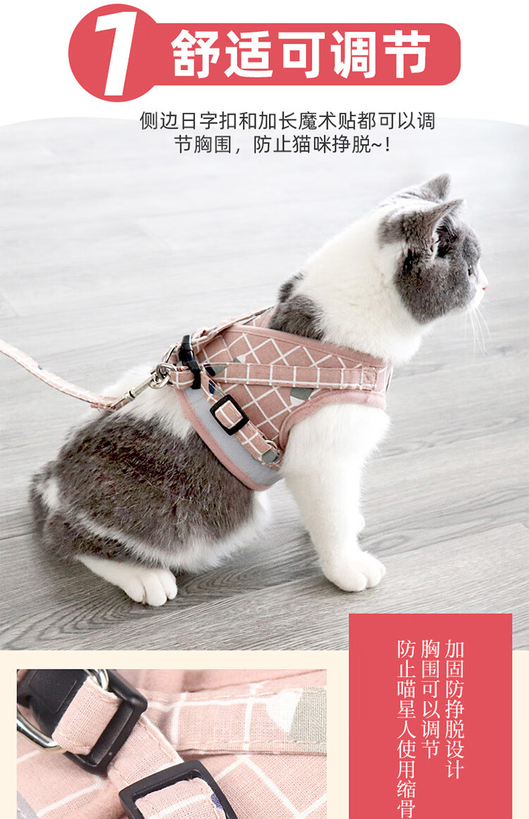 欢宠网猫咪牵引绳猫绳宠物防挣脱可调松紧背心式专用溜遛猫绳子外出用品