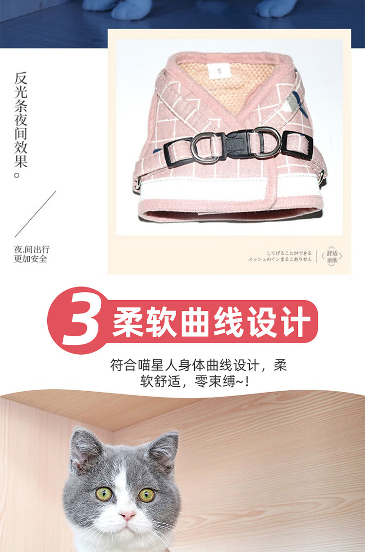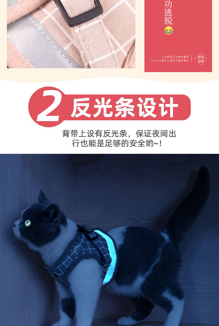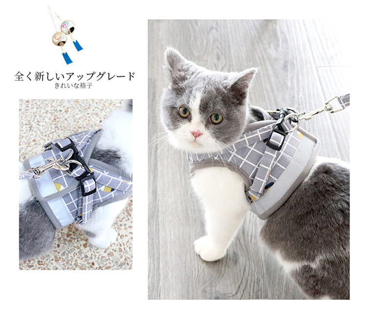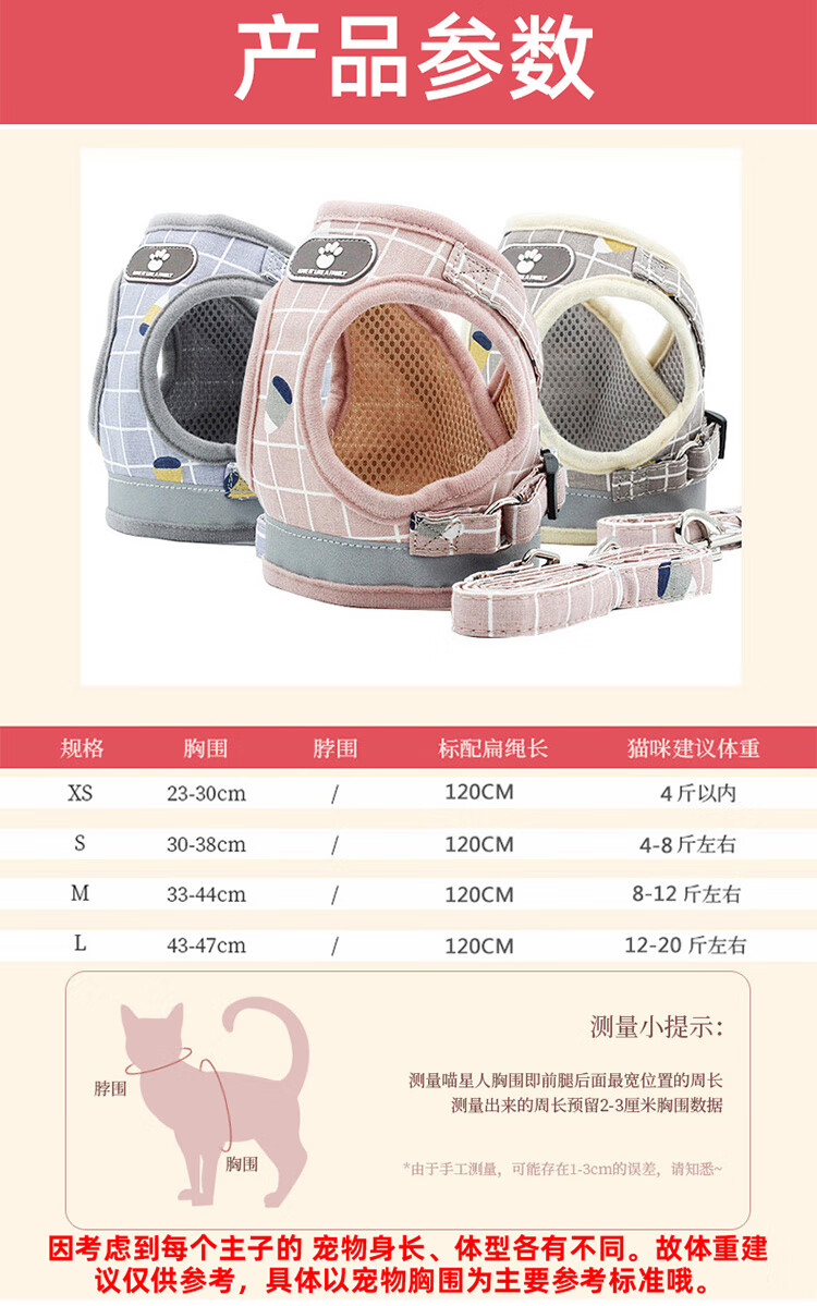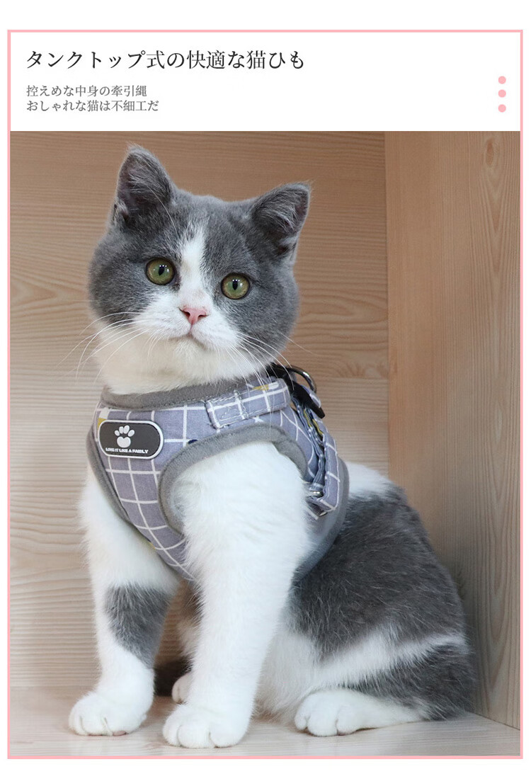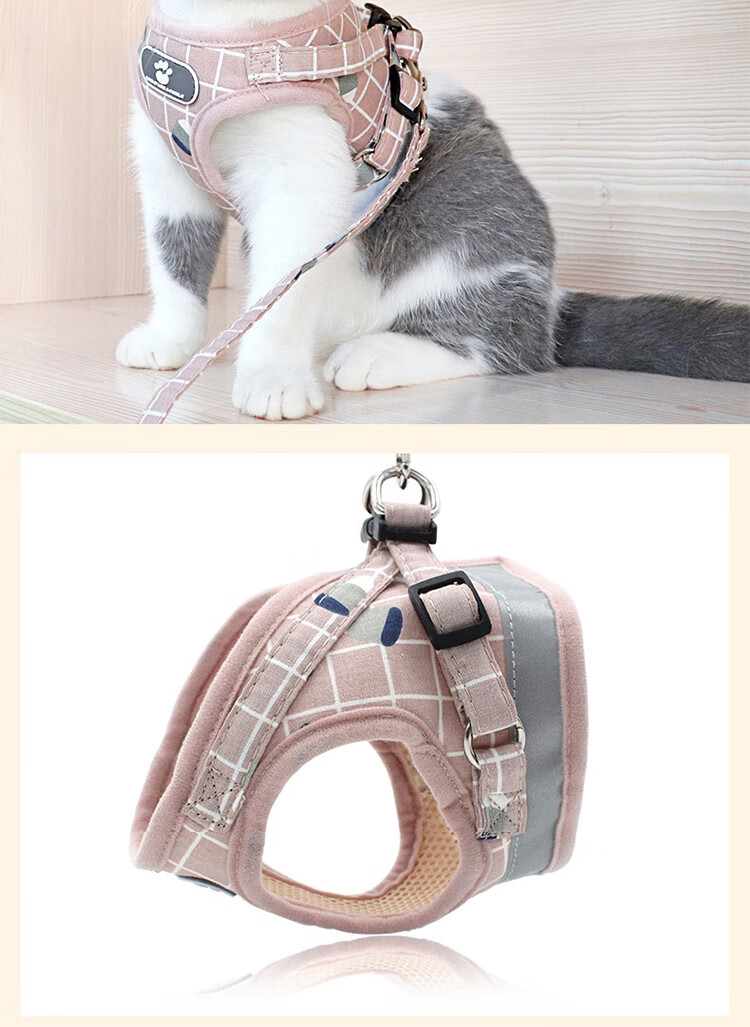 欢宠网猫咪牵引绳猫绳宠物防挣脱可调松紧背心式专用溜遛猫绳子外出用品