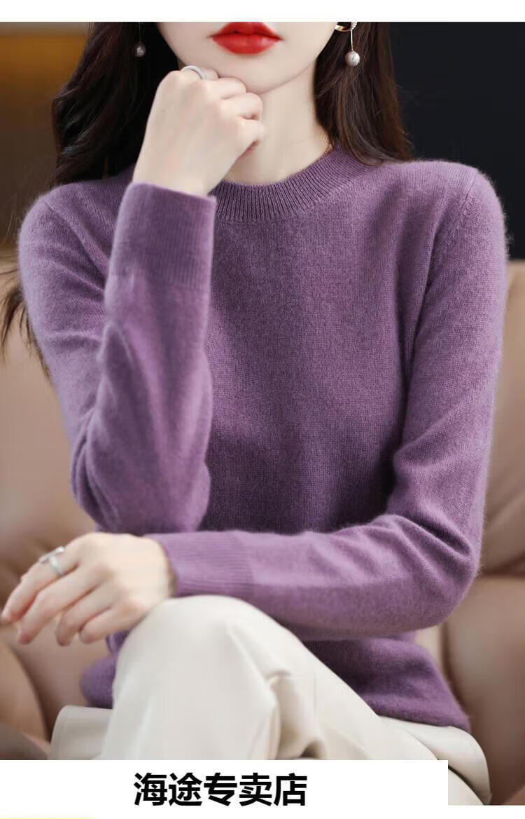 恒源祥25年秋冬新款羊毛衫女宽松毛衣百搭羊.绒衫针织衫打底上衣女 【深紫】 3XL 【155-170斤】