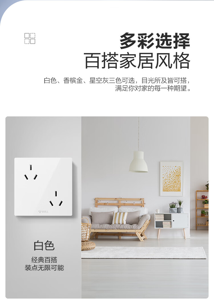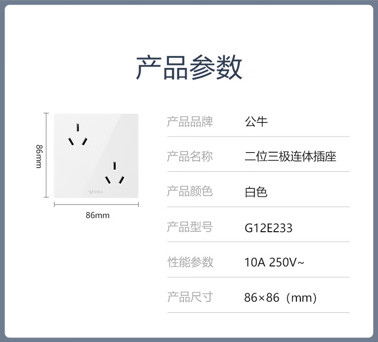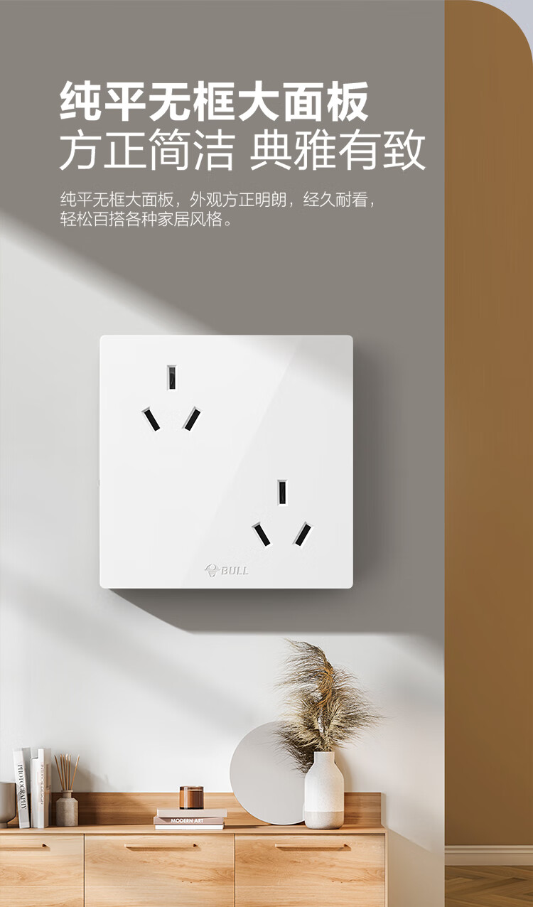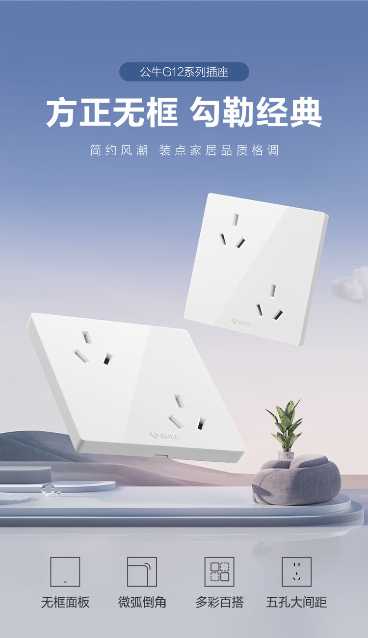 公牛(BULL)开关插座 G12系列 六孔10A插座86型插座面板 G12Z233 象牙白