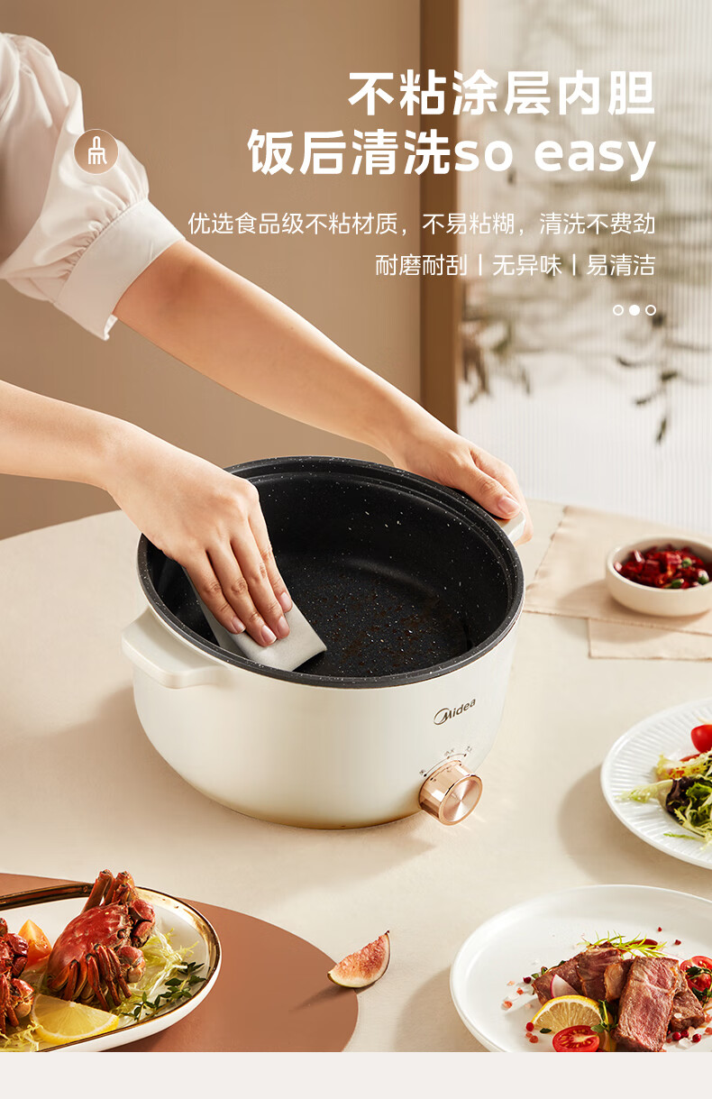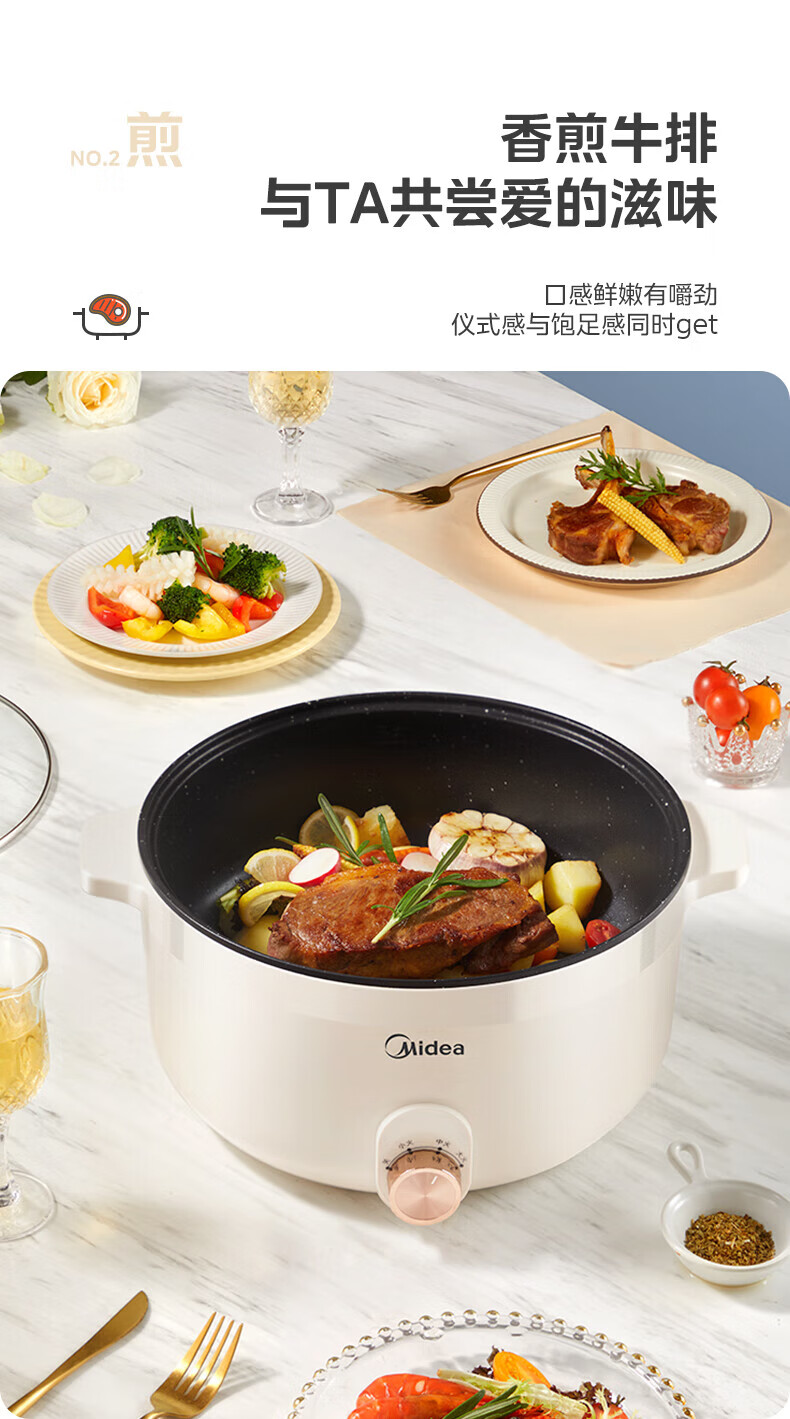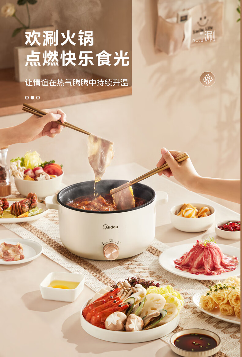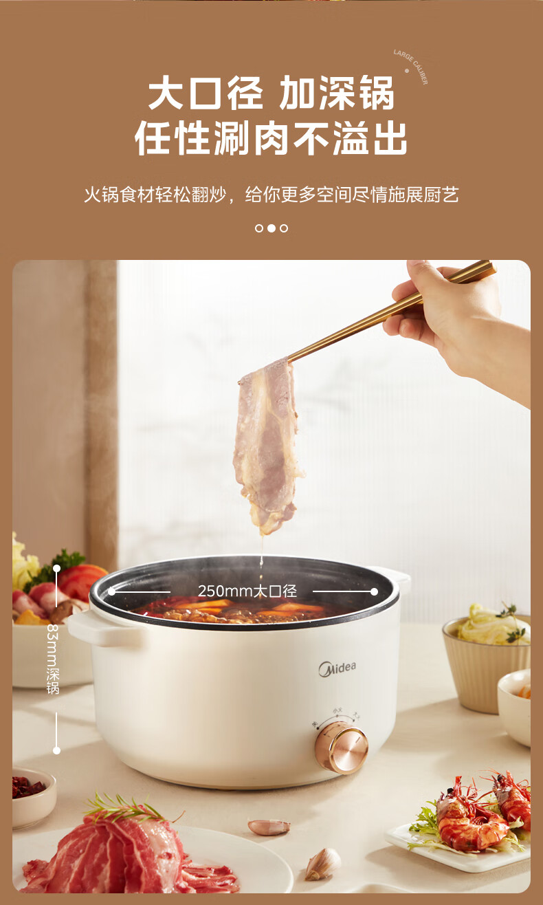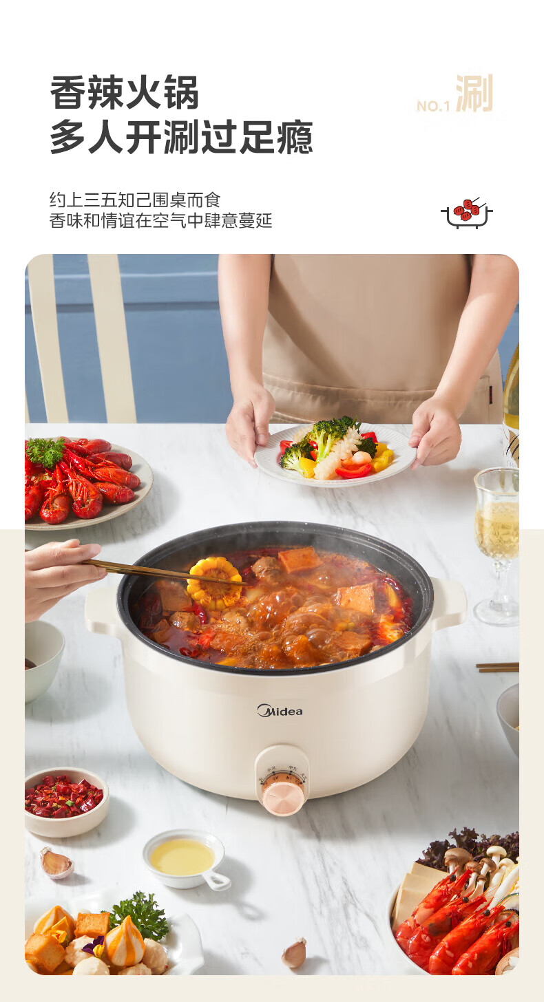 美的(Midea)电煮锅电火锅电炒锅不沾易清洁多功能锅电热锅火锅专用锅家用大容量电锅一体锅宿舍泡面小电锅 6L 【大口径加深火锅】