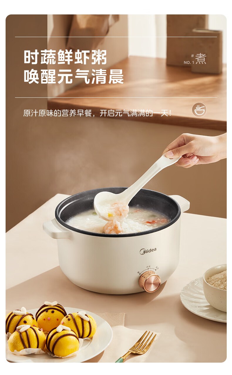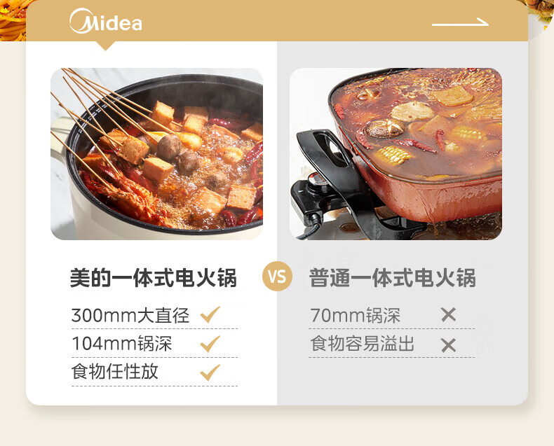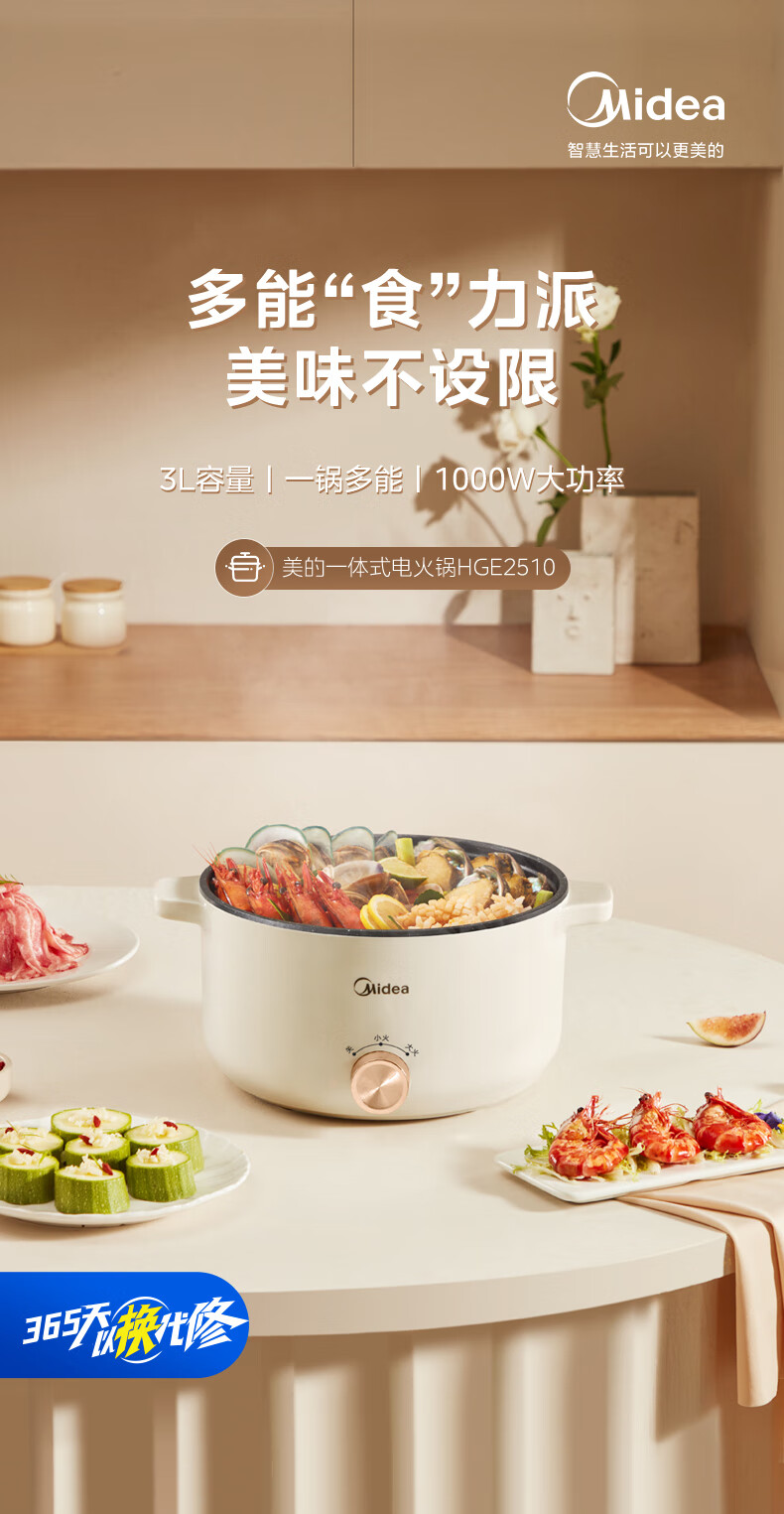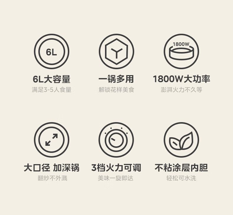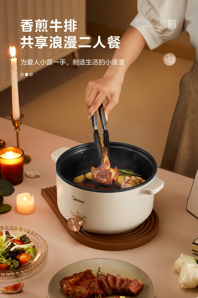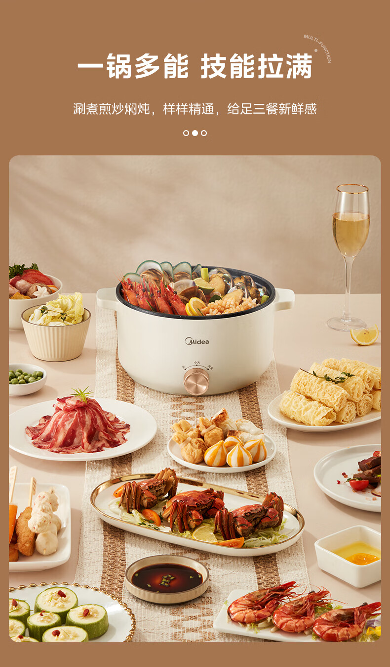 美的(Midea)电煮锅电火锅电炒锅不沾易清洁多功能锅电热锅火锅专用锅家用大容量电锅一体锅宿舍泡面小电锅 6L 【大口径加深火锅】