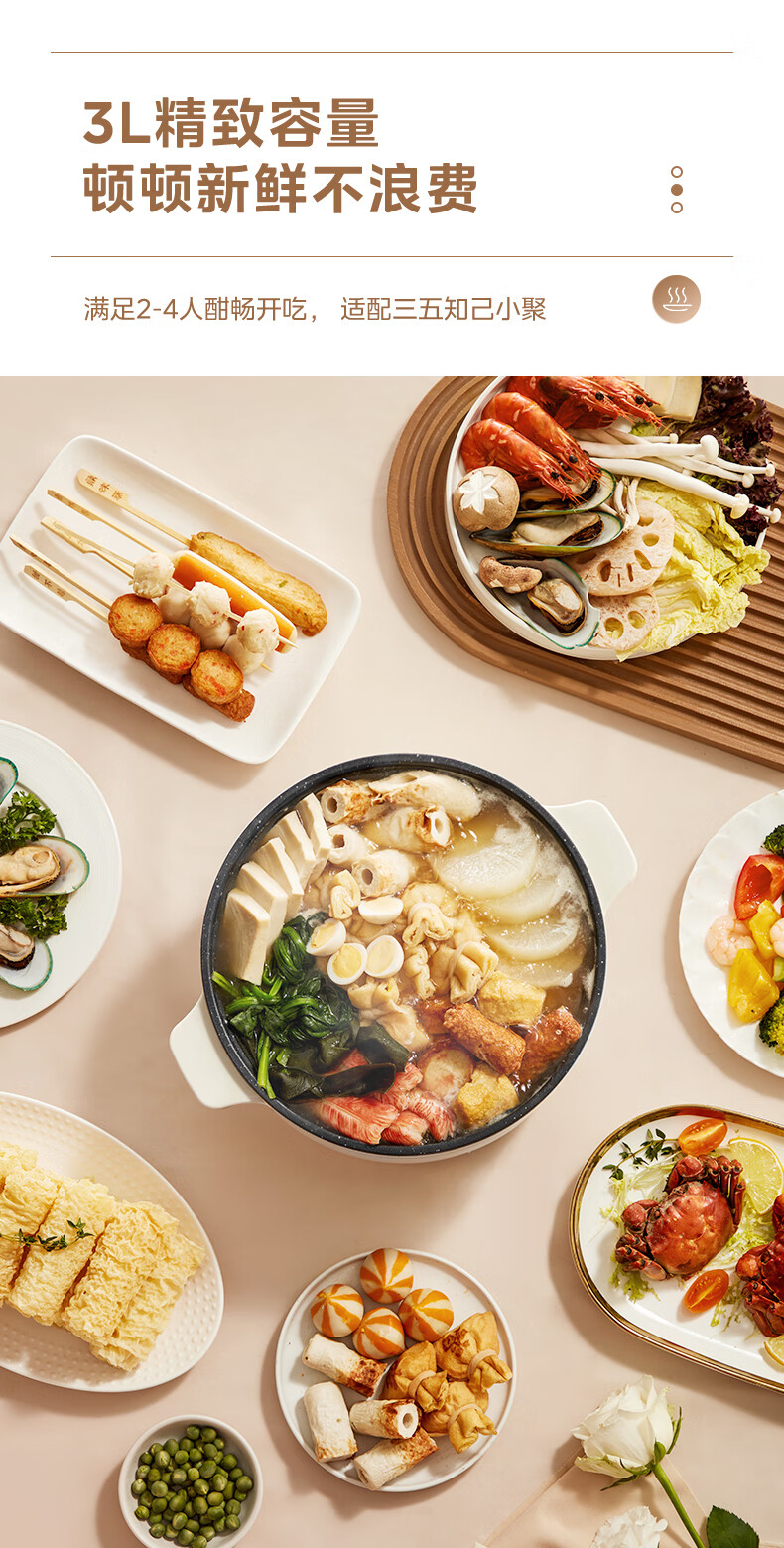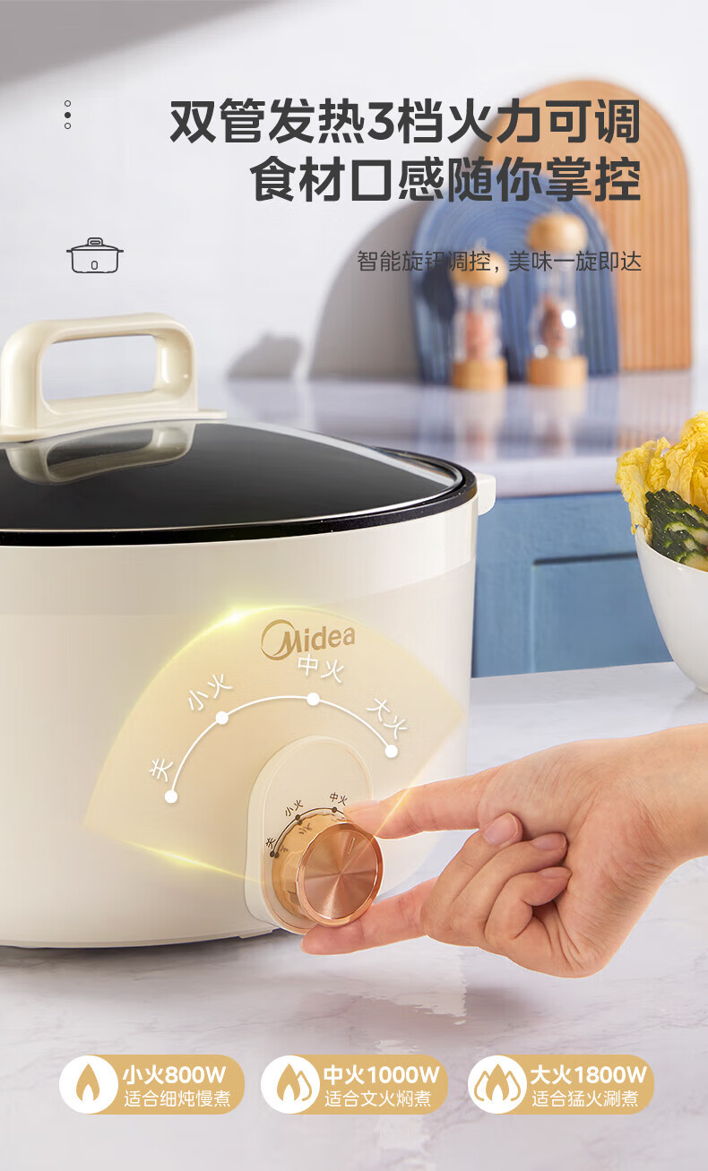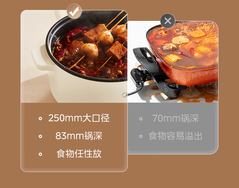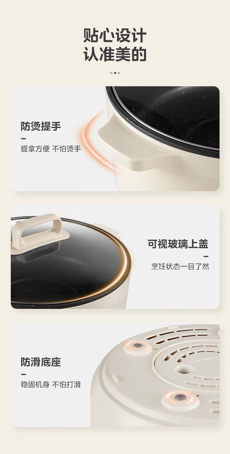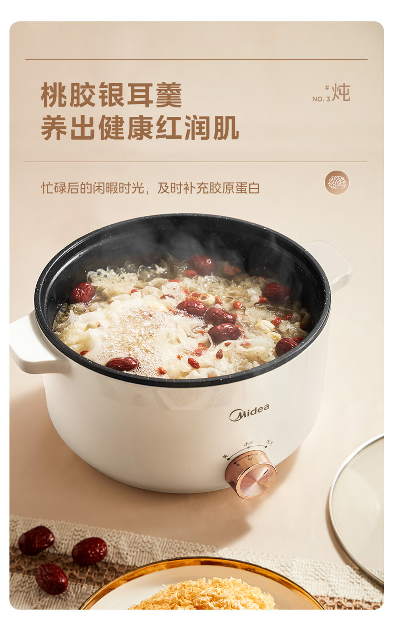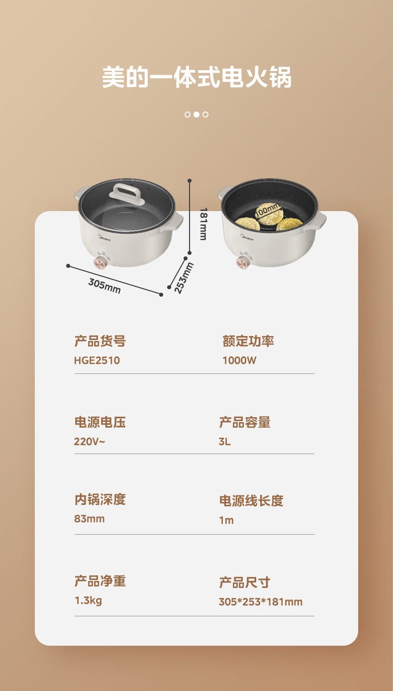 美的(Midea)电煮锅电火锅电炒锅不沾易清洁多功能锅电热锅火锅专用锅家用大容量电锅一体锅宿舍泡面小电锅 6L 【大口径加深火锅】