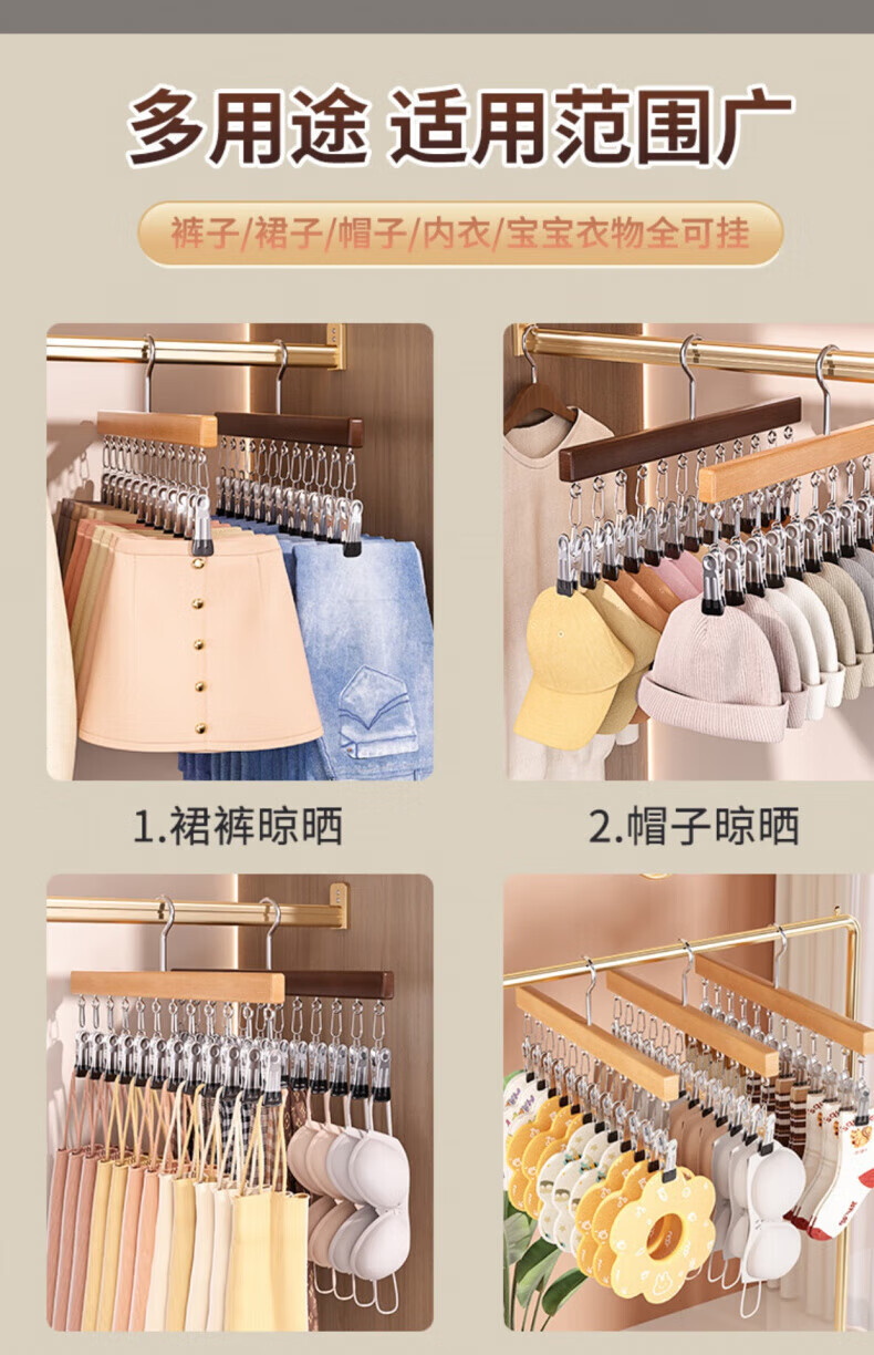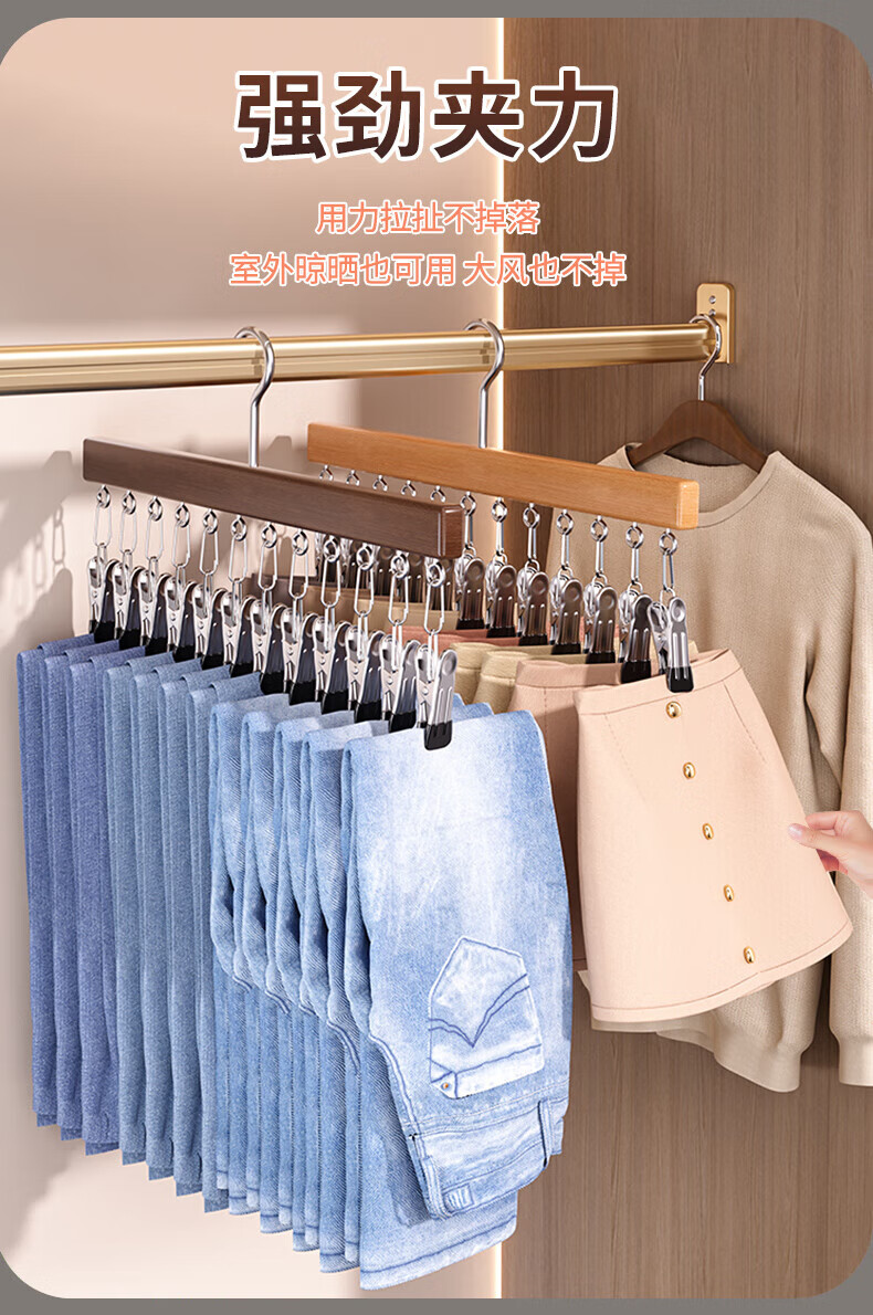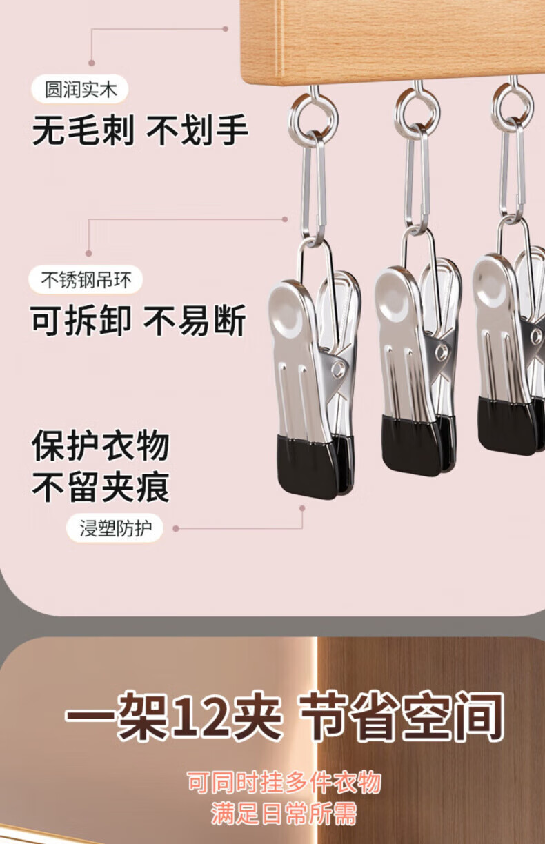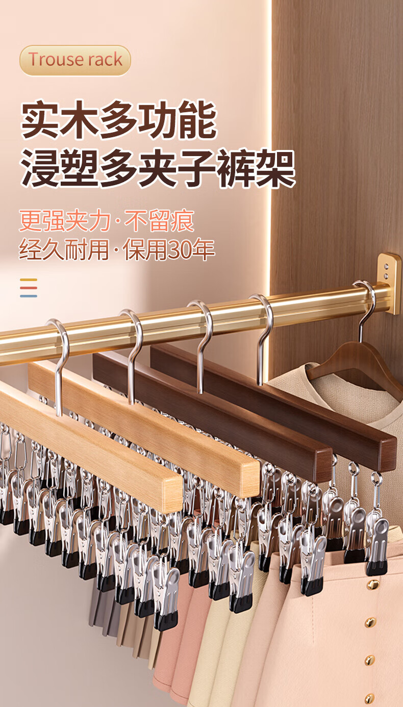 户璃德国实木裤夹子家用无痕不锈钢多功能带夹子衣柜裙子裤子衣架收纳 定制产品请联系客服询价下单