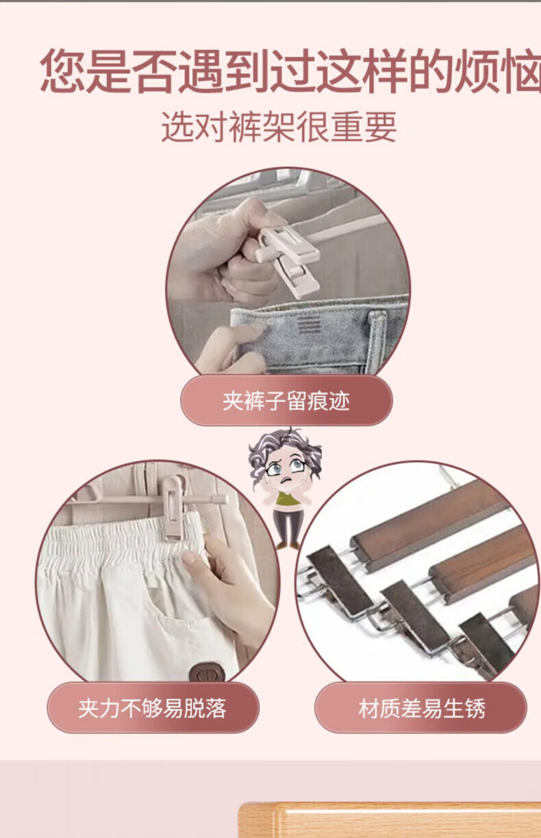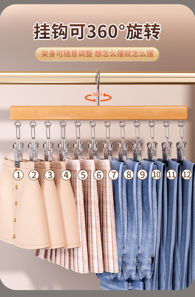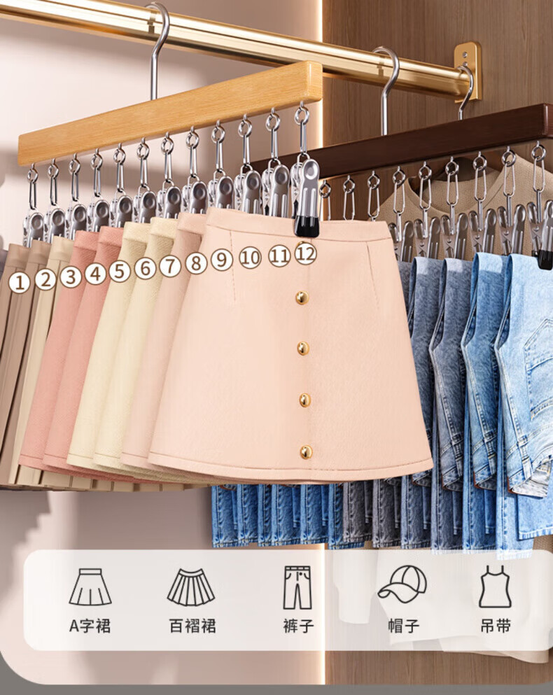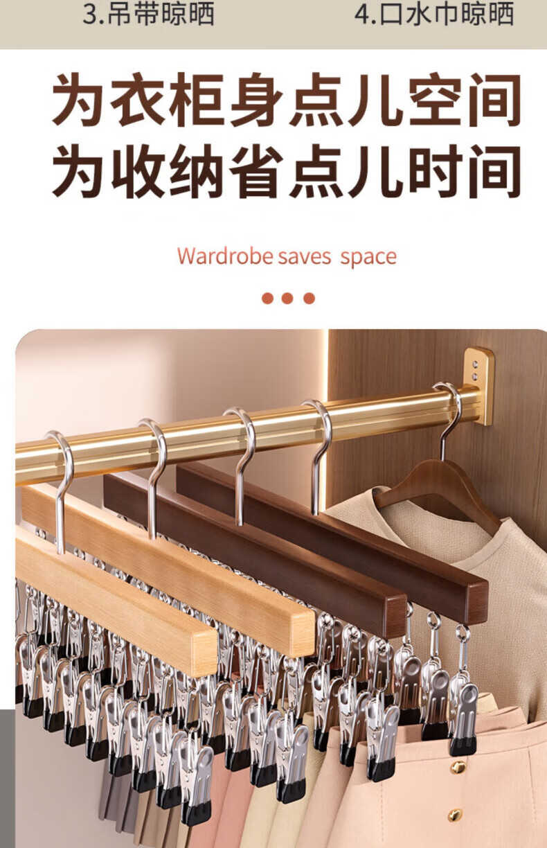 户璃德国实木裤夹子家用无痕不锈钢多功能带夹子衣柜裙子裤子衣架收纳 定制产品请联系客服询价下单