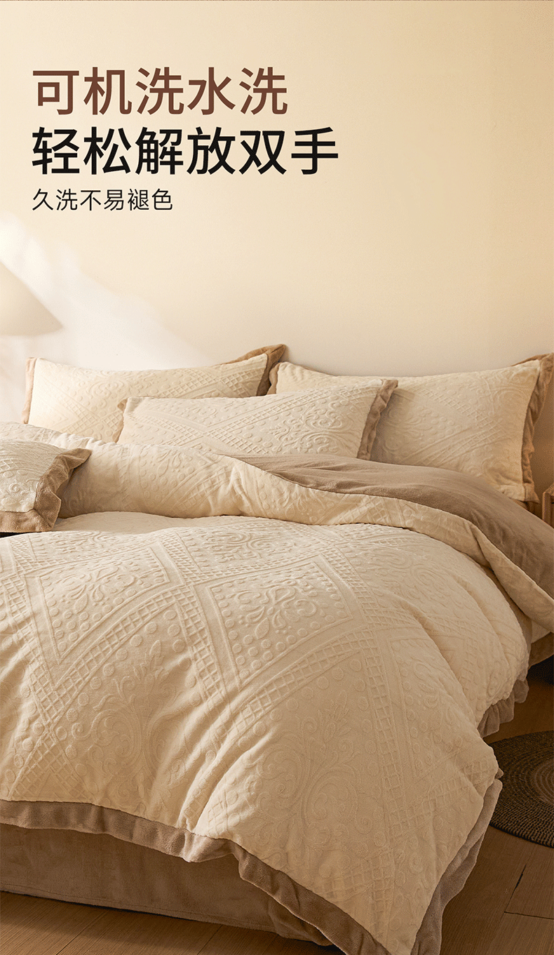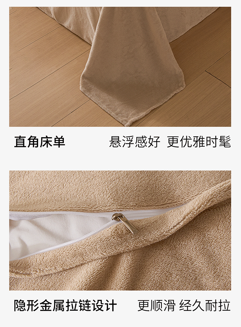 名创优品牛奶绒床上四件套冬季加厚毛绒珊瑚绒床单床笠款被套宿舍三件套 青梅绿-浅米灰 【官方鉴定:全部产品通过国标质检】 1.8 床笠款 (被套200*230cm)