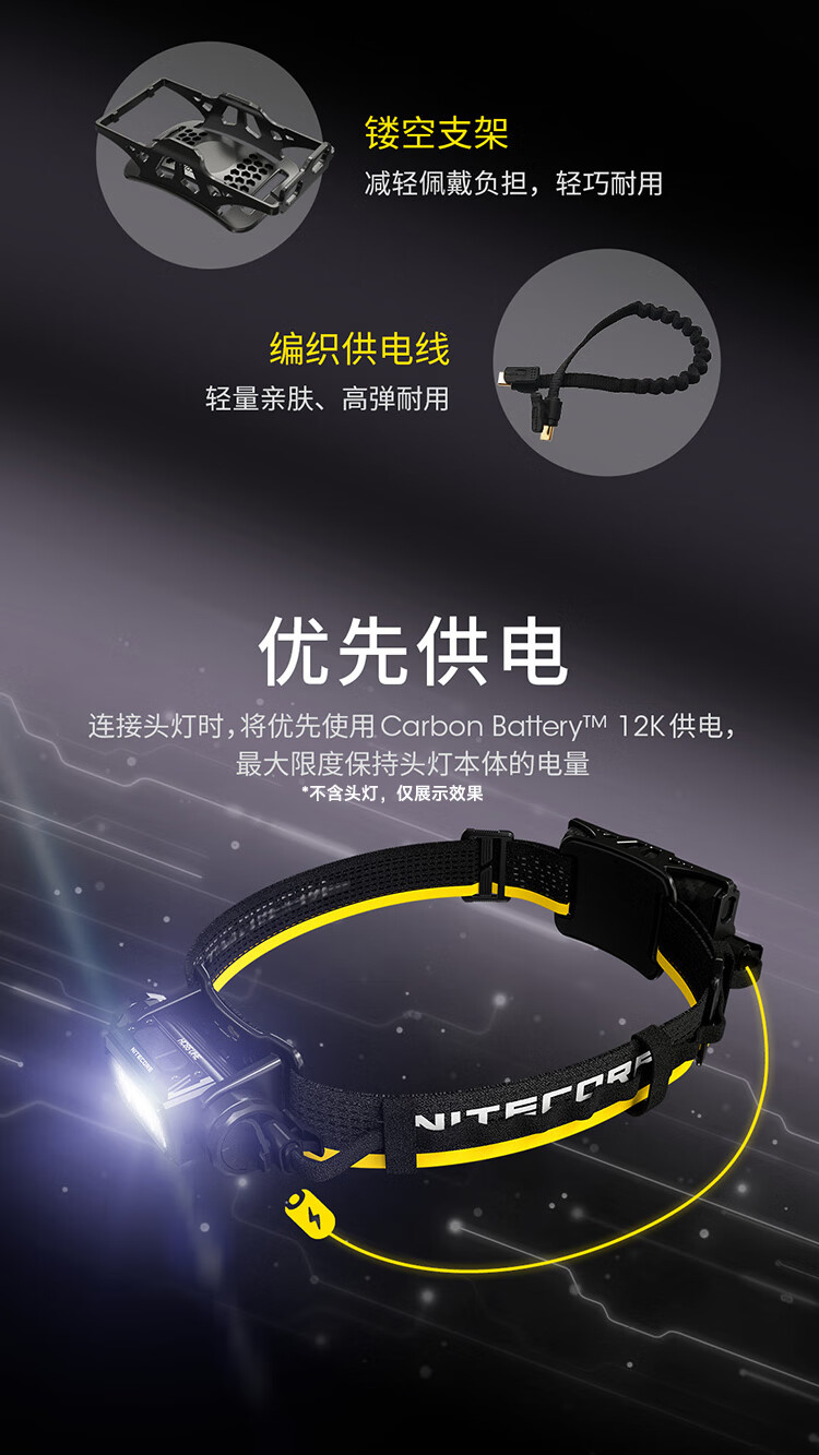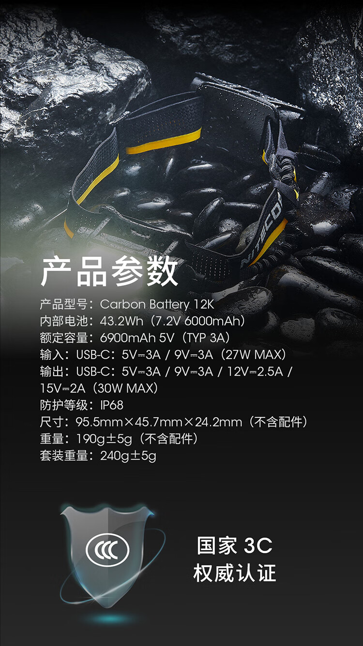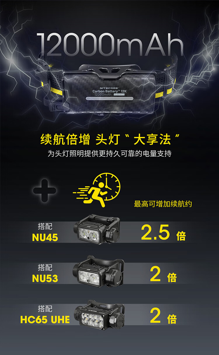 奈特科尔12000mAh大容量头灯续航增强外接电源套装配件 12000mAh【头灯续航外接电池套装】
