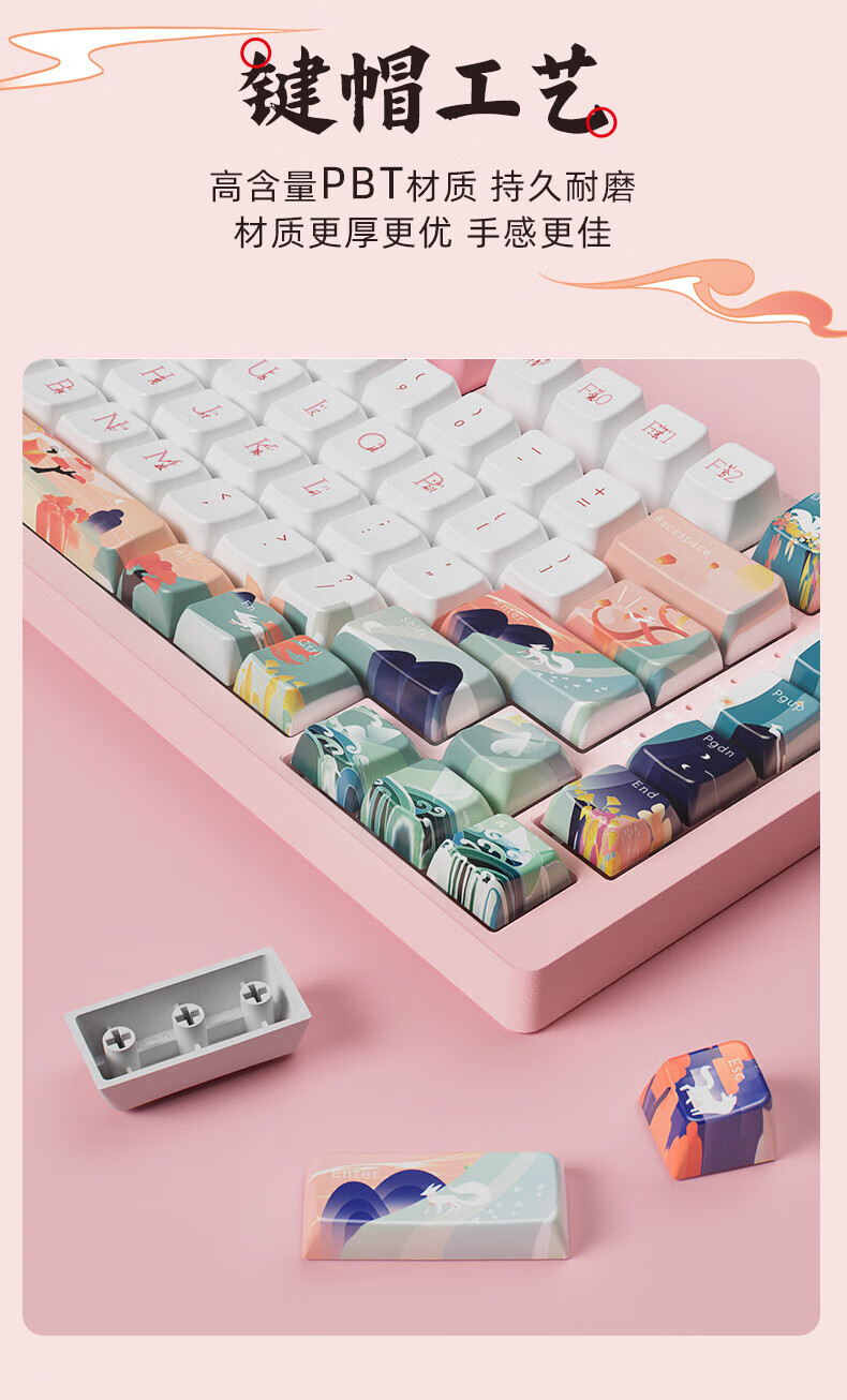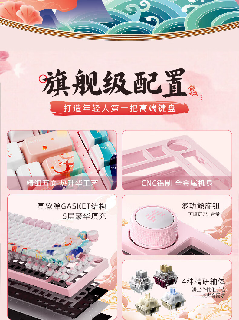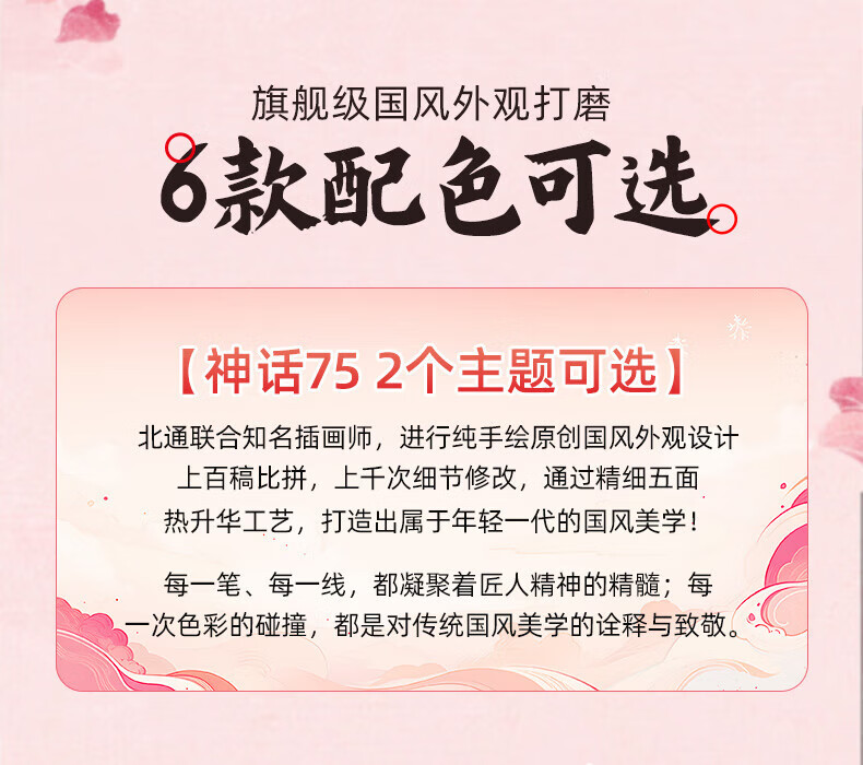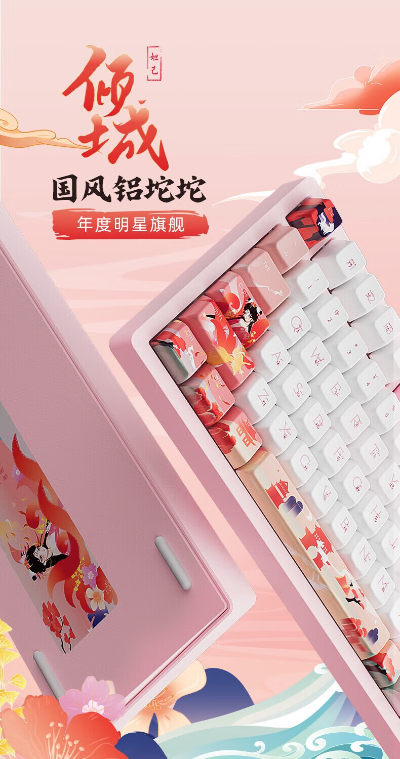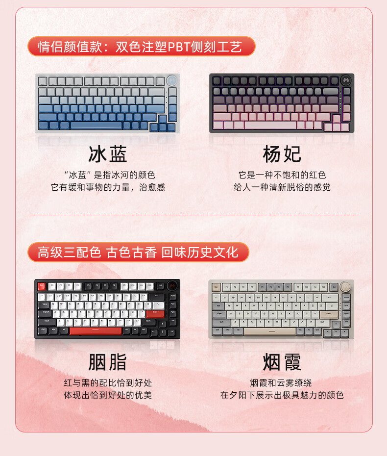 北通国风键盘古色75客制化机械键盘铝坨坨三模/单模 无线蓝牙GASKET游戏办公男女生侧刻台式电脑笔记本 烟霞【雨滴轴】 单模-Type-C有线