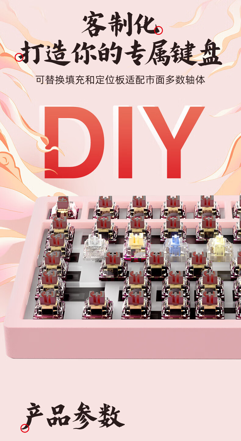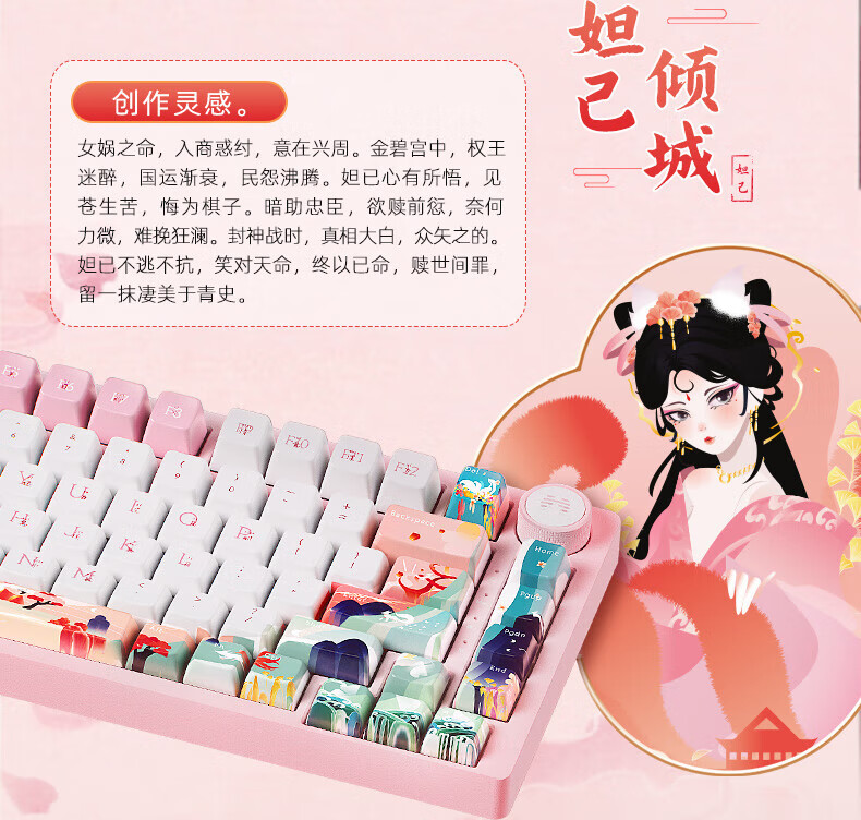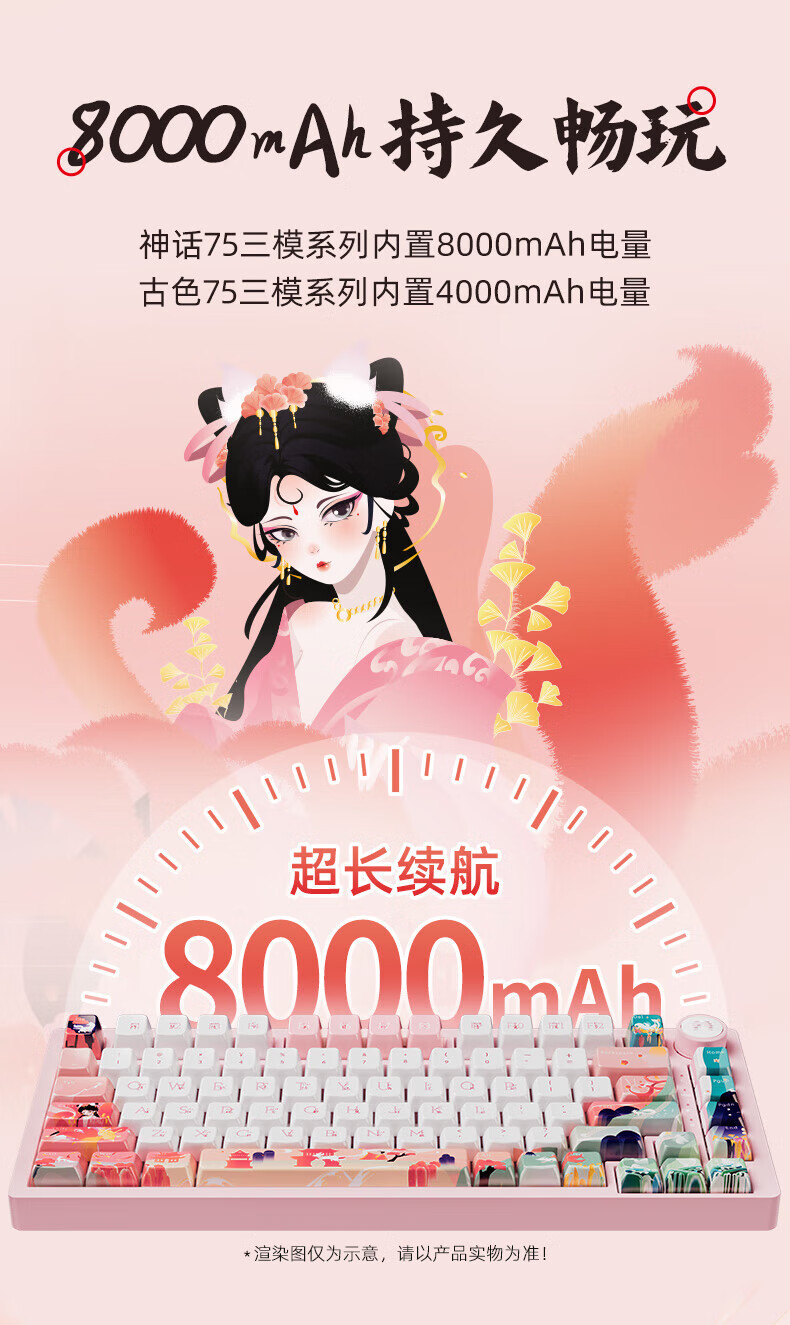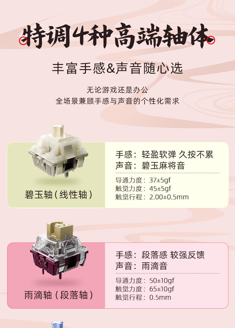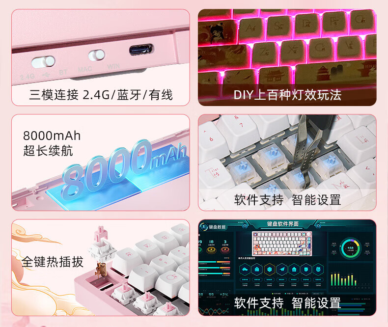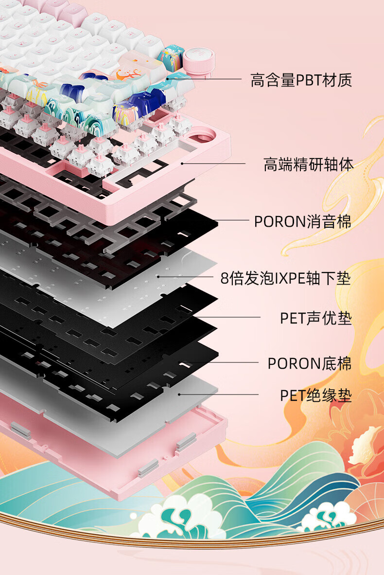 北通国风键盘古色75客制化机械键盘铝坨坨三模/单模 无线蓝牙GASKET游戏办公男女生侧刻台式电脑笔记本 烟霞【雨滴轴】 单模-Type-C有线