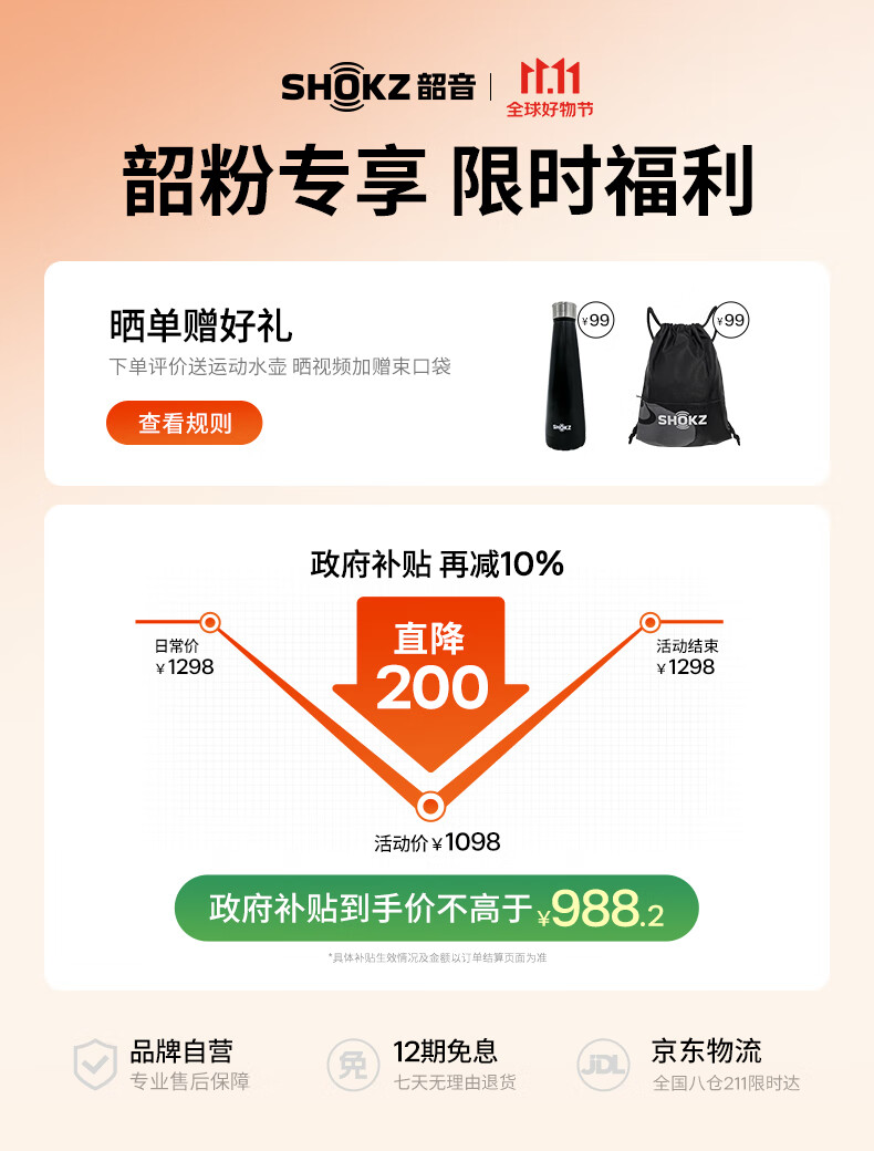 韶音(SHOKZ)OpenRun Pro 2 S820开放式蓝牙耳机骨传导耳机运动跑步骑行无线耳机超长续航 基普乔格联名款