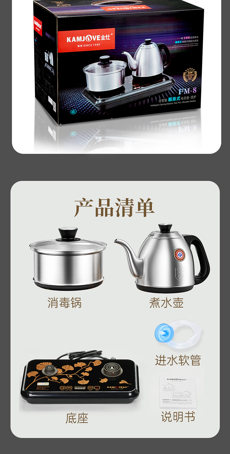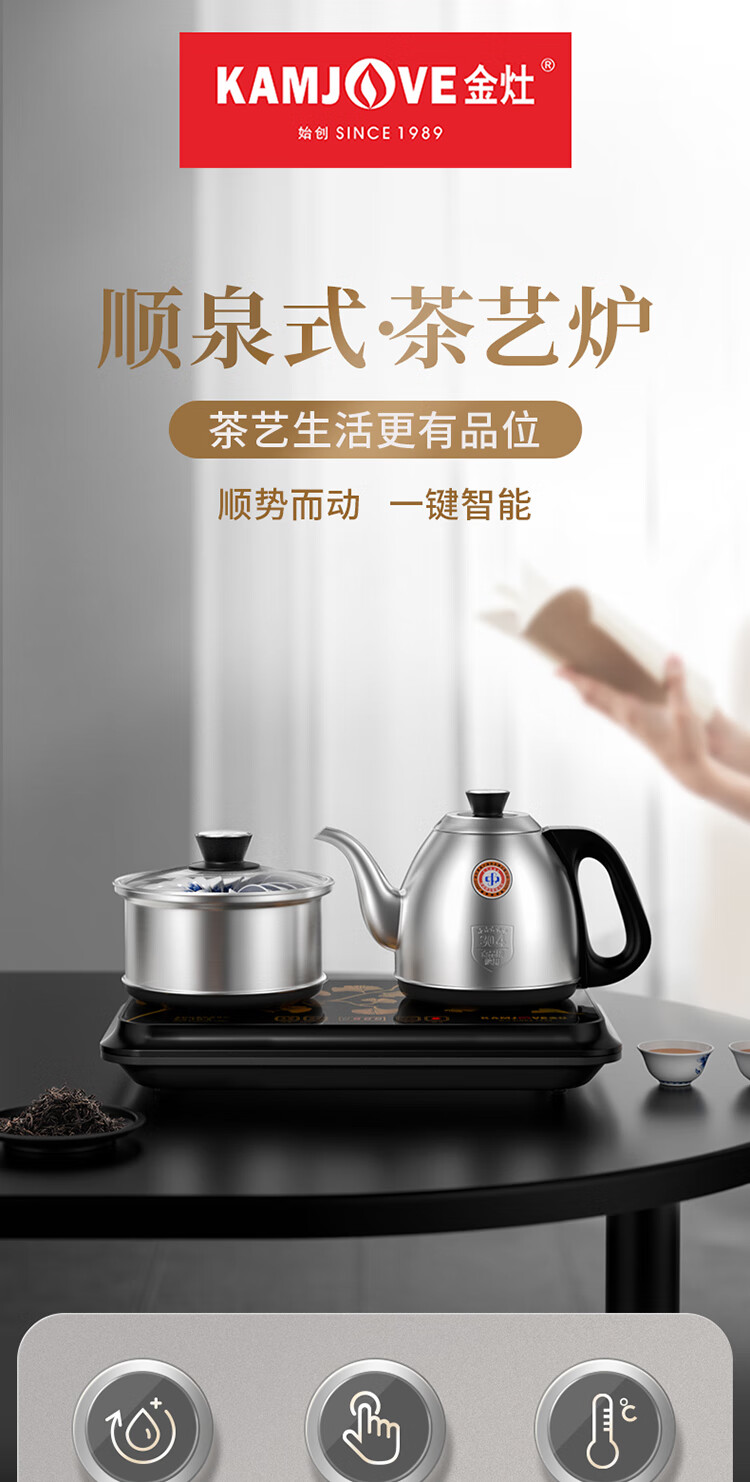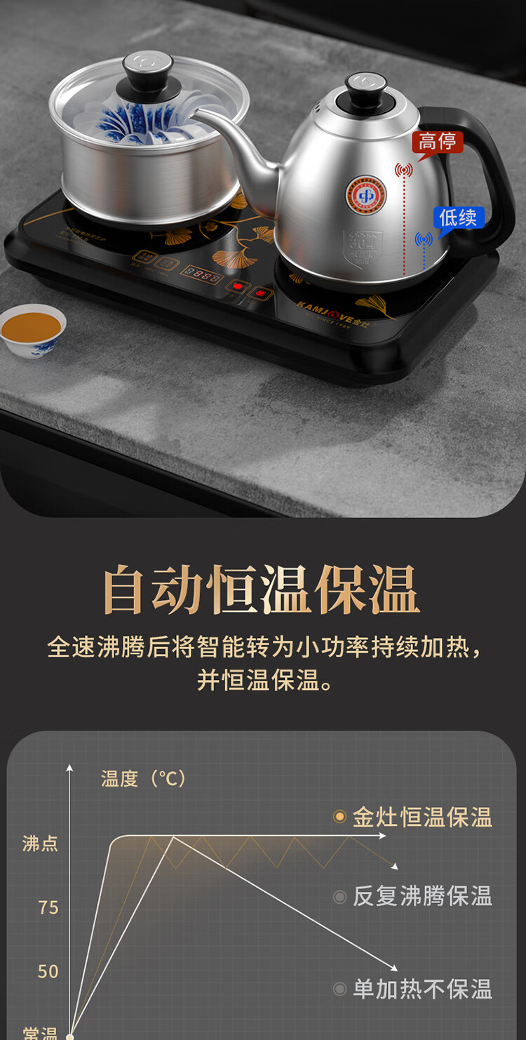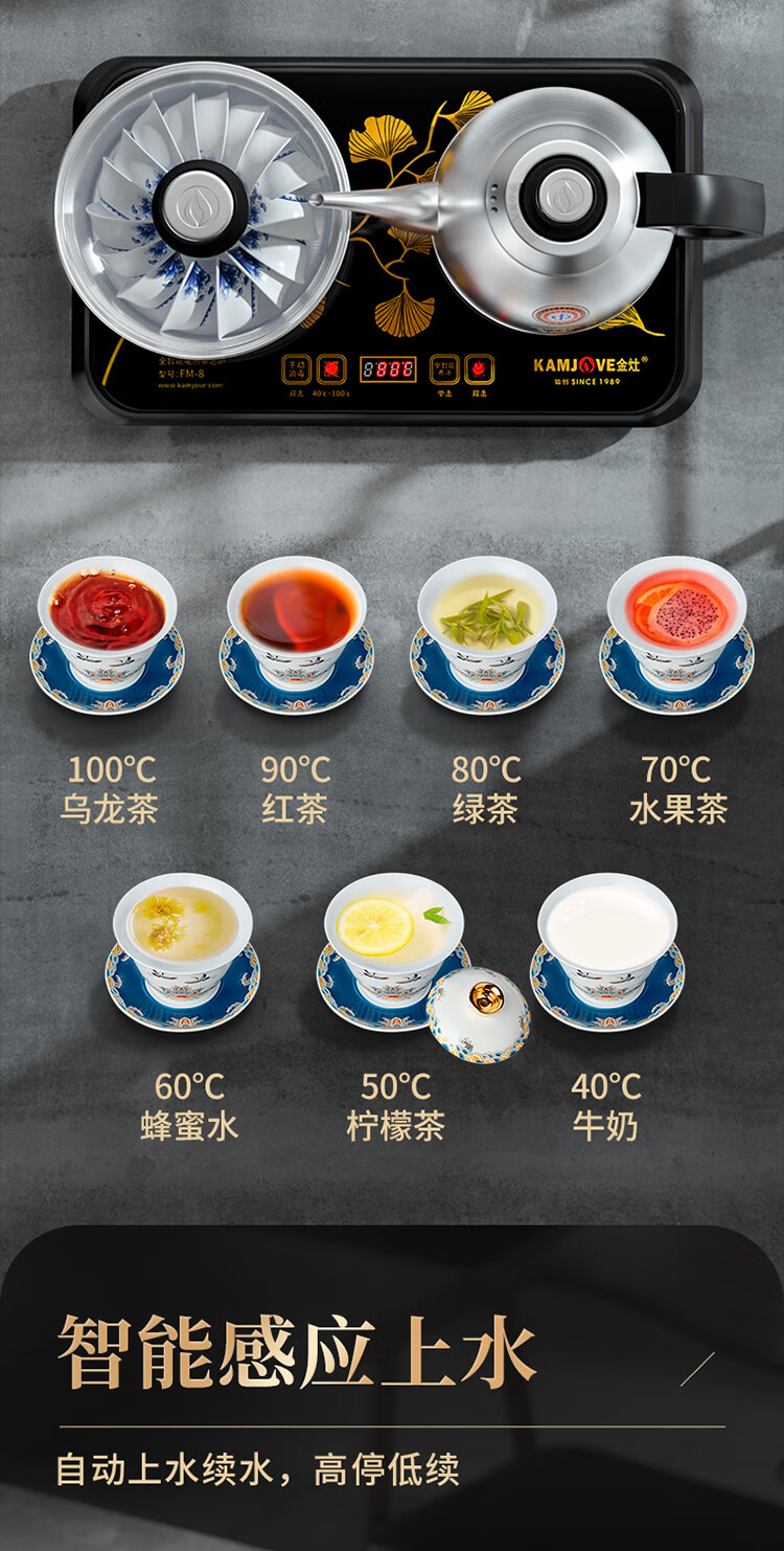 金灶(KAMJOVE)全自动手柄上水电热水壶茶台烧水壶全自动一体 烧水保温一体全自动恒温热水壶茶具泡茶器 FM-8 0.9L