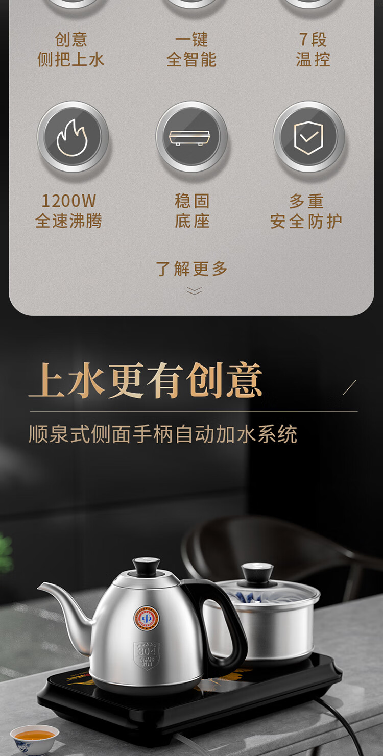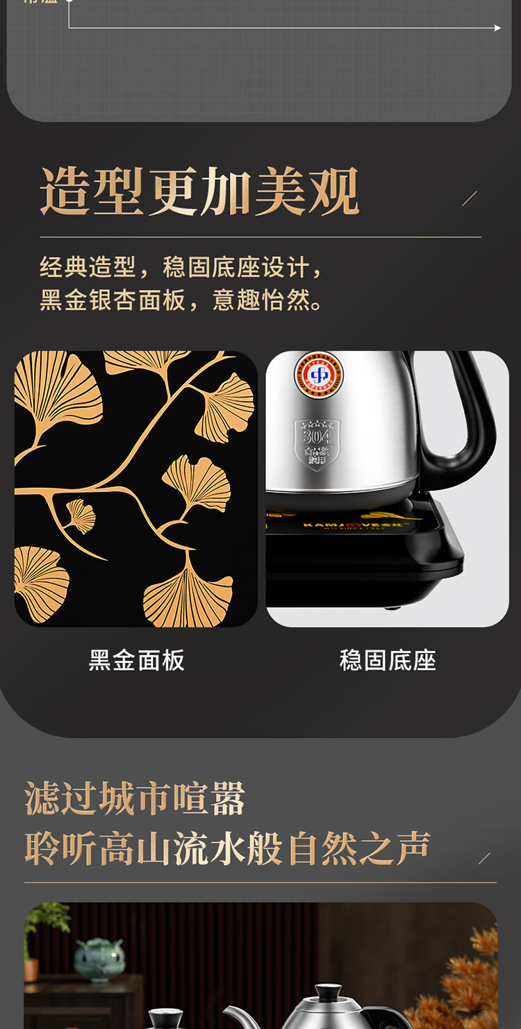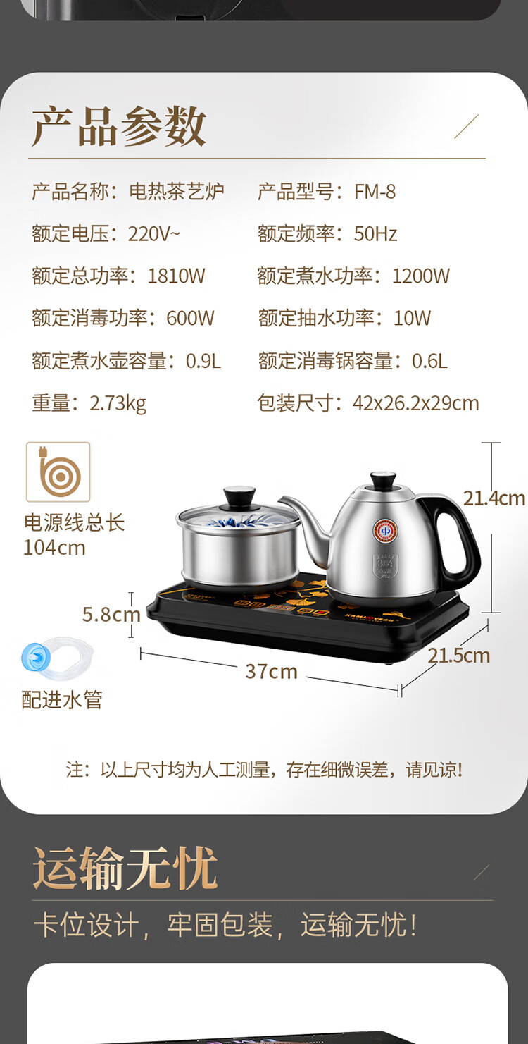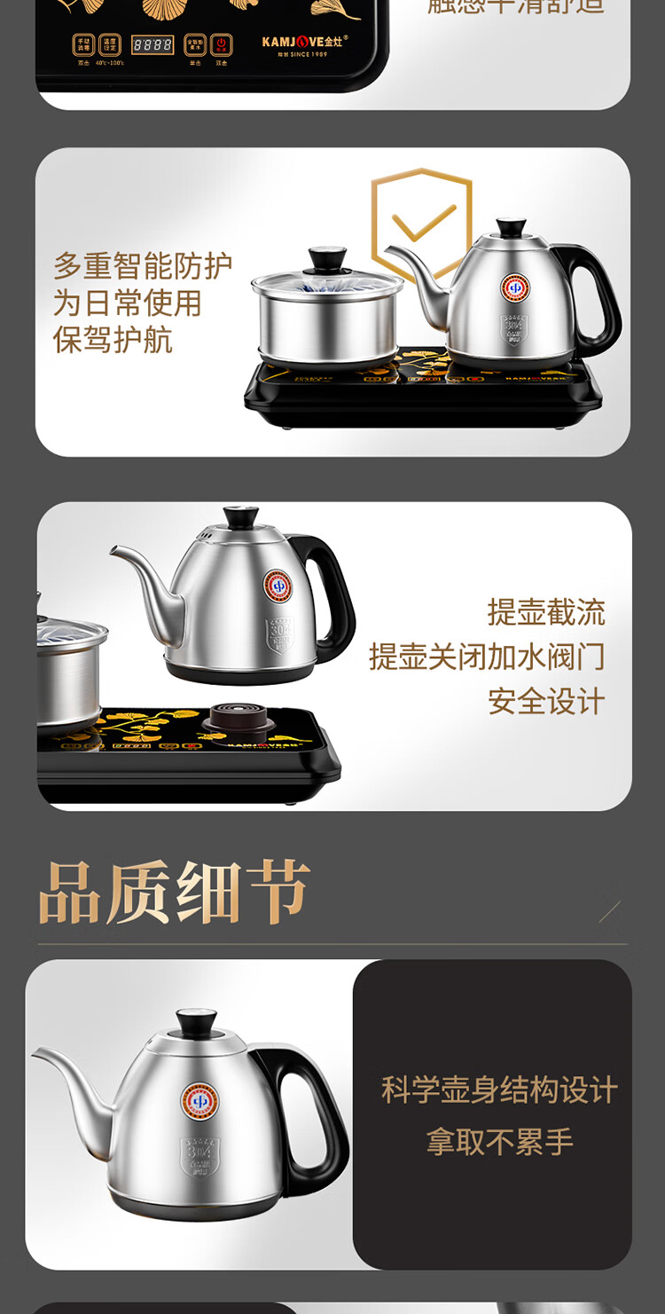 金灶(KAMJOVE)全自动手柄上水电热水壶茶台烧水壶全自动一体 烧水保温一体全自动恒温热水壶茶具泡茶器 FM-8 0.9L