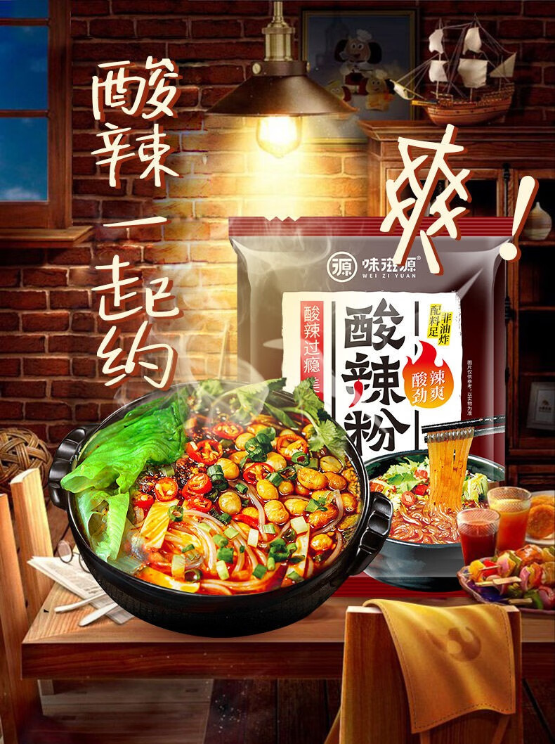 味滋源 酸辣粉 重庆特产方便粉丝米线泡面早餐宵夜代餐 干脆面 (4口味)17g 10袋 1件