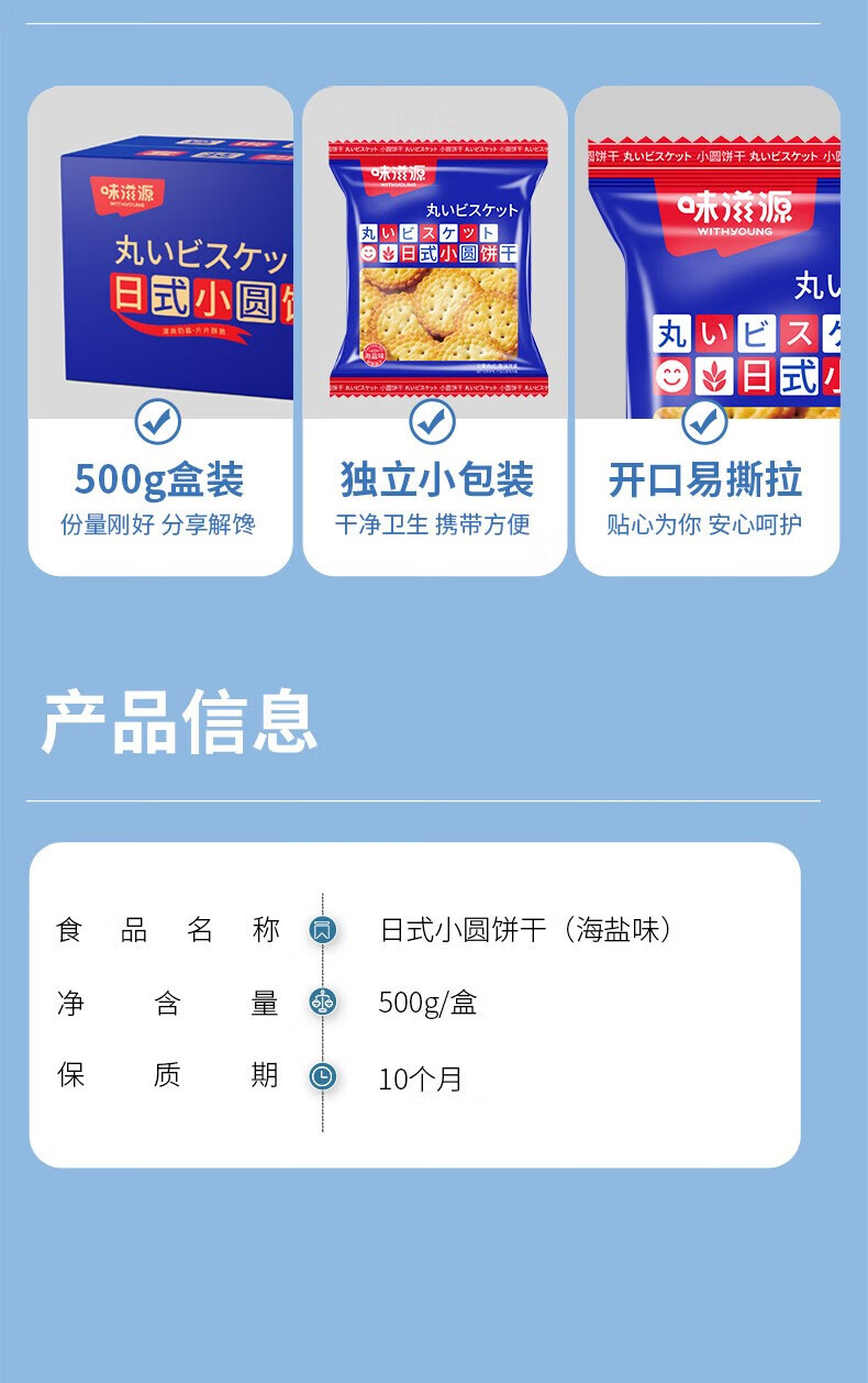 味滋源小圆饼干网红日式海盐味薄脆饼干代餐饼干办公室下午茶休闲零食 日式小圆饼干(海盐味)500g 1箱