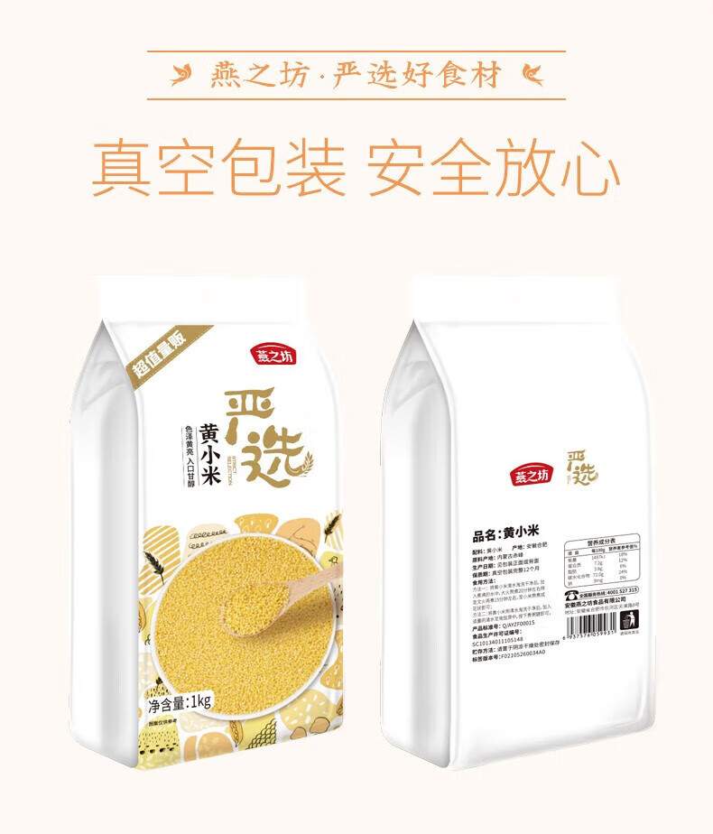 燕之坊黄小米新米小黄米五谷杂粮粗粮 宝宝粥米特产小米养生粥饭伴侣 黄小米1kg*2袋共4斤新鲜日期