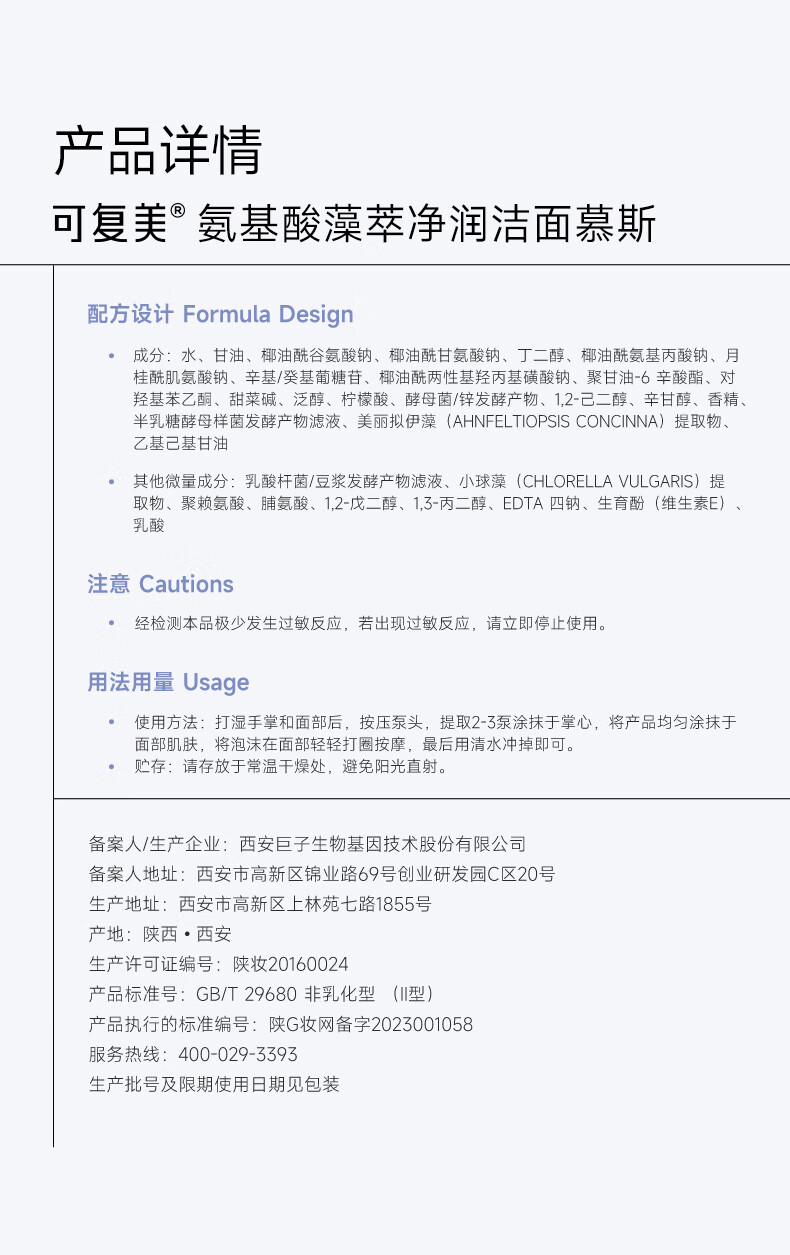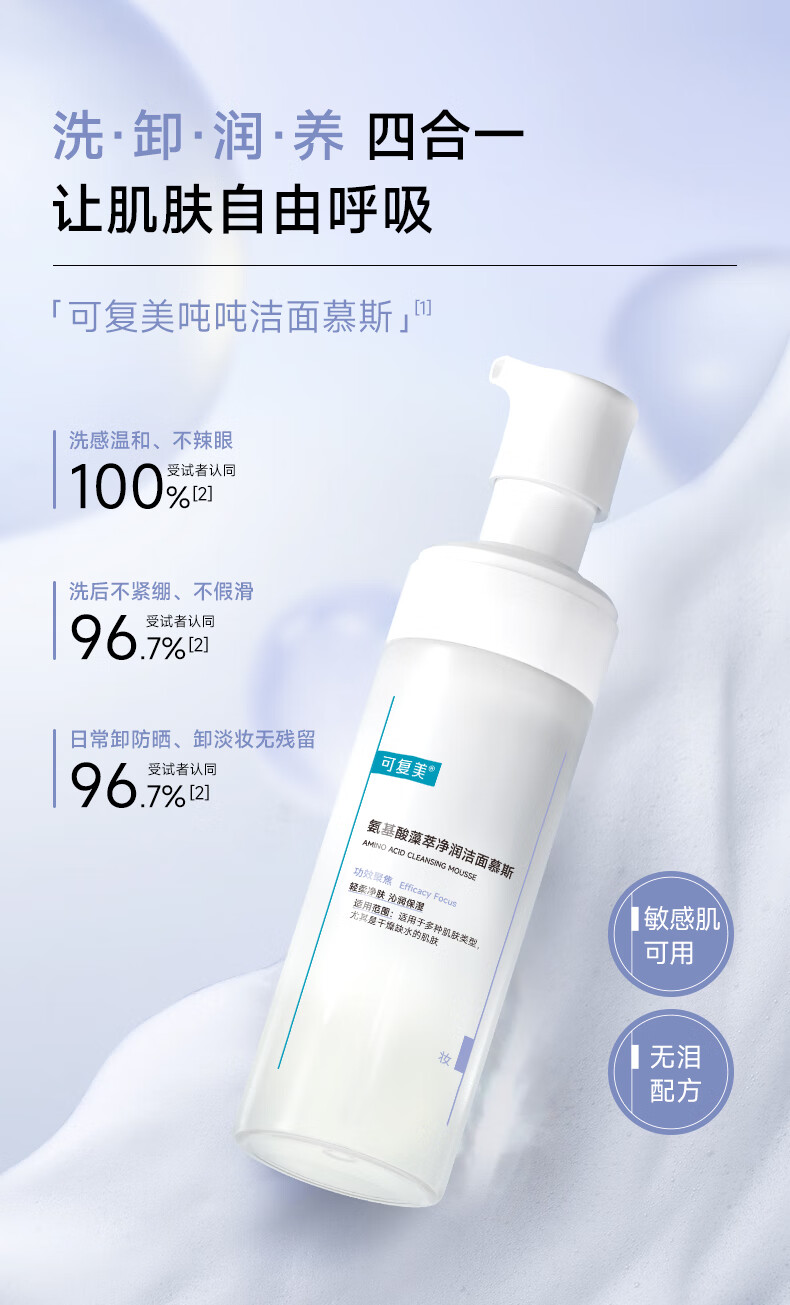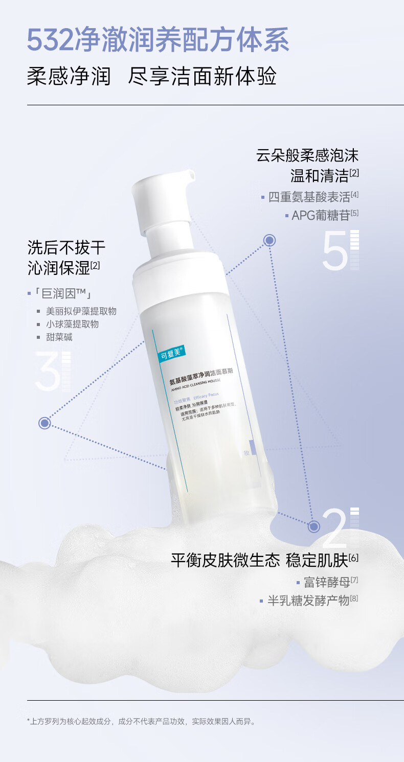 可复美氨基酸藻萃净润洁面慕斯150ml/瓶/盒 轻柔净肤 沁润