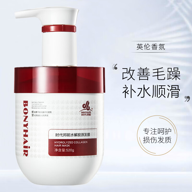 BONYHAIR时代邦妮水解胶原发膜正品修复干枯毛躁补水柔顺顺滑护发素女免蒸 水解胶原发膜 520g*1瓶