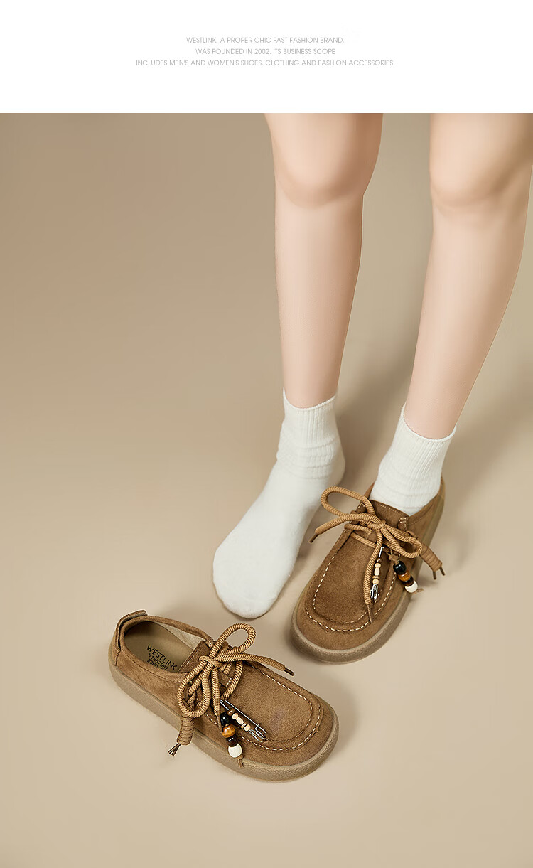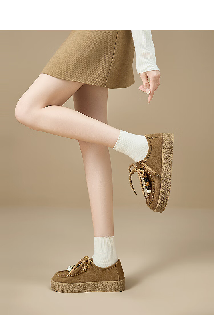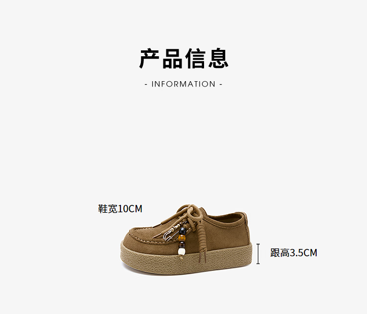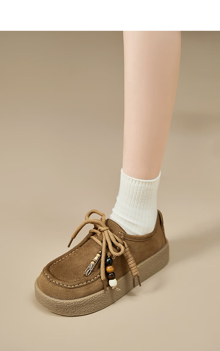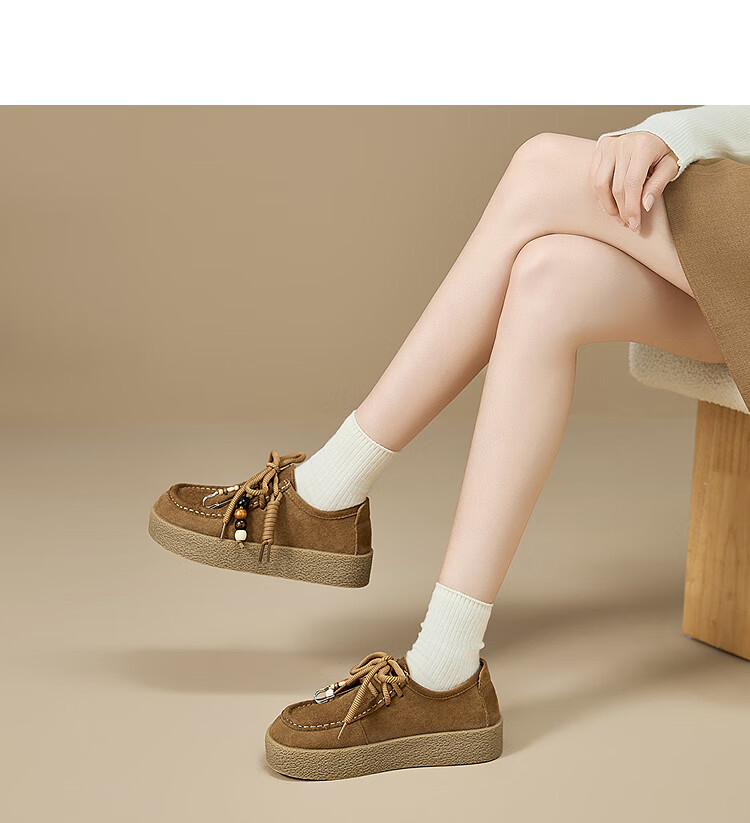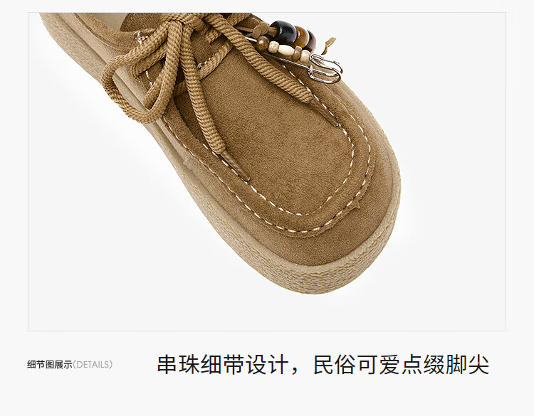 西遇厚底袋鼠勃肯鞋女2025新款秋季波西米亚系带单鞋乐福鞋 驼色 35 (225)