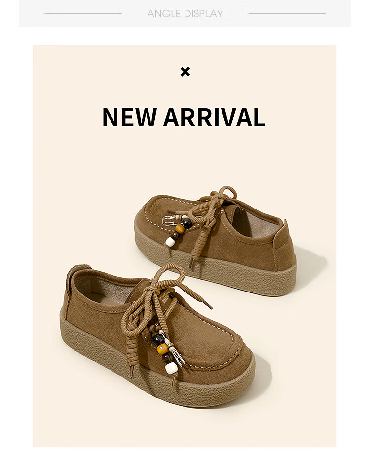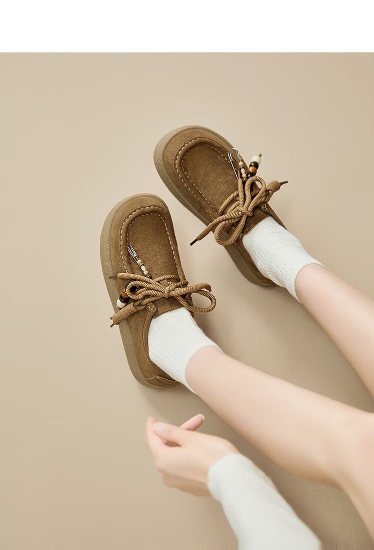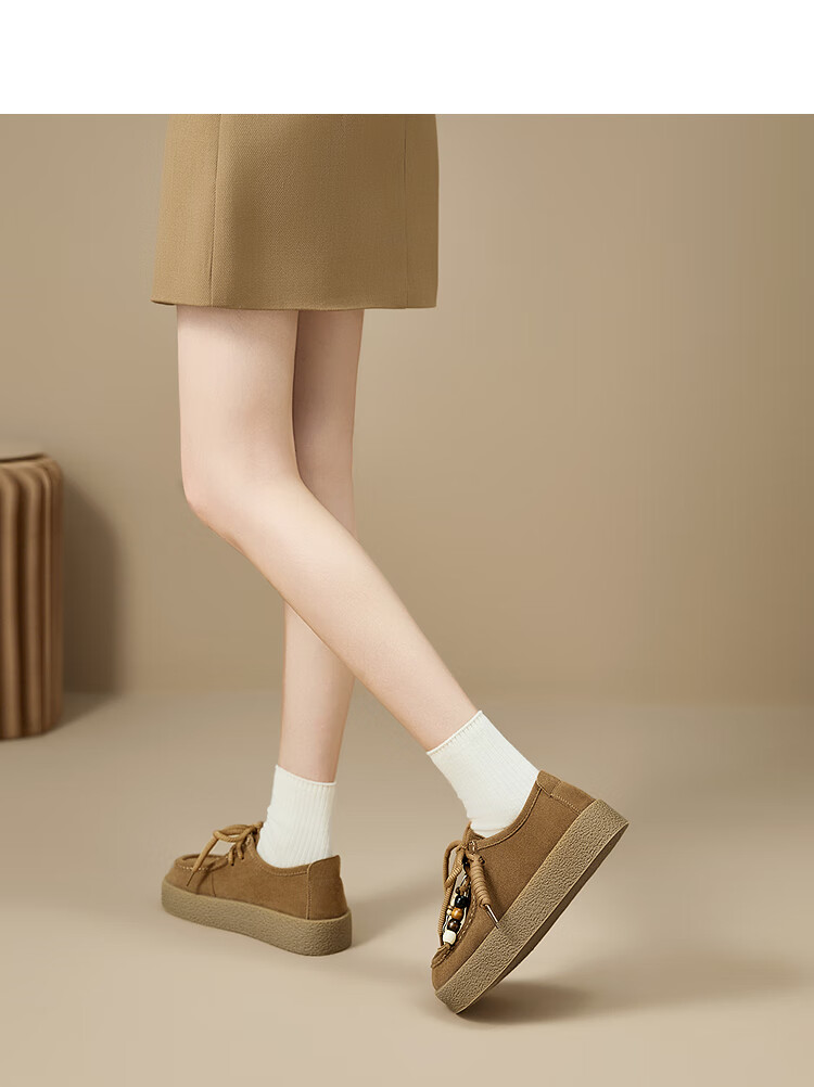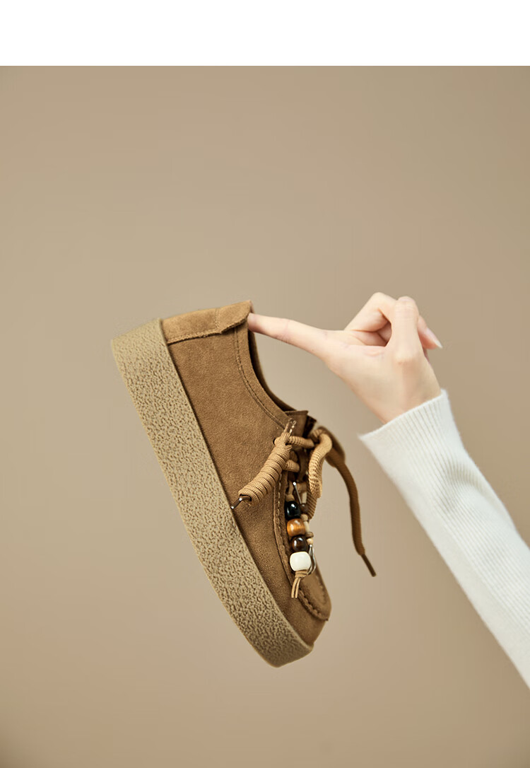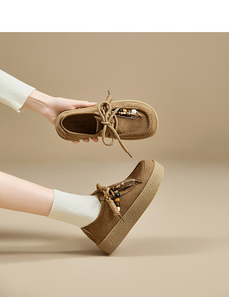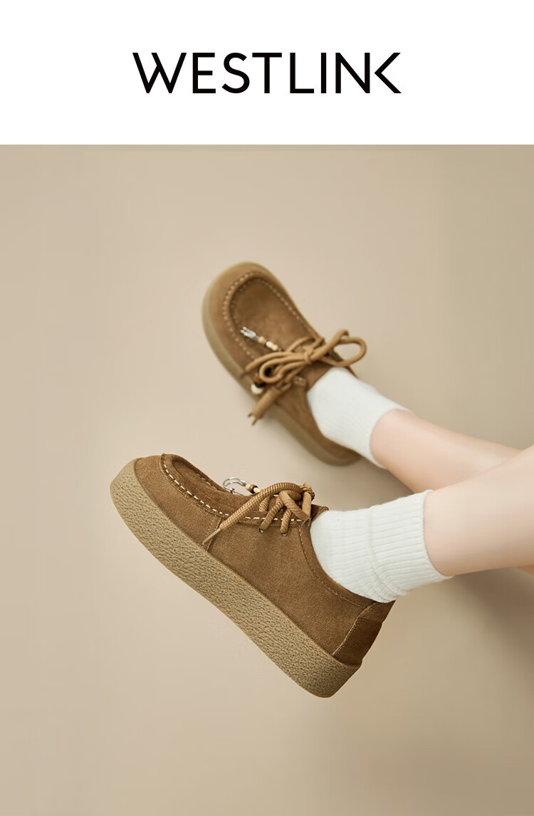 西遇厚底袋鼠勃肯鞋女2025新款秋季波西米亚系带单鞋乐福鞋 驼色 35 (225)