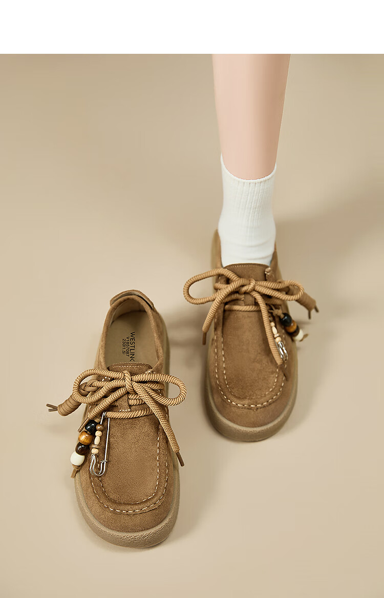 星期六时尚圆头复古休闲鞋2025秋季新款百搭舒适女鞋DKSSD3111SD7 香槟色 35