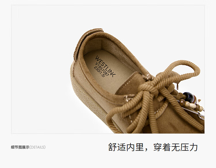 Lee男鞋新款百搭休闲鞋反绒皮复古平底板鞋韩版高级感学生鞋子男潮鞋 米色 42 【偏大/请拍小一码】