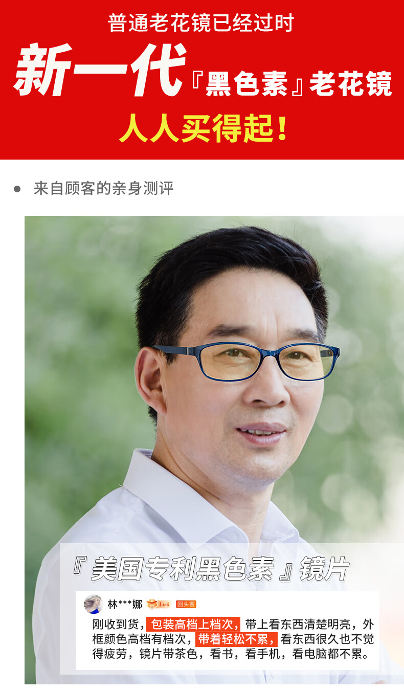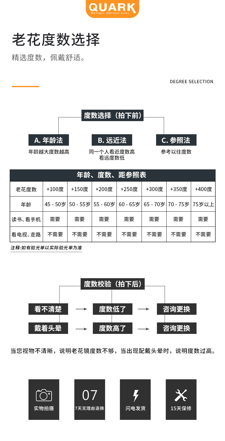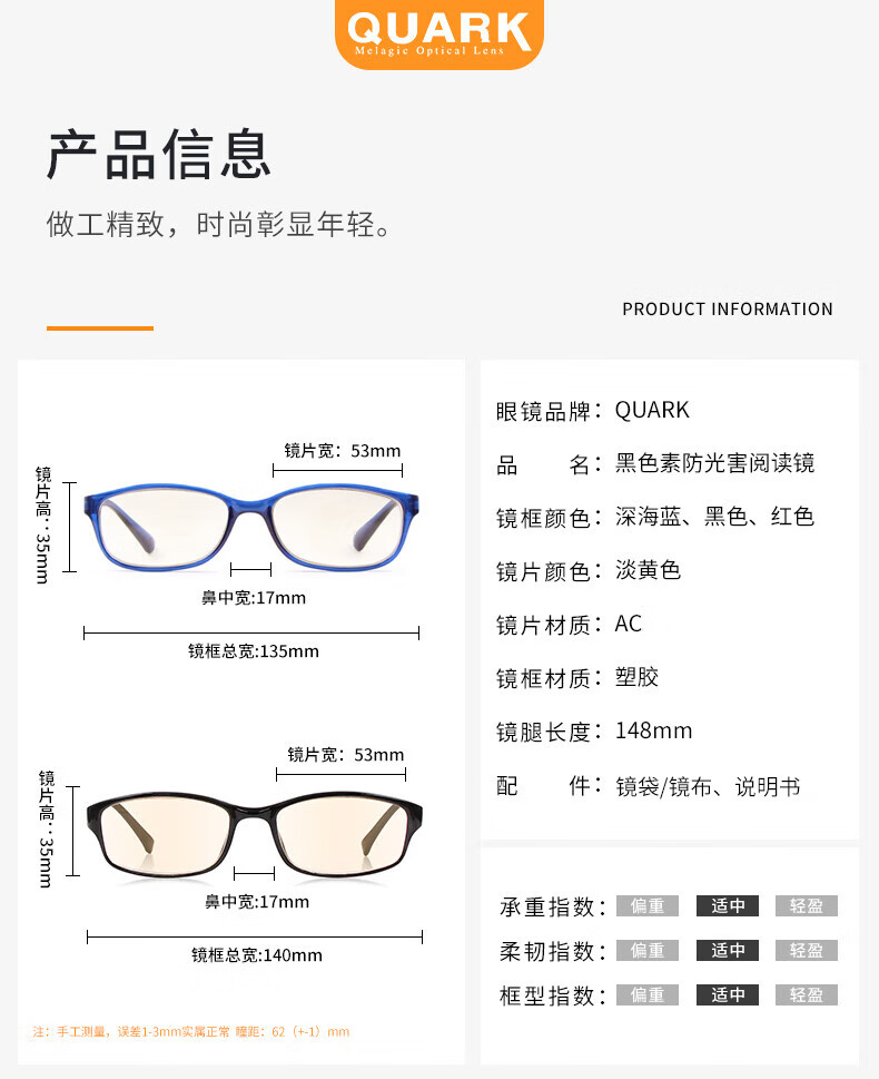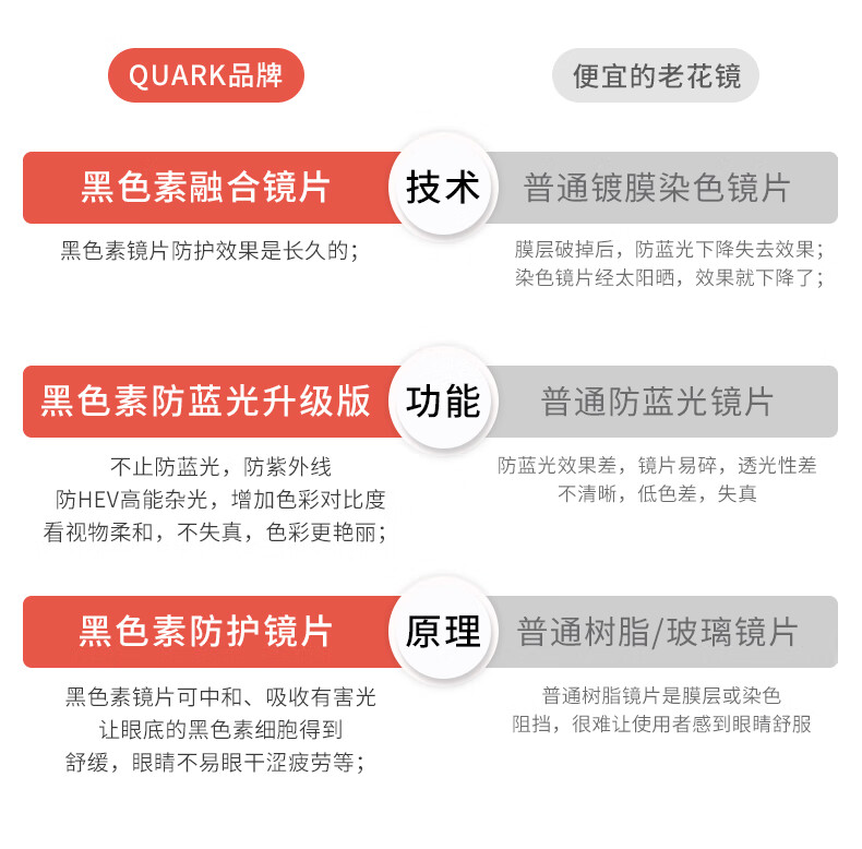 Quark防蓝光老花镜高清老人老化镜男女辐射疲劳阅读远视老光眼镜开学