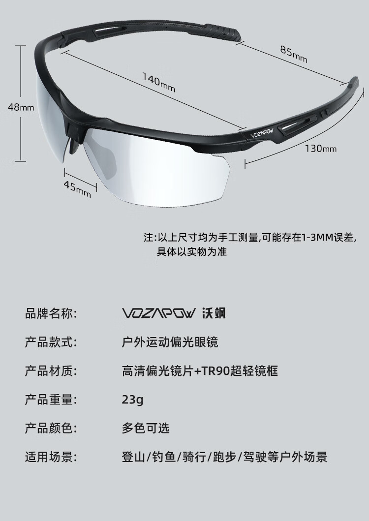 VOZAPOW沃飒徒步登山偏光炫彩眼镜爬山钓鱼跑步太阳镜护目镜开车驾驶墨镜