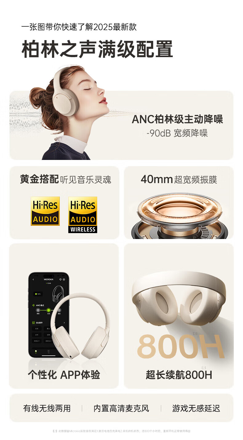 MICROKIA【2025新款|柏林之声第1名】金榜蓝牙耳机头戴式主动降噪无线高音质音乐电脑电竞游戏适配苹果小米