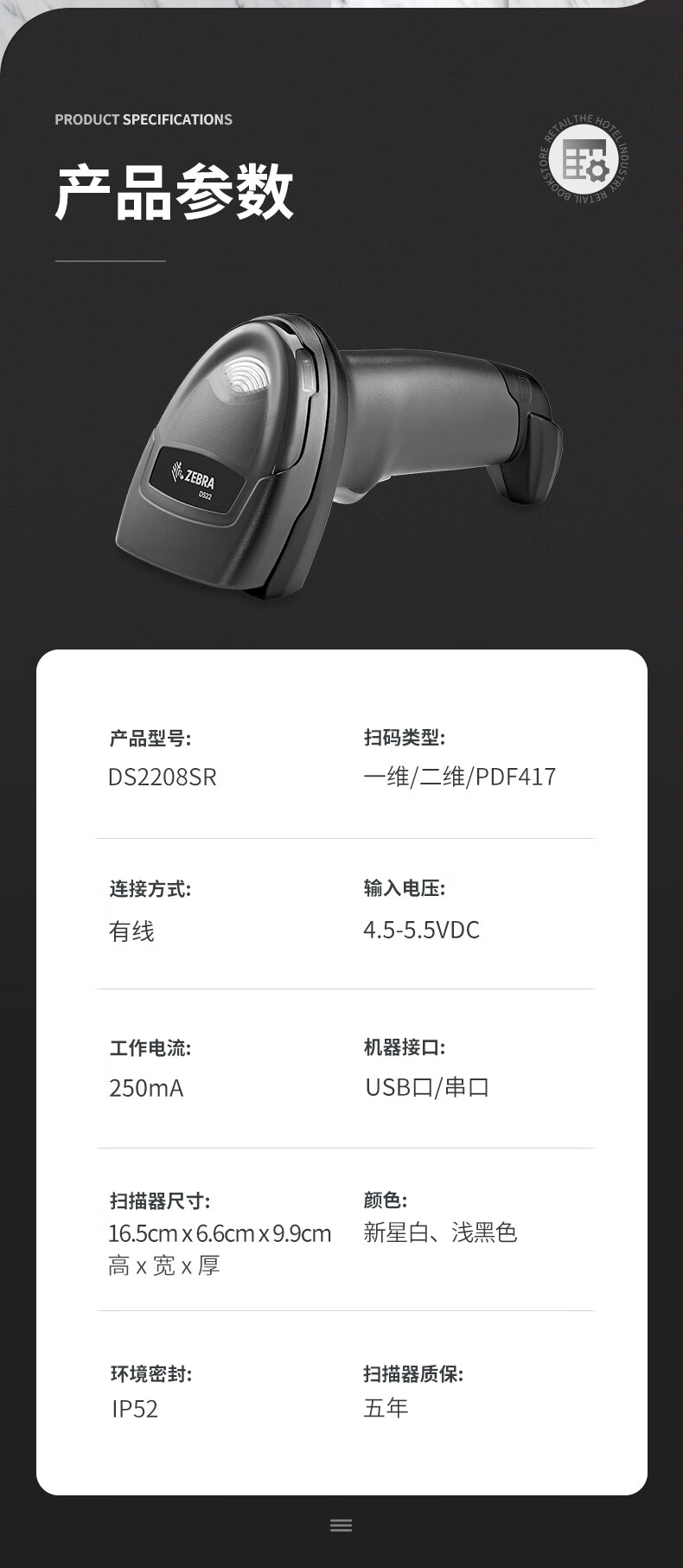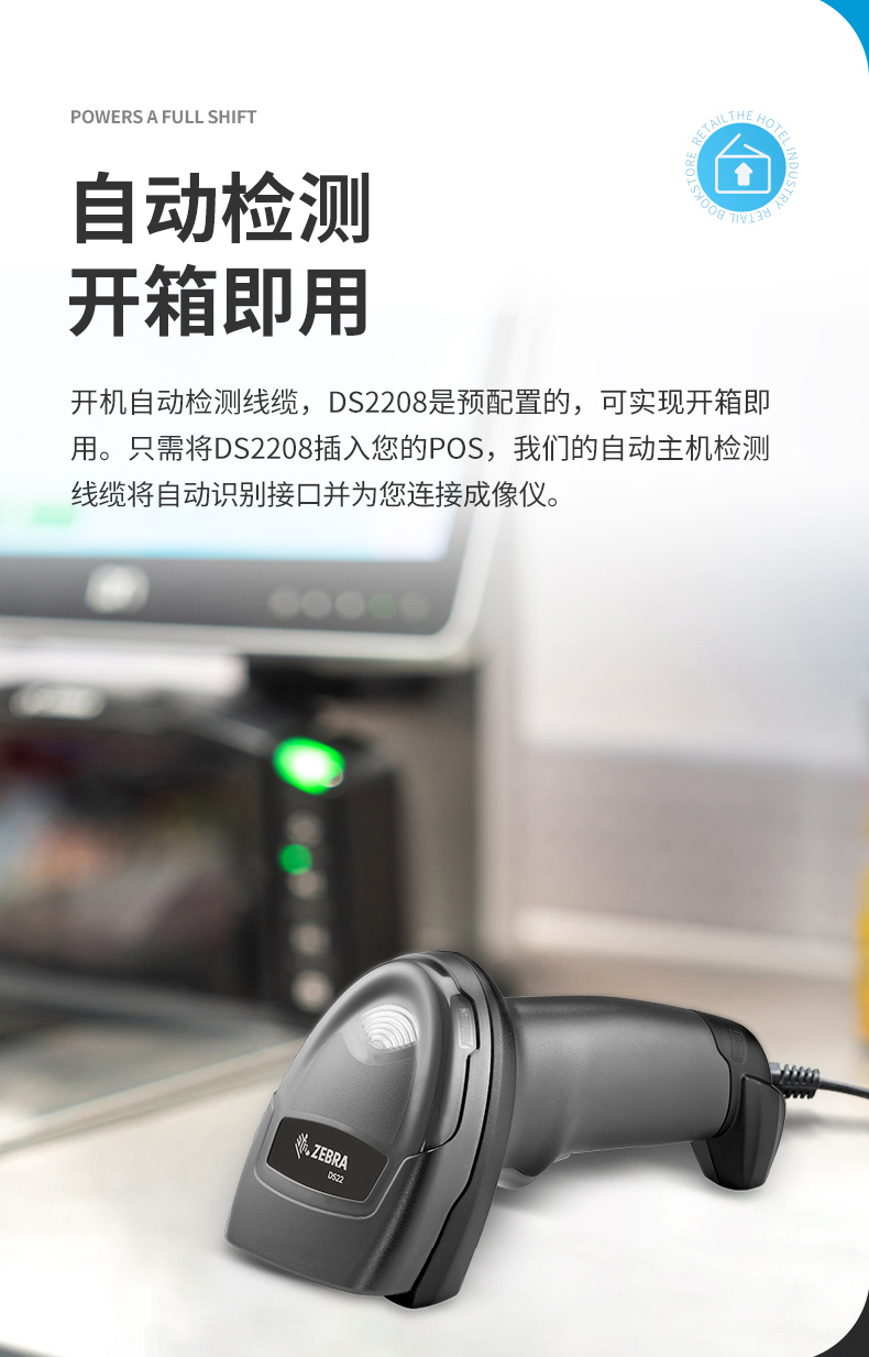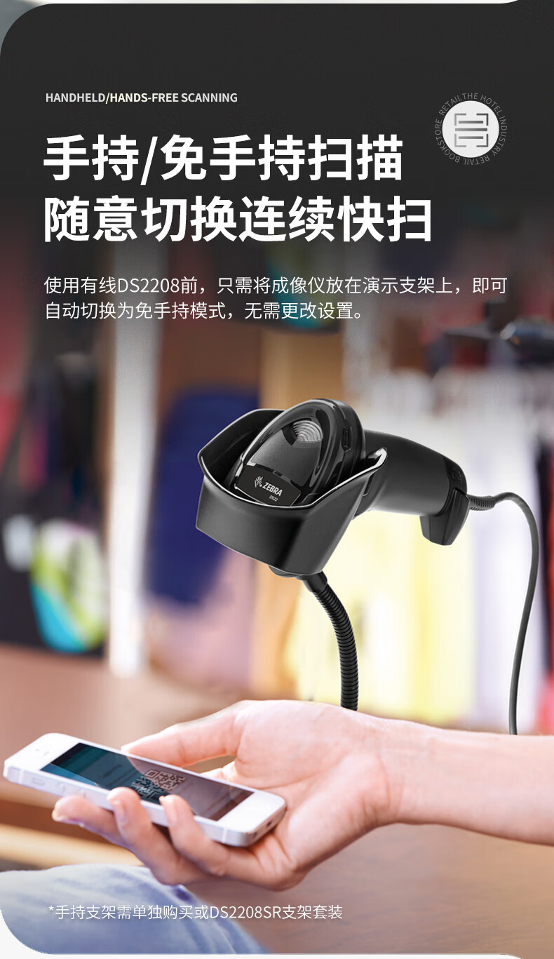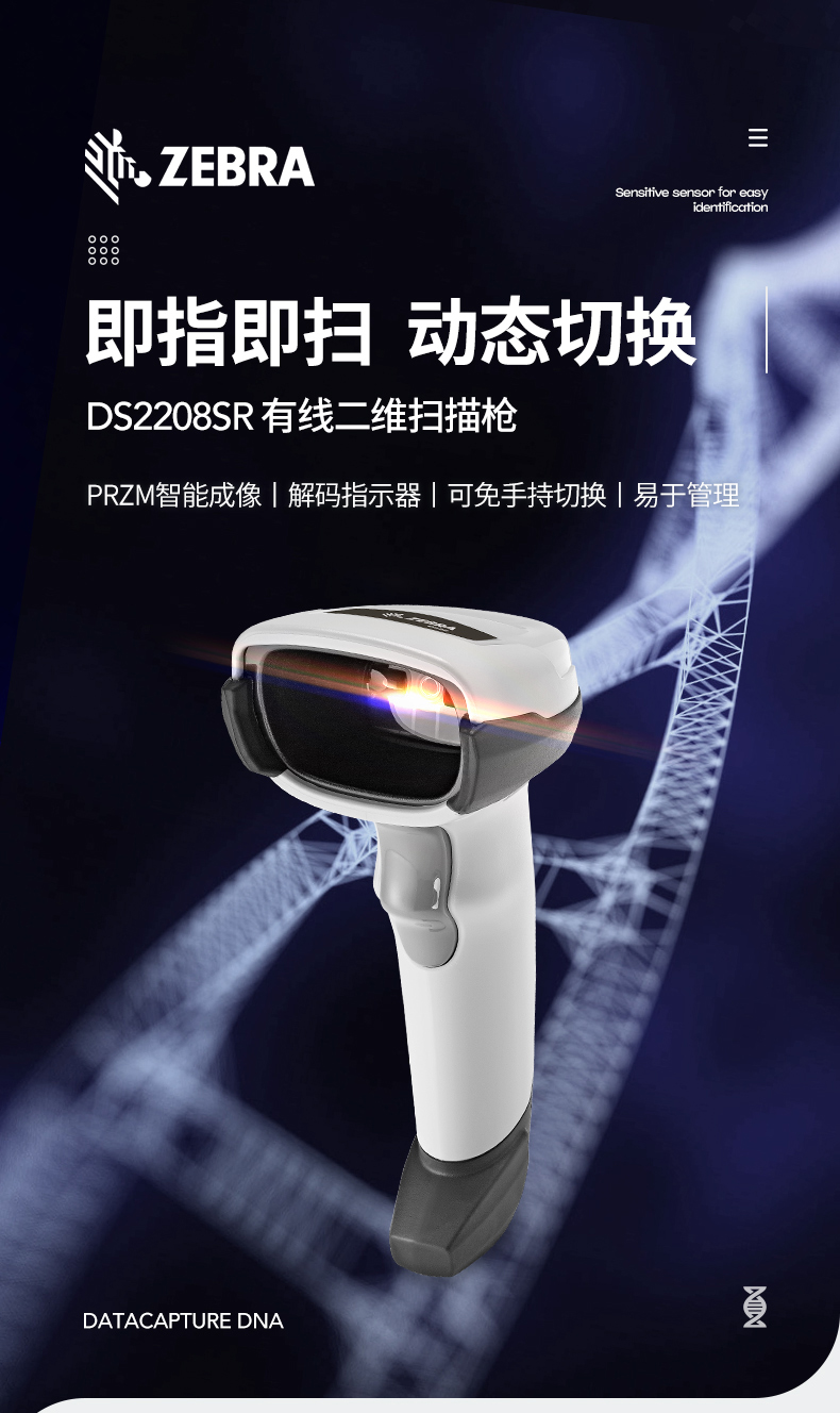 ZEBRA斑马DS2208SR扫码枪有线扫描枪巴枪数据采集条码二维码收银医保支付药品追溯物流快递查询备件库