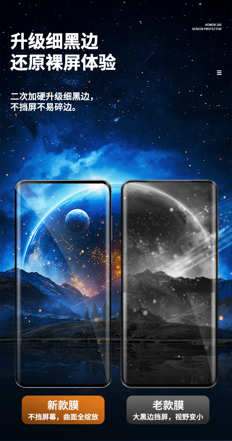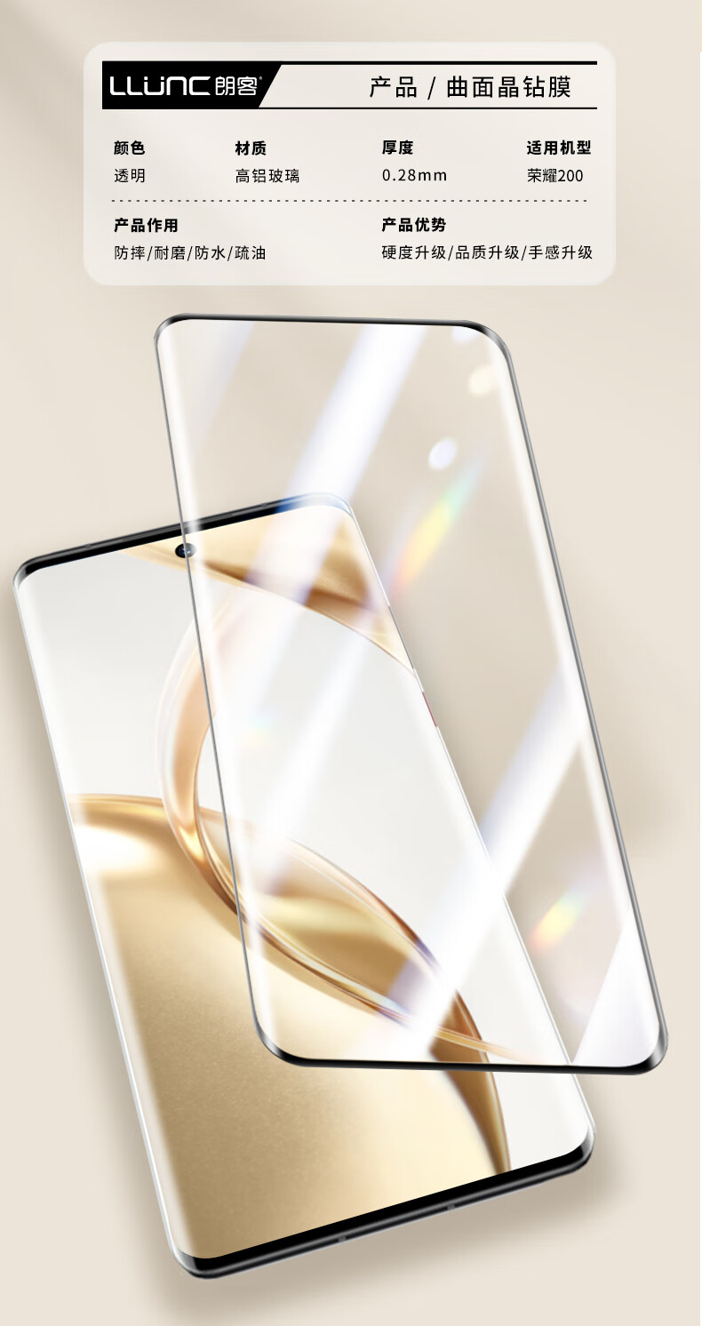 朗客【2片装】适用荣耀200钢化膜honor200手机膜全屏覆盖超薄超清玻璃抗指纹防摔无白边手机贴膜