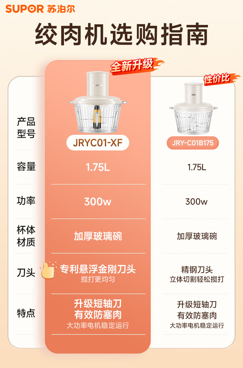 苏泊尔绞肉机家用 多功能电动搅肉馅碎肉打肉机 辅食料理饺子馅搅拌机-B 【4叶悬浮刀】赠送防滑垫-近 2L