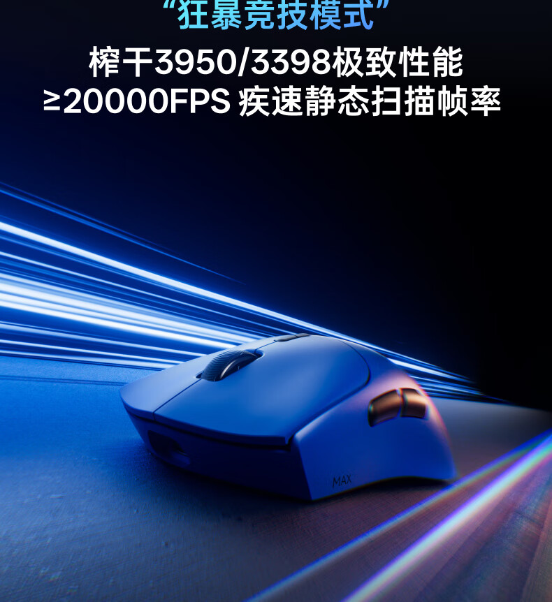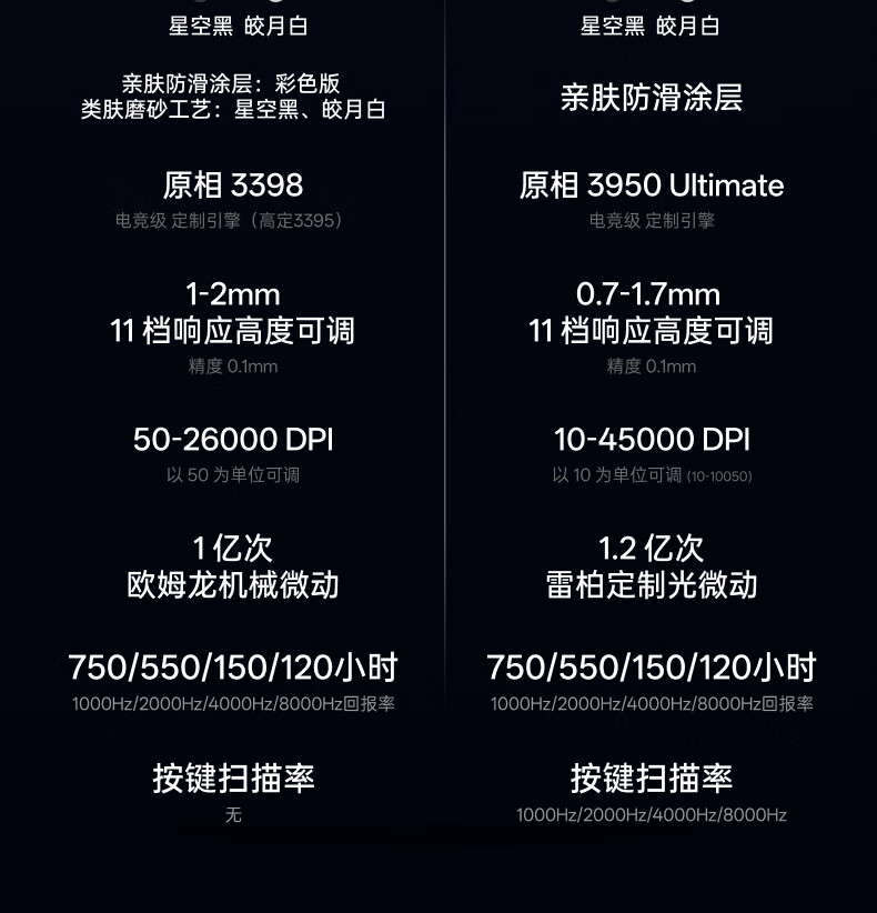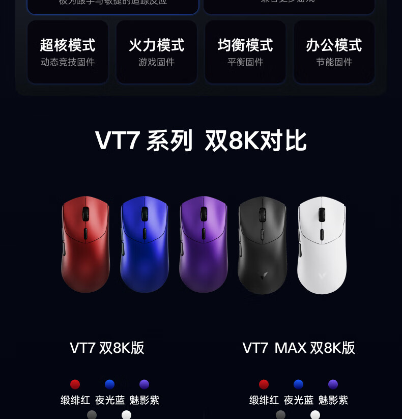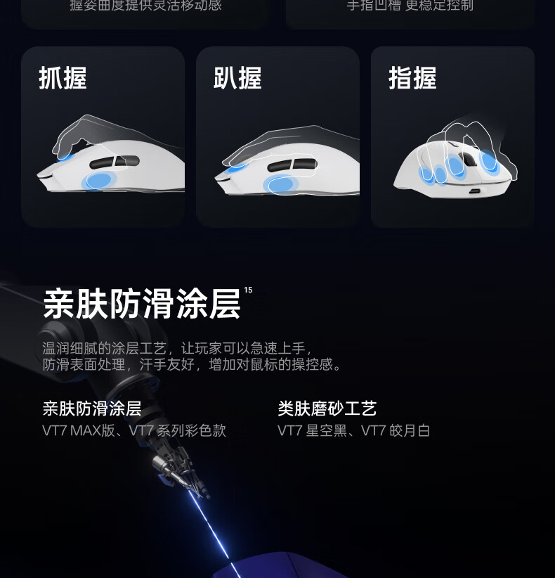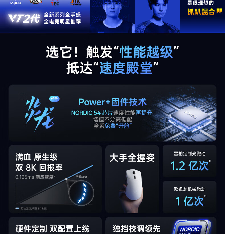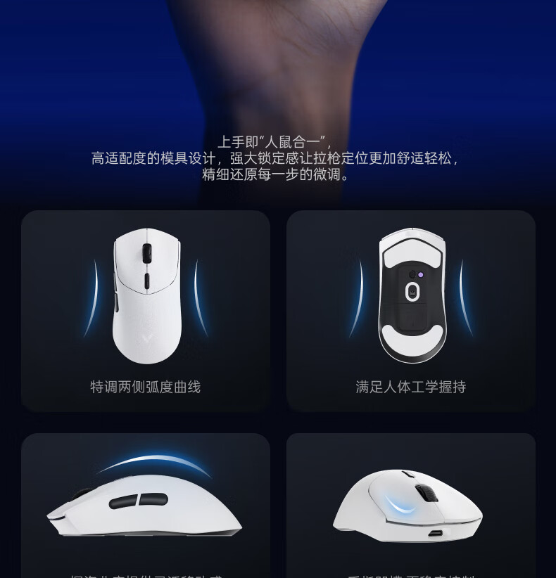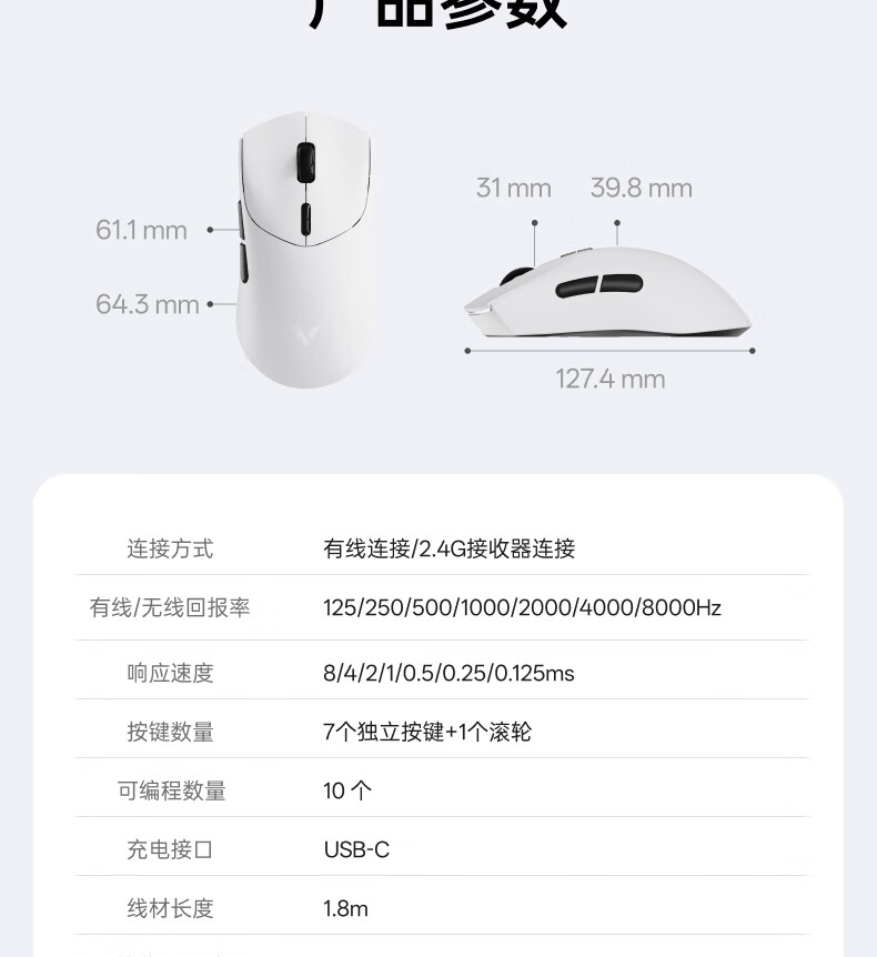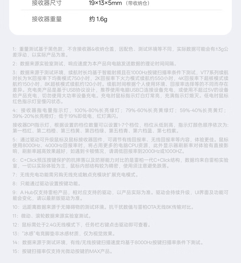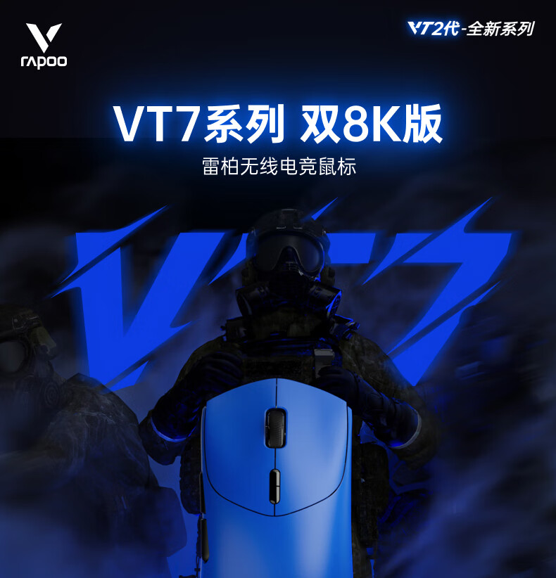 雷柏(Rapoo)VT7MAX二代双8K版 中大手无线/有线双模游戏鼠标 PAW3950引擎 人体工学设计 原生8K+8K回报率 黑白