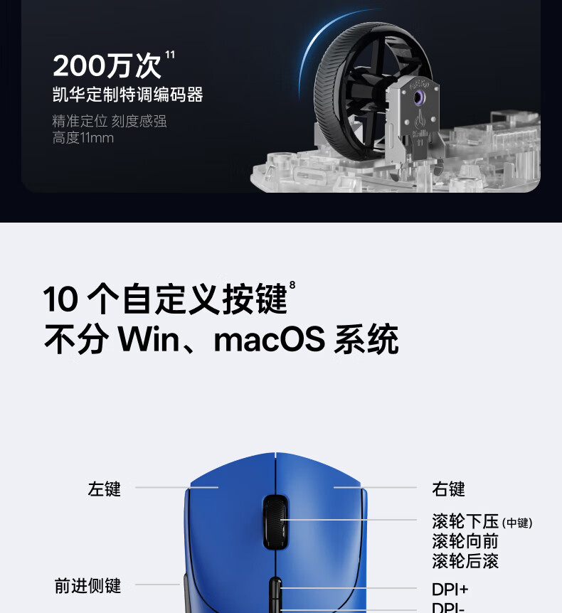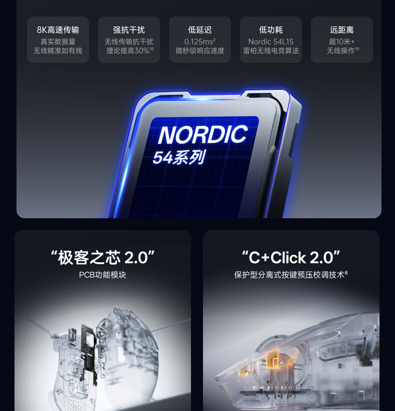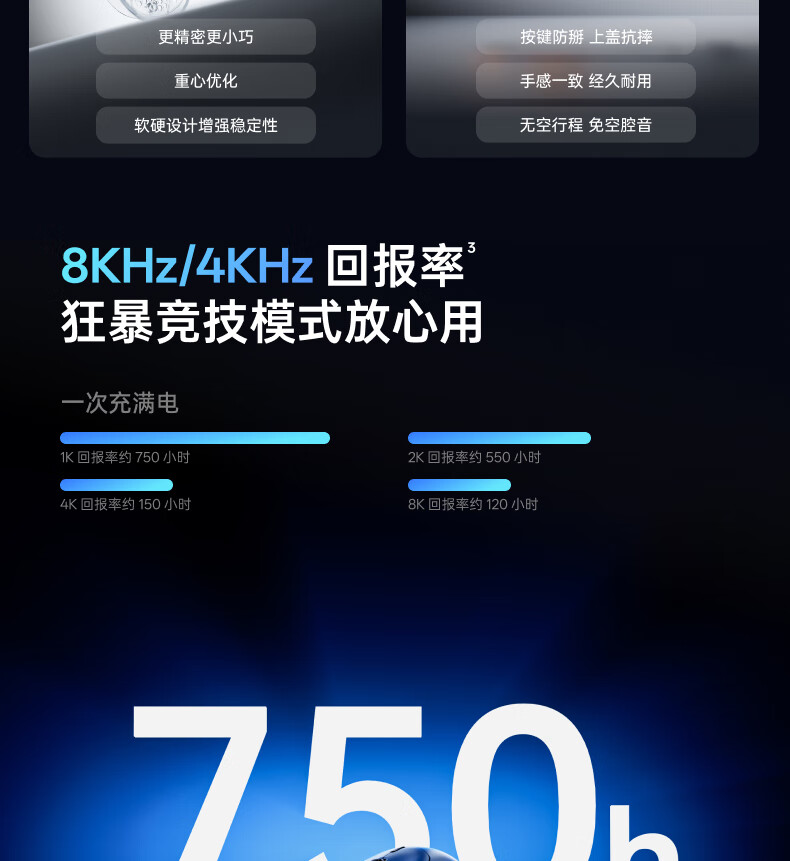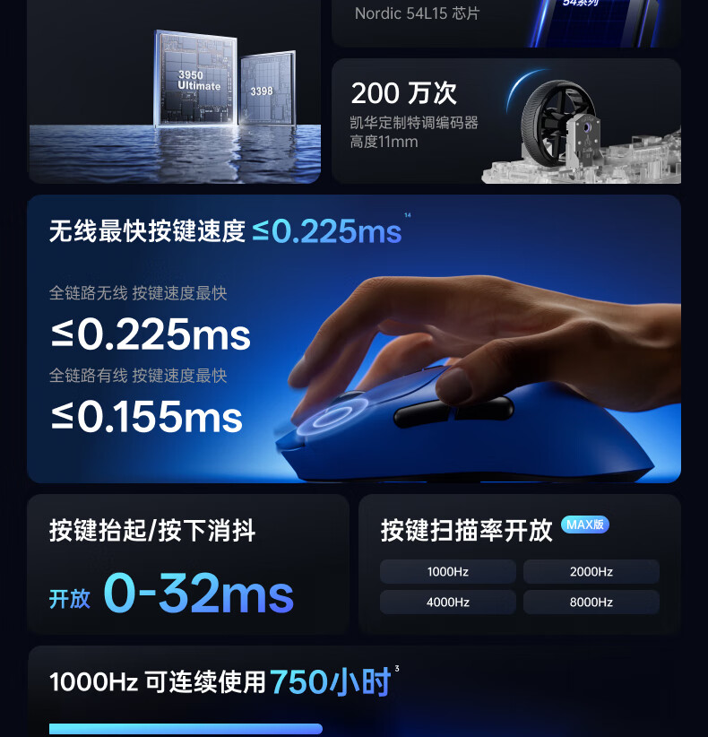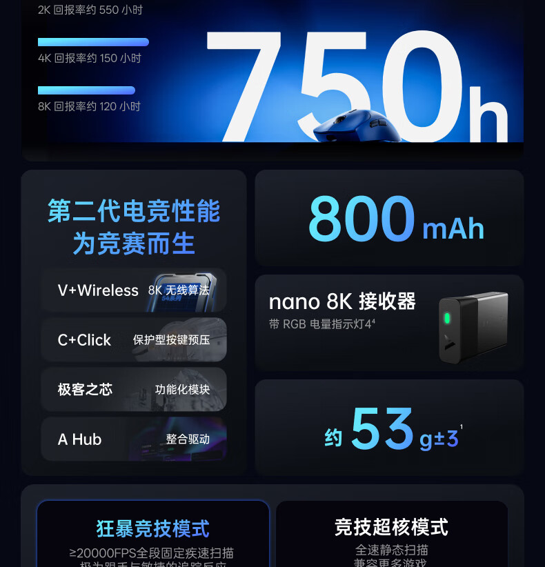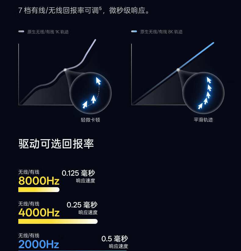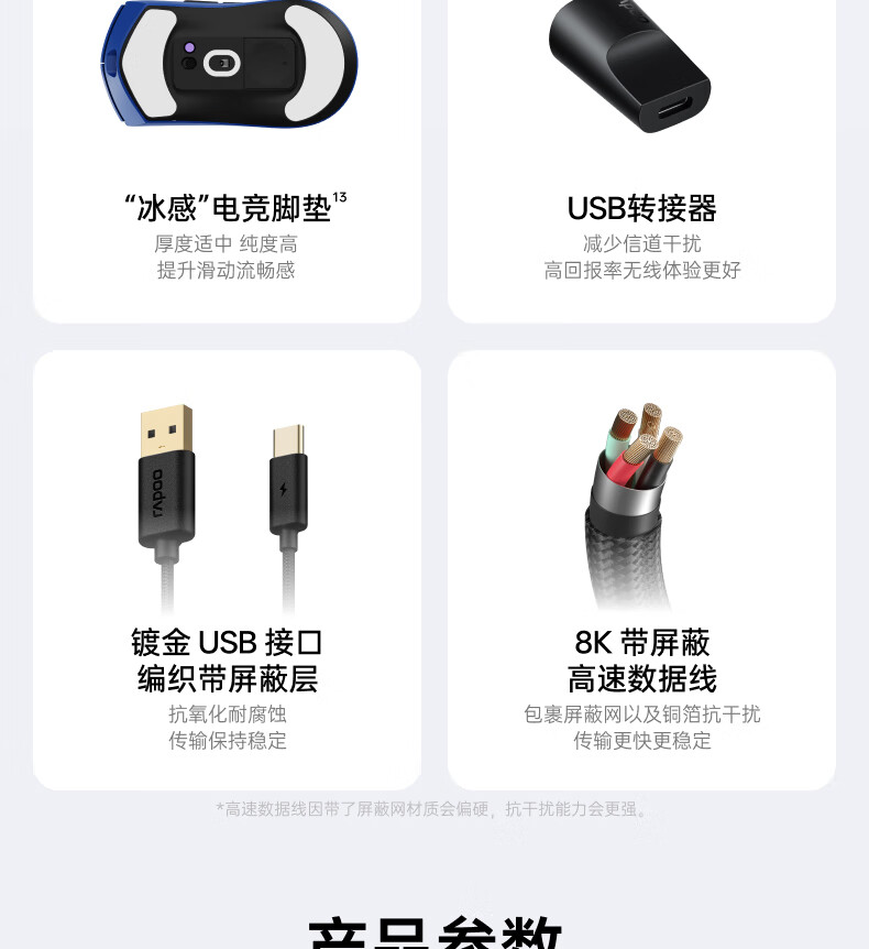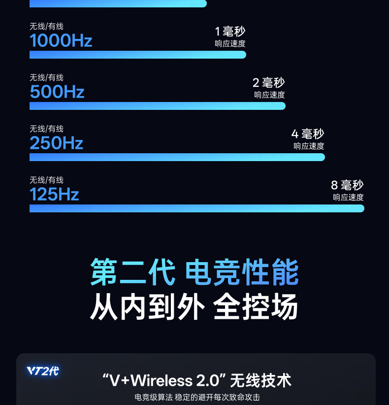 雷柏(Rapoo)VT7MAX二代双8K版 中大手无线/有线双模游戏鼠标 PAW3950引擎 人体工学设计 原生8K+8K回报率 黑白