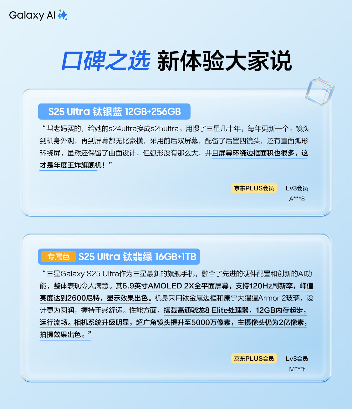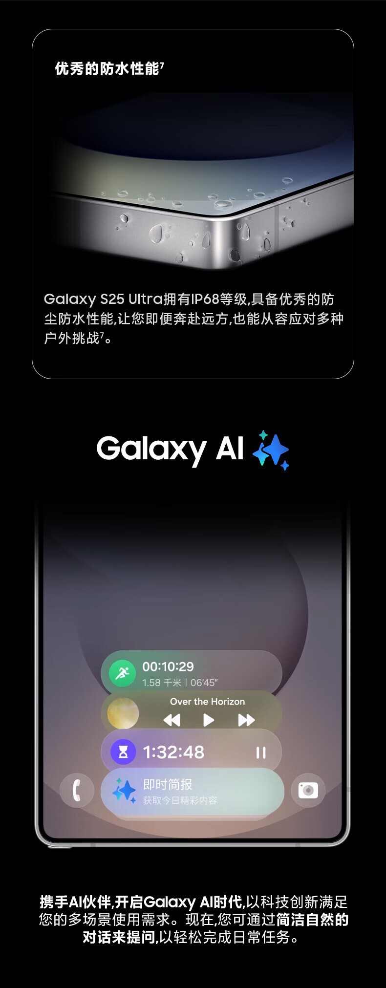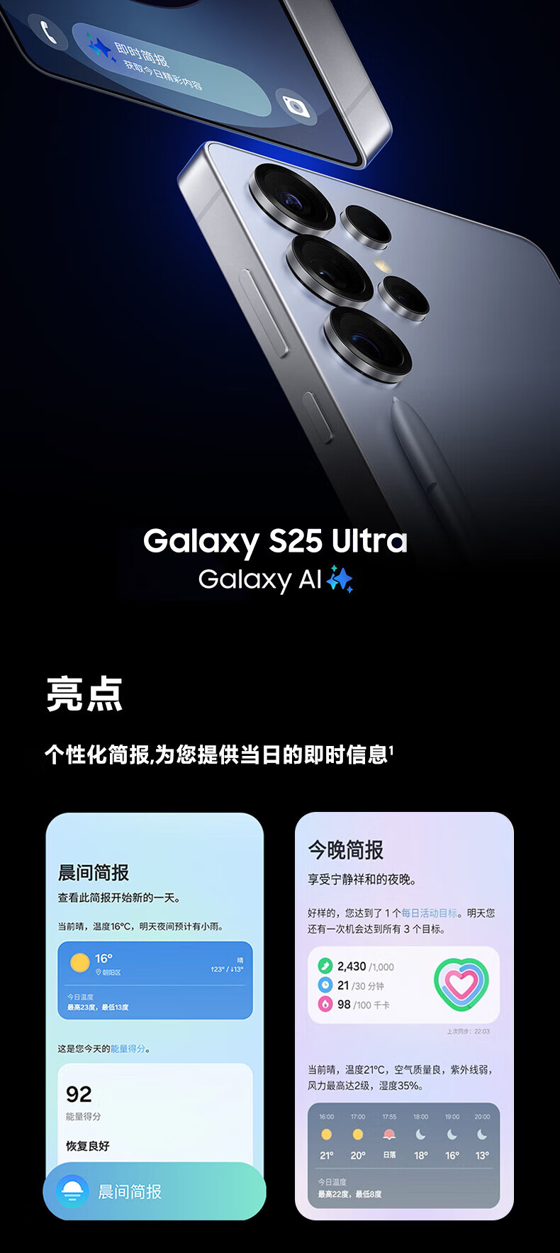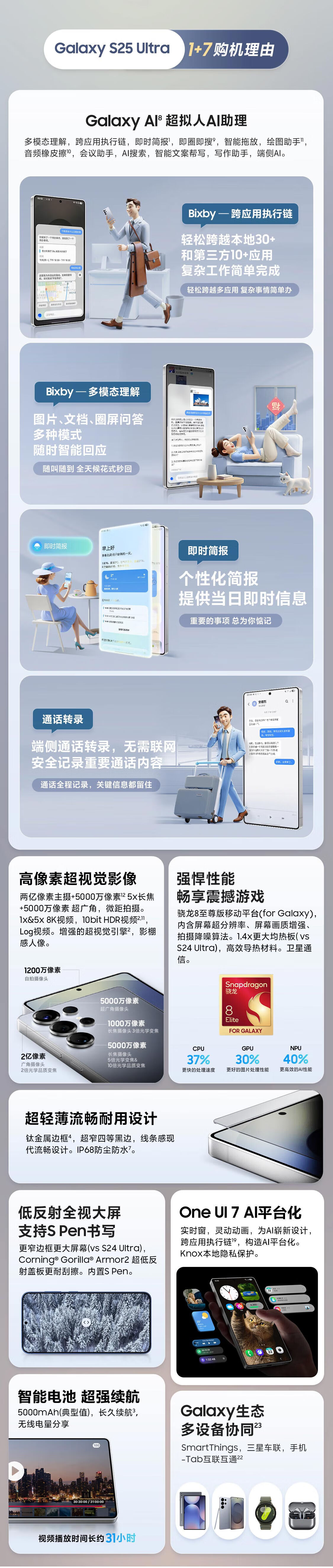 三星(SAMSUNG)Galaxy S25 Ultra 超拟人AI助理 2亿像素主摄 超视觉影像 骁龙8至尊版移动平台 AI手机 钛辉银 12GB+256GB 官方标配